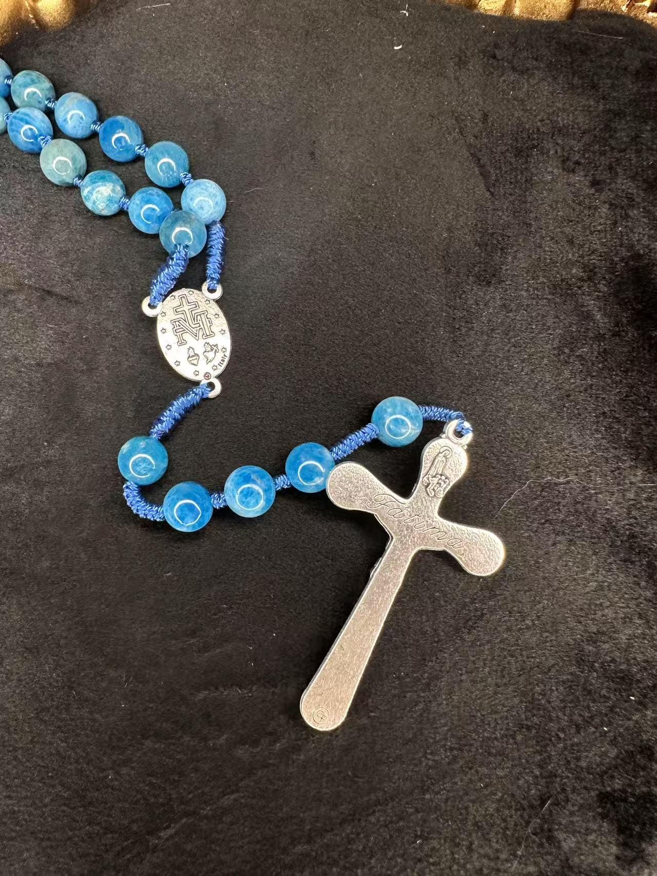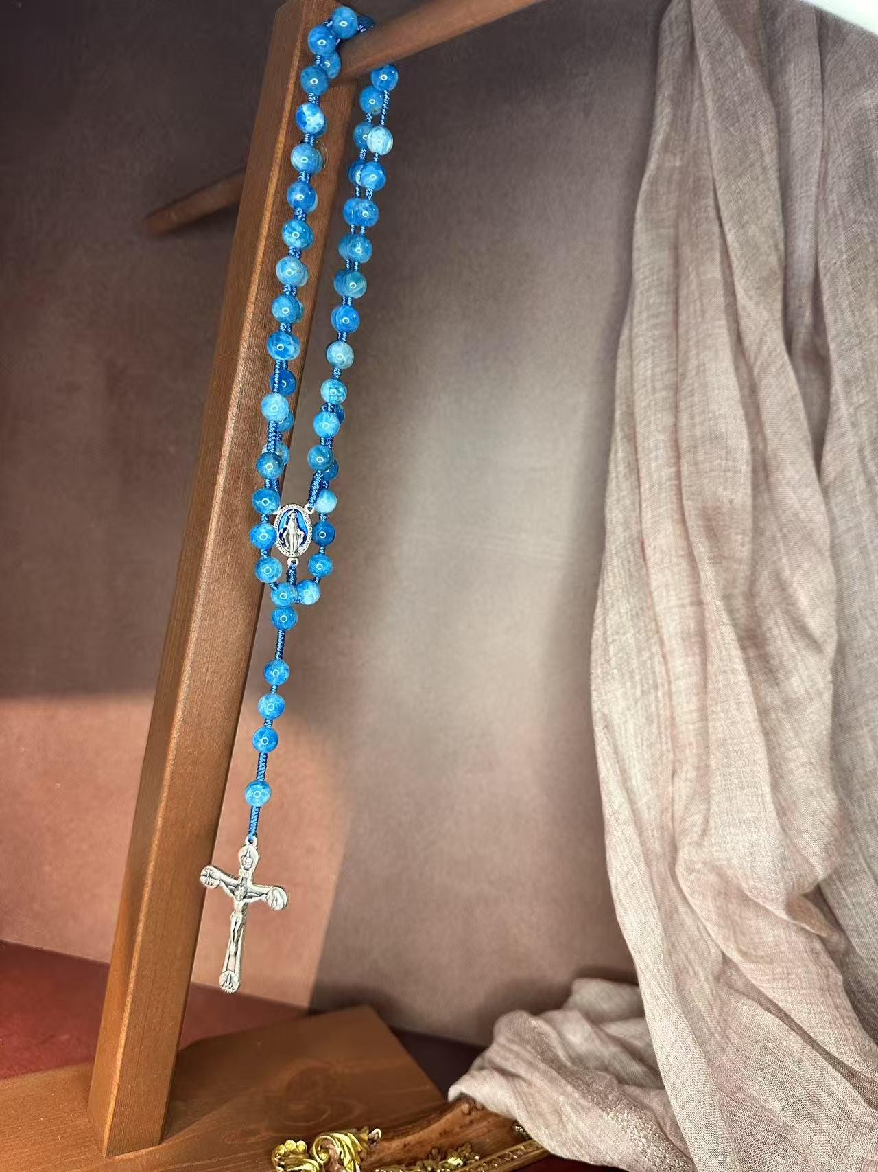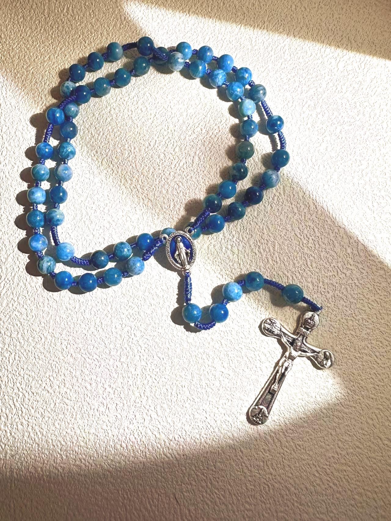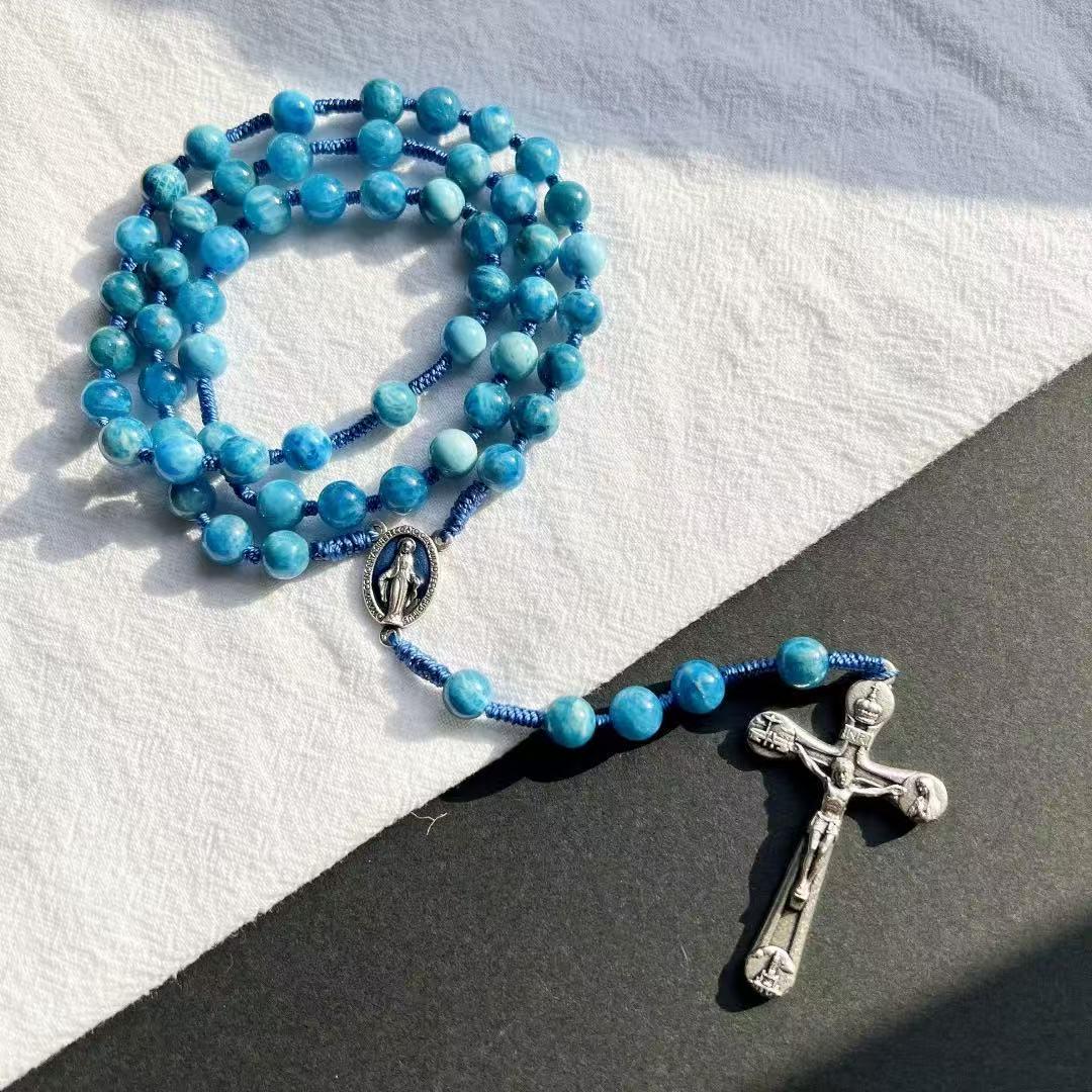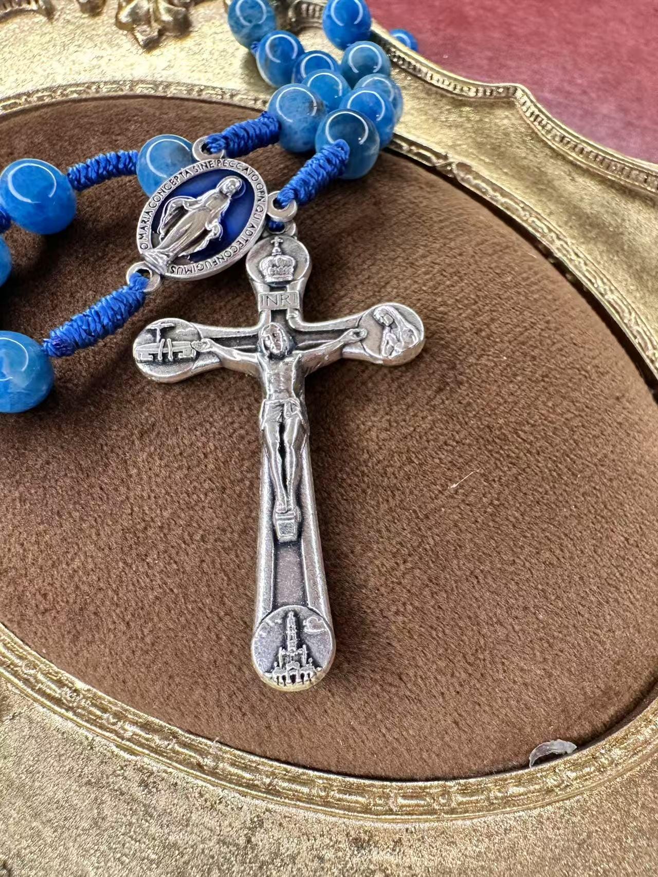 Marian Blue Gemstone Hand-Knotted Rosary, Catholic Christmas Gift (Add Pouch – see description)