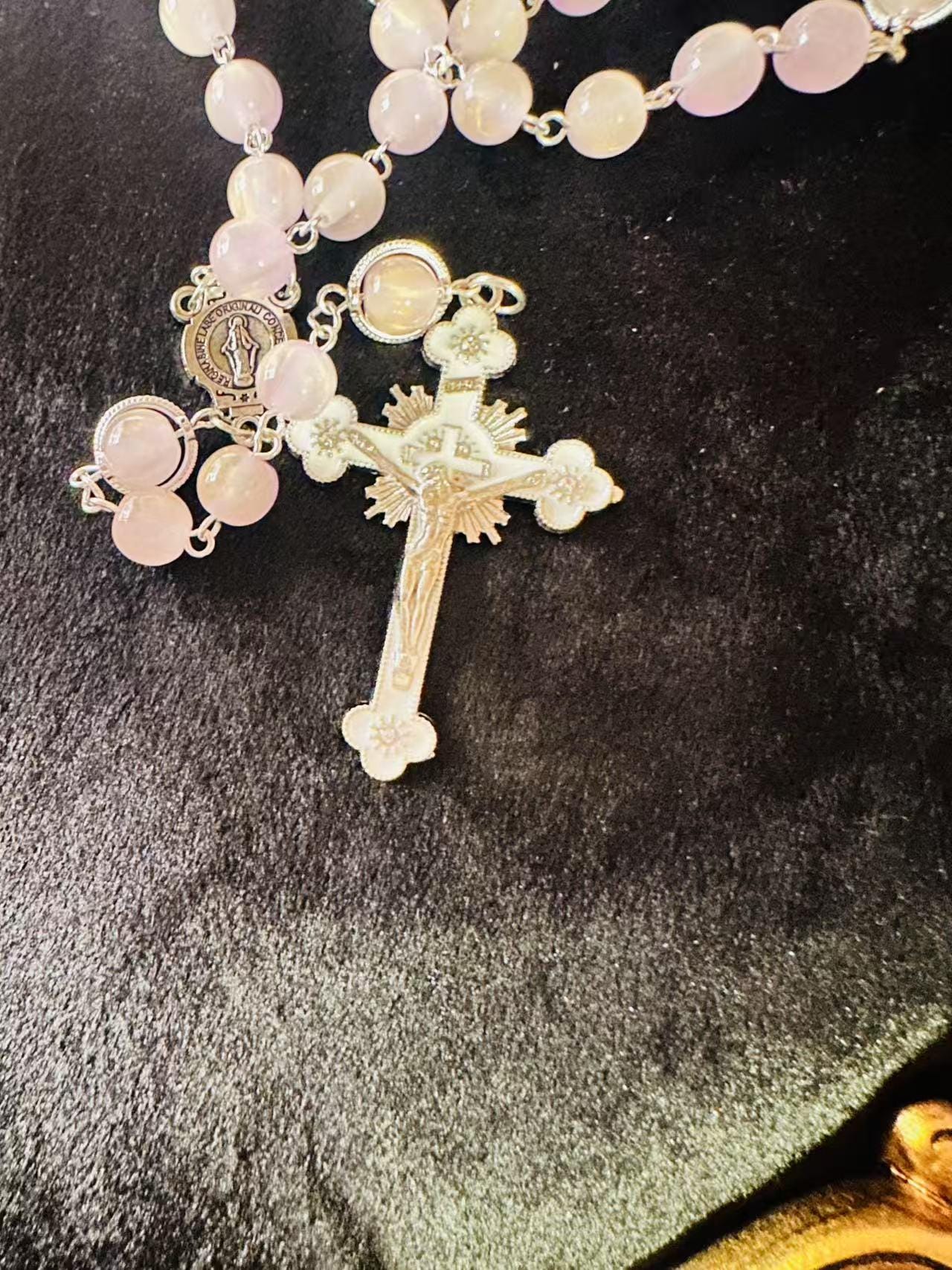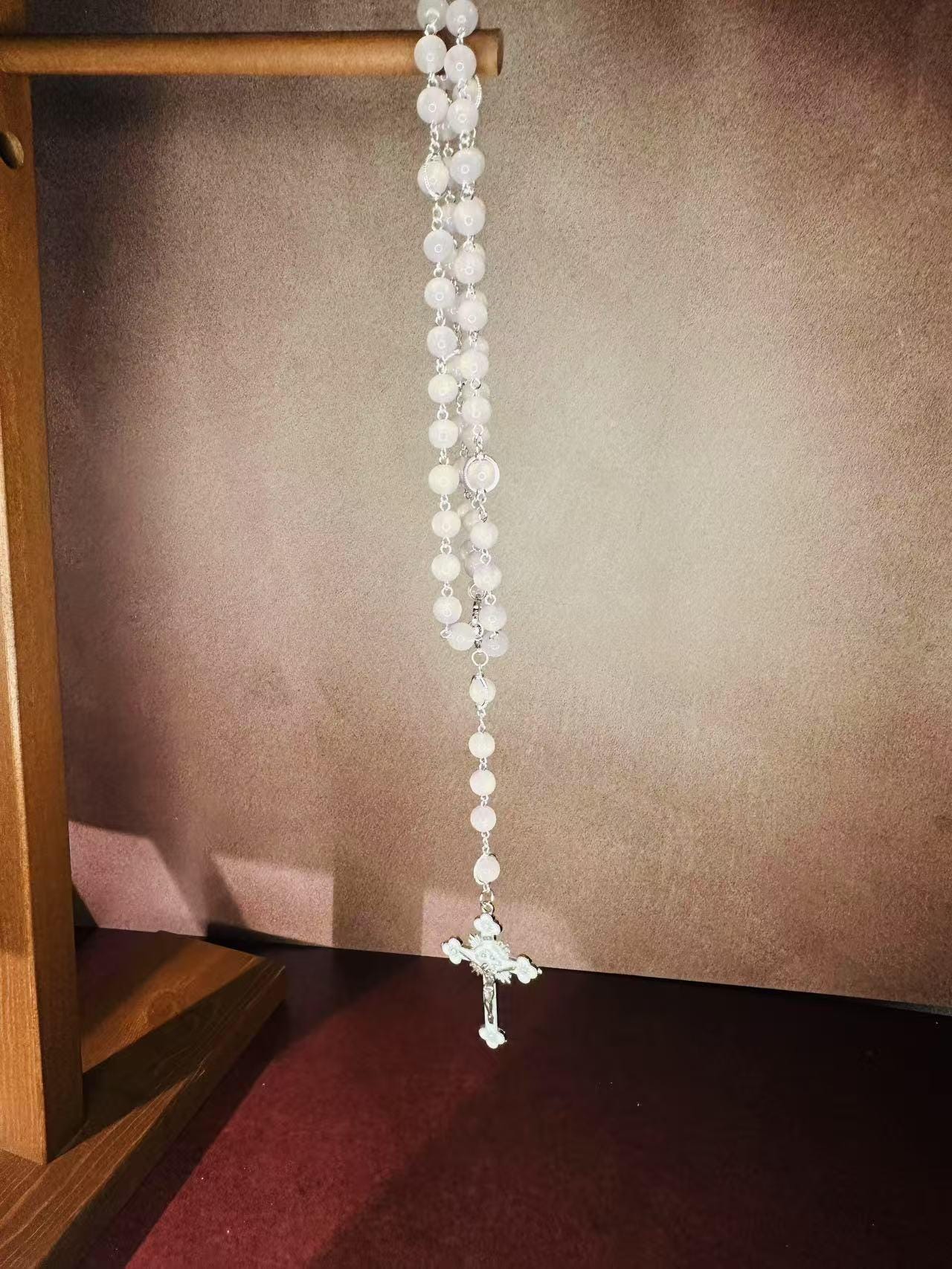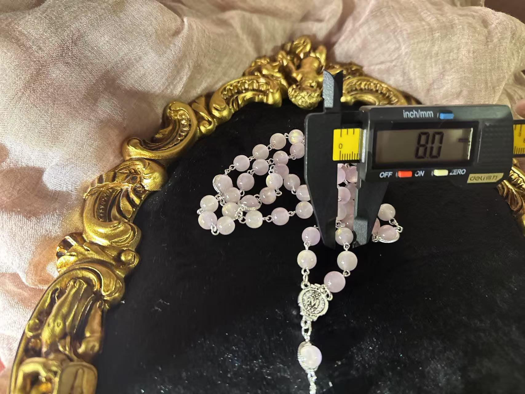1. Wire note: This rosary uses silver-plated copper wire with an anti-oxidation coating. Plating will eventually wear off with use. Based on testing, with one rosary prayed daily, the finish lasts at least two months; longer-term results not yet tested.