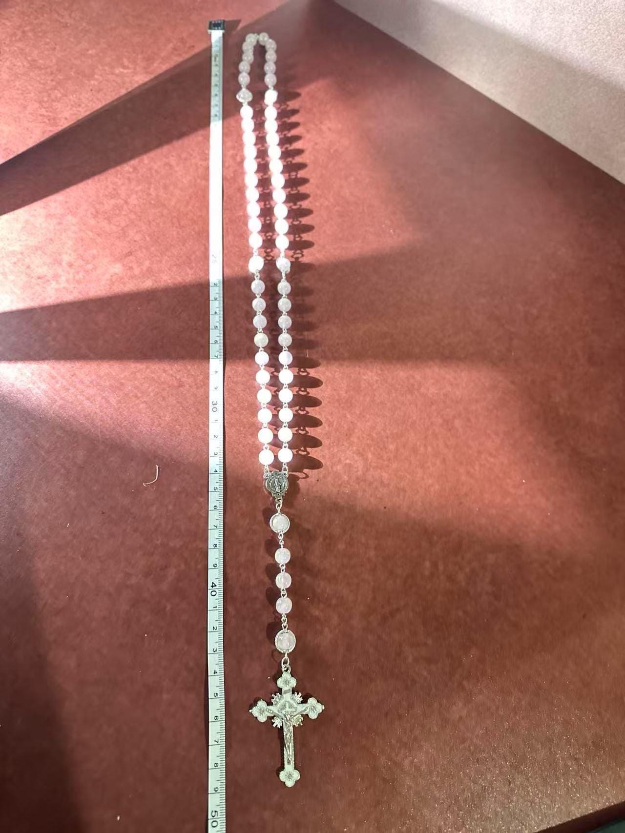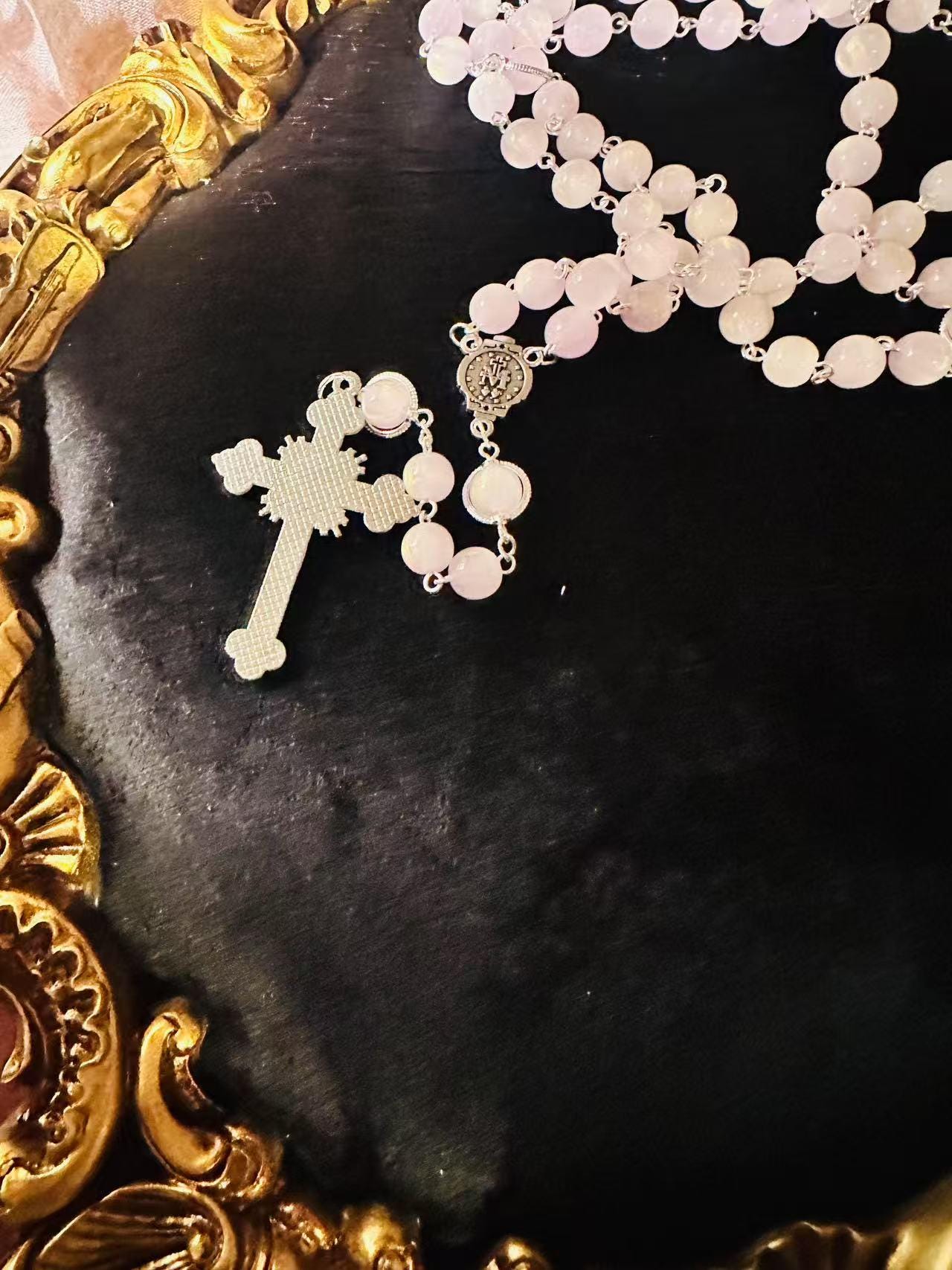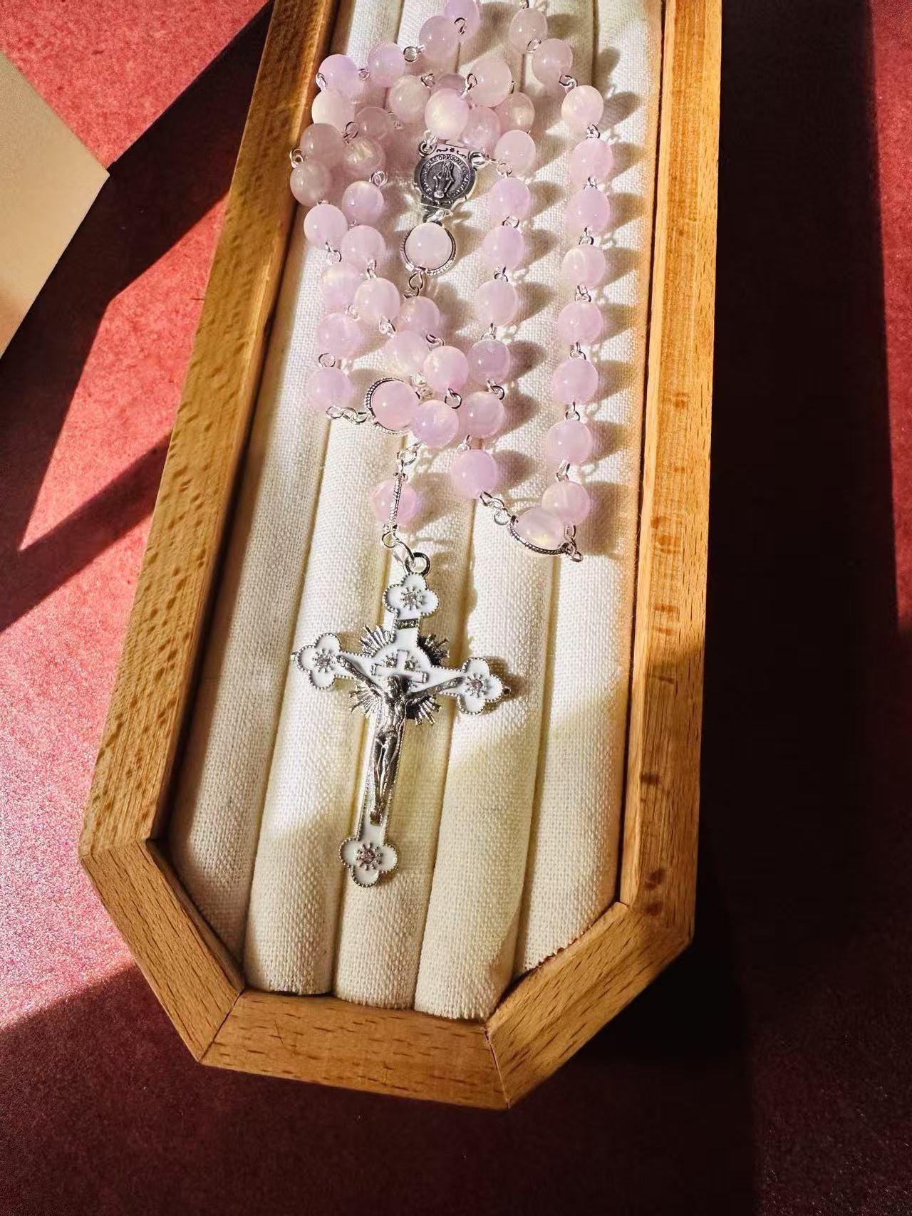 1. Wire note: This rosary uses silver-plated copper wire with an anti-oxidation coating. Plating will eventually wear off with use. Based on testing, with one rosary prayed daily, the finish lasts at least two months; longer-term results not yet tested.