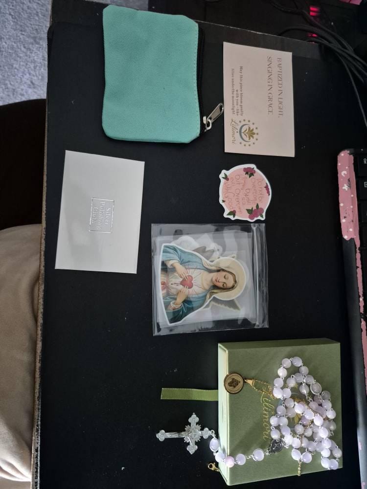 the packaging was beautiful, the customer service was everything. The rosary itself, it's pretty for sure but for some reason i thought it was going to be like marble beads, they were plastic Regardless it's a pretty rosary, thank you!