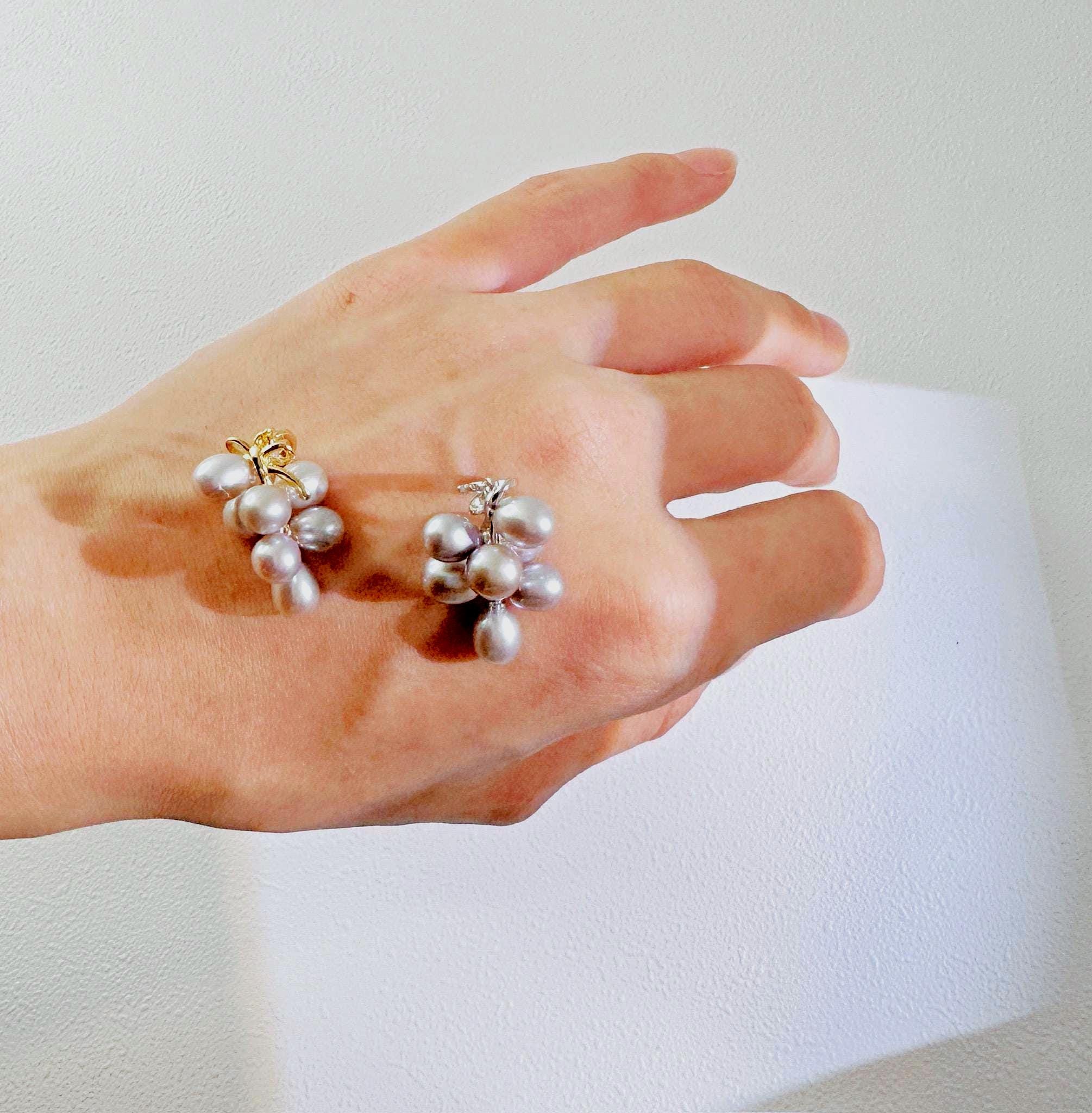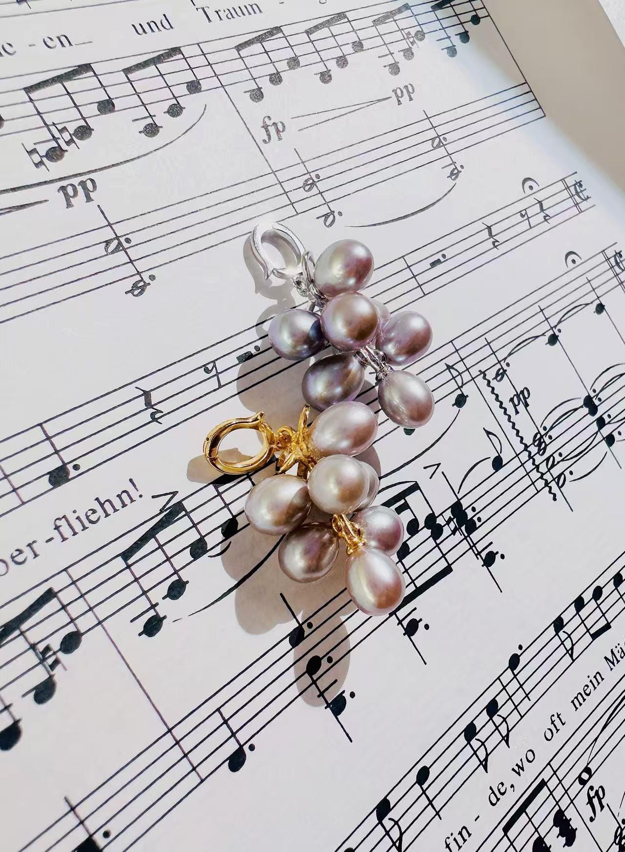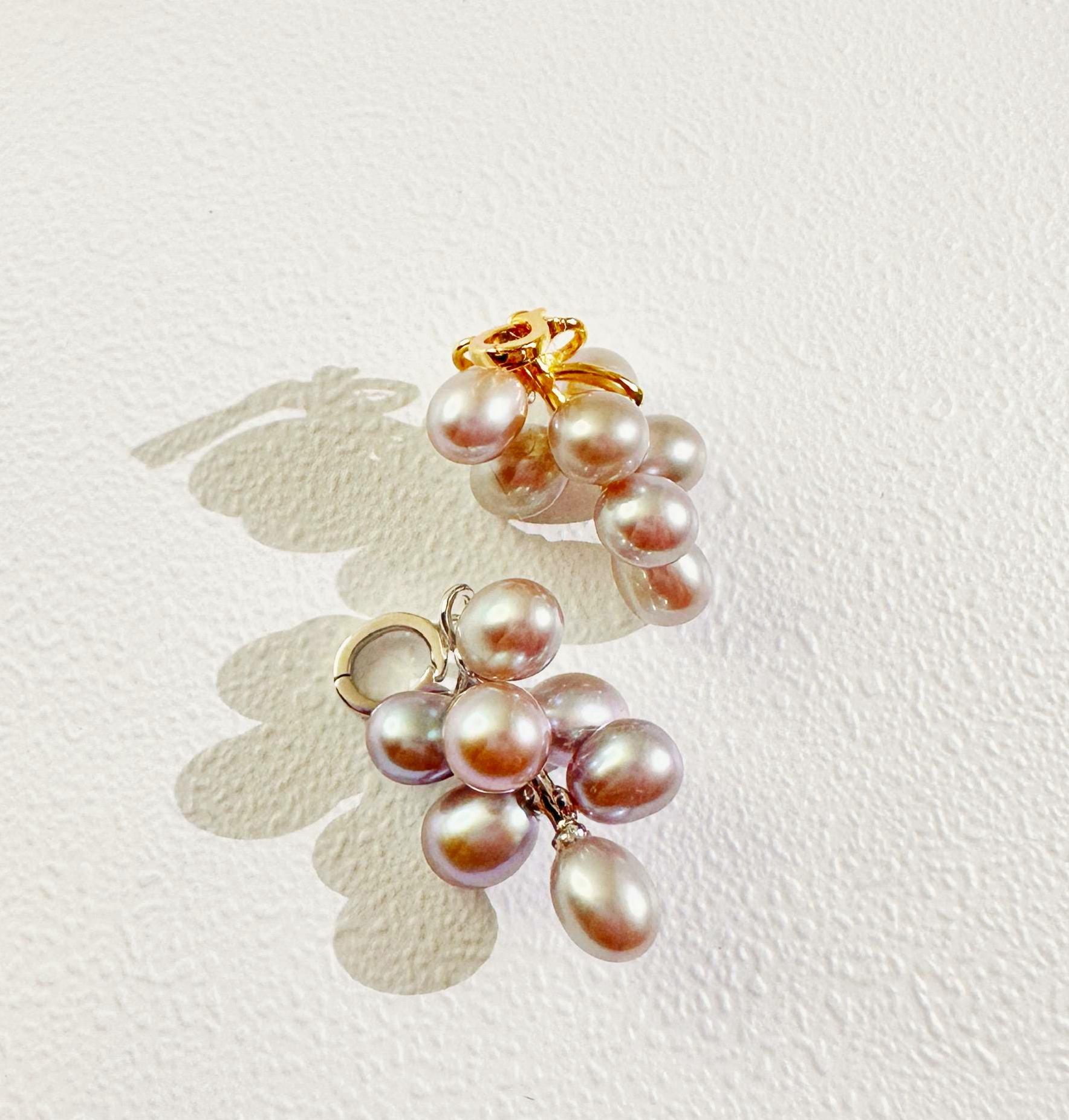 Juicy Purple Natural Freshwater Pearl Grape Cluster Handmade Pendant, Solid Sterling Silver Rhodium or Gold Plated