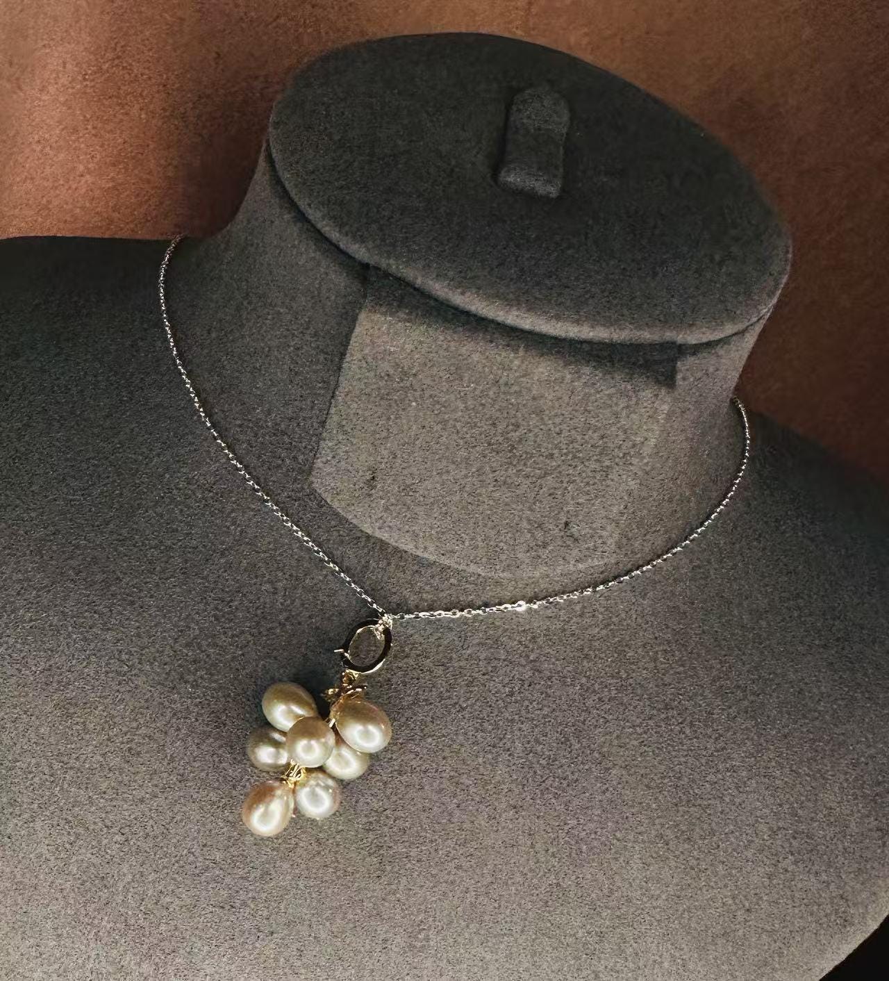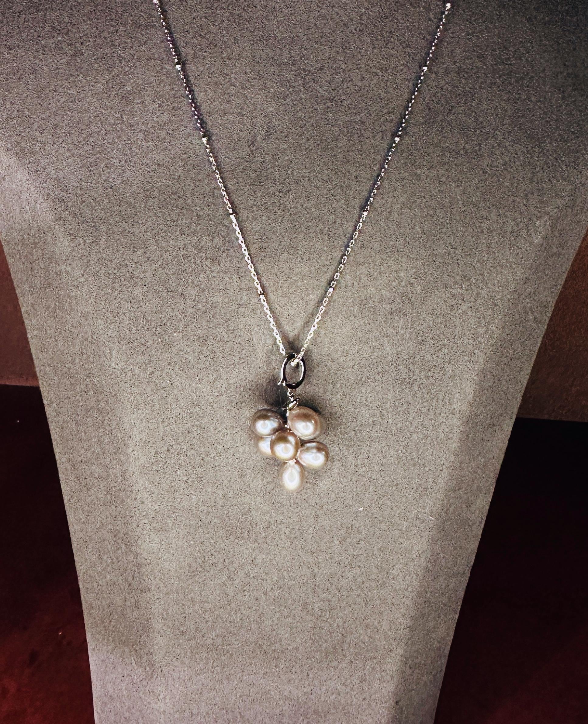 π Juicy Little Grape pendant with natural freshwater pearls arranged in a lively grape cluster. Each pearl is about 6 mm with small natural size variations. They are strong luster pearls that shine with soft reflections.