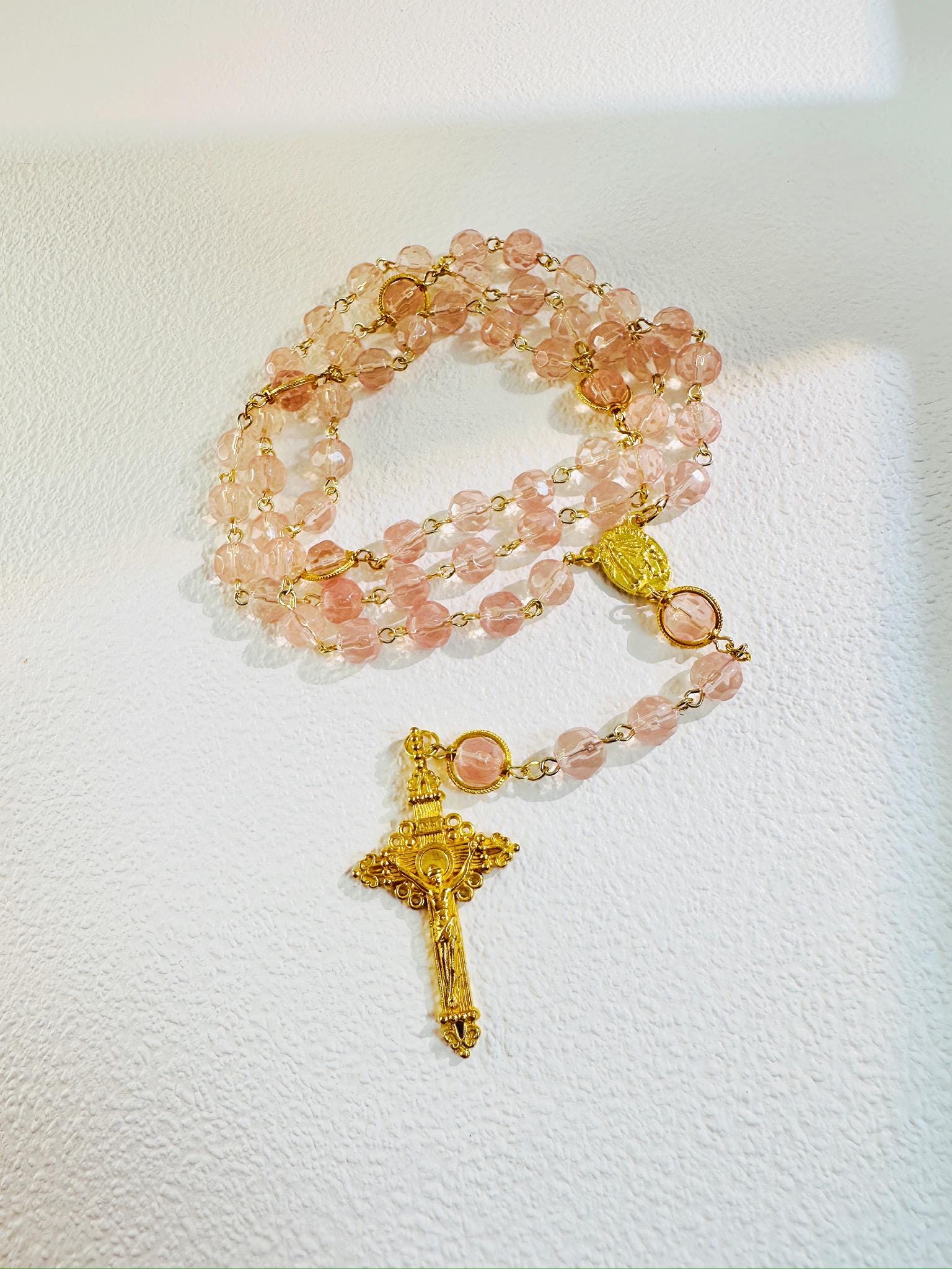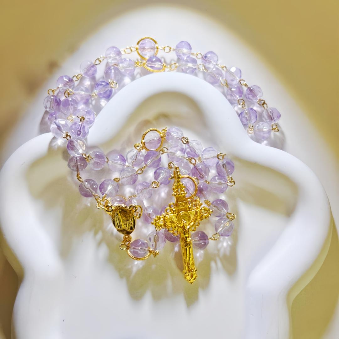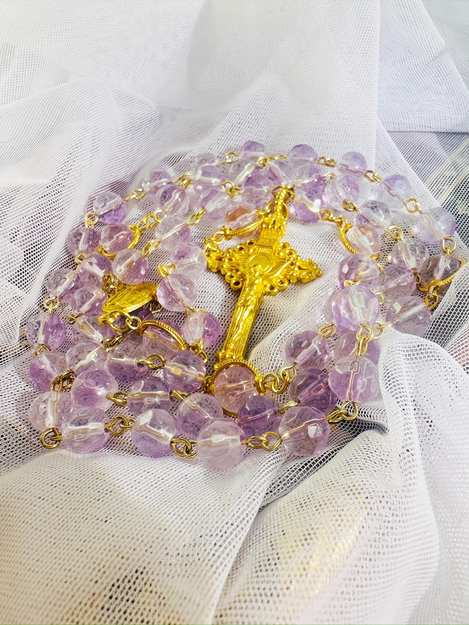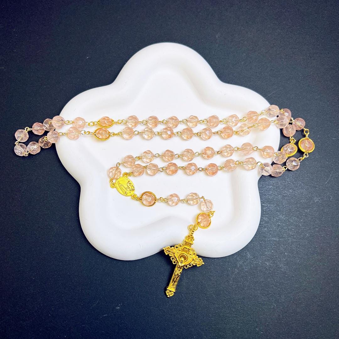 Elegant Purple Pink or Gold Crystal Glass Rosary 8 mm Golden Beads with Chain Catholic Prayer Beads Christmas Gift for Sisters in Christ