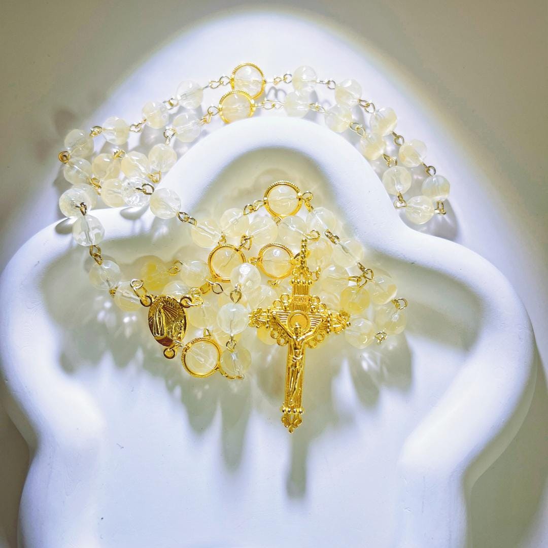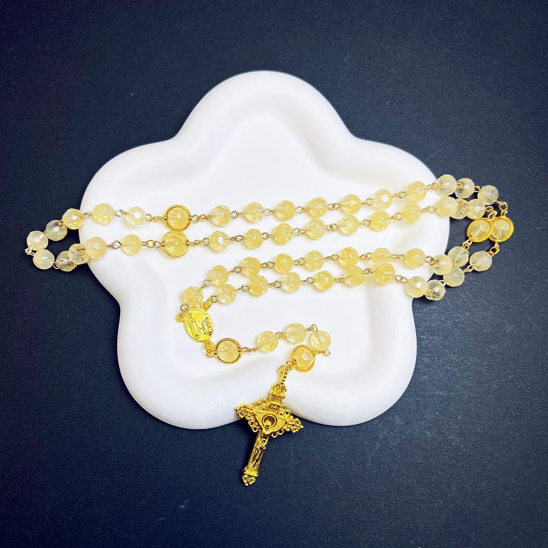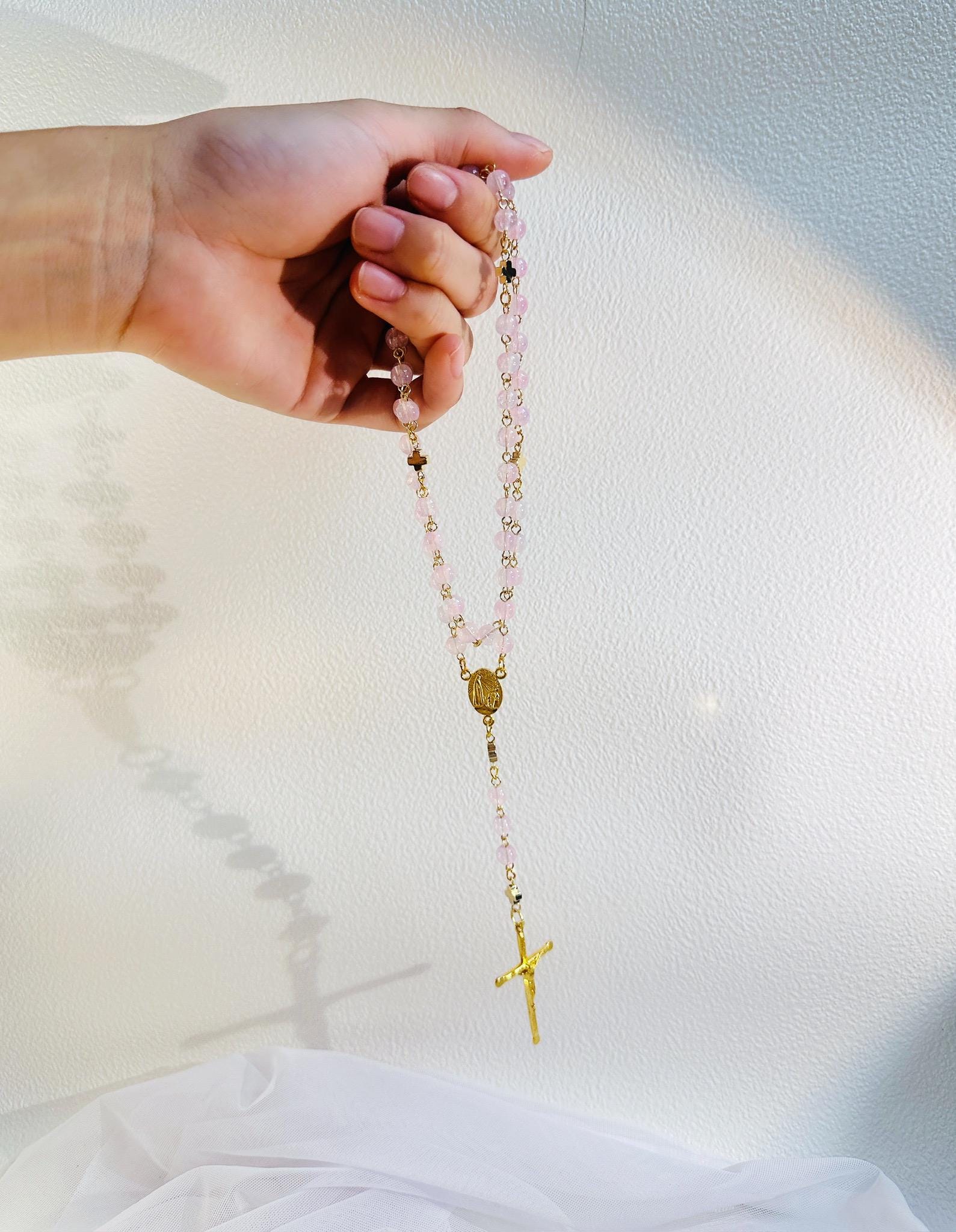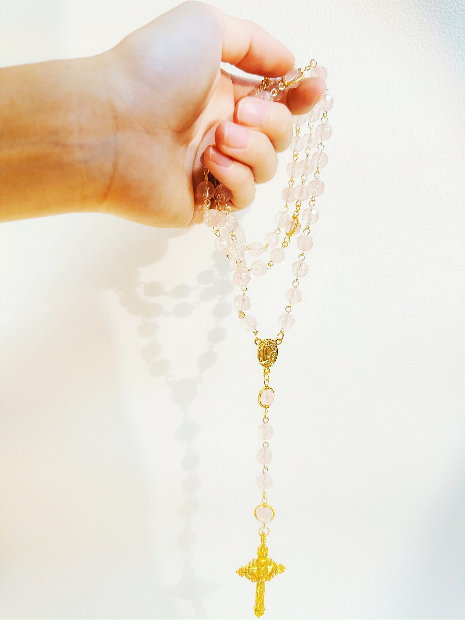 Elegant Purple Pink or Gold Crystal Glass Rosary 8 mm Golden Beads with Chain Catholic Prayer Beads Christmas Gift for Sisters in Christ