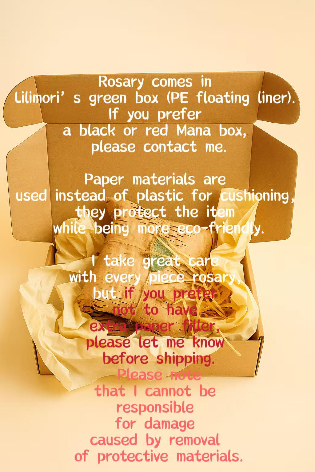 • Standard protective packaging (included): Each rosary is packed securely. Fragile gemstones may ship in a protective box with padding, while other designs may use bubble mailers or sturdy mailer boxes.