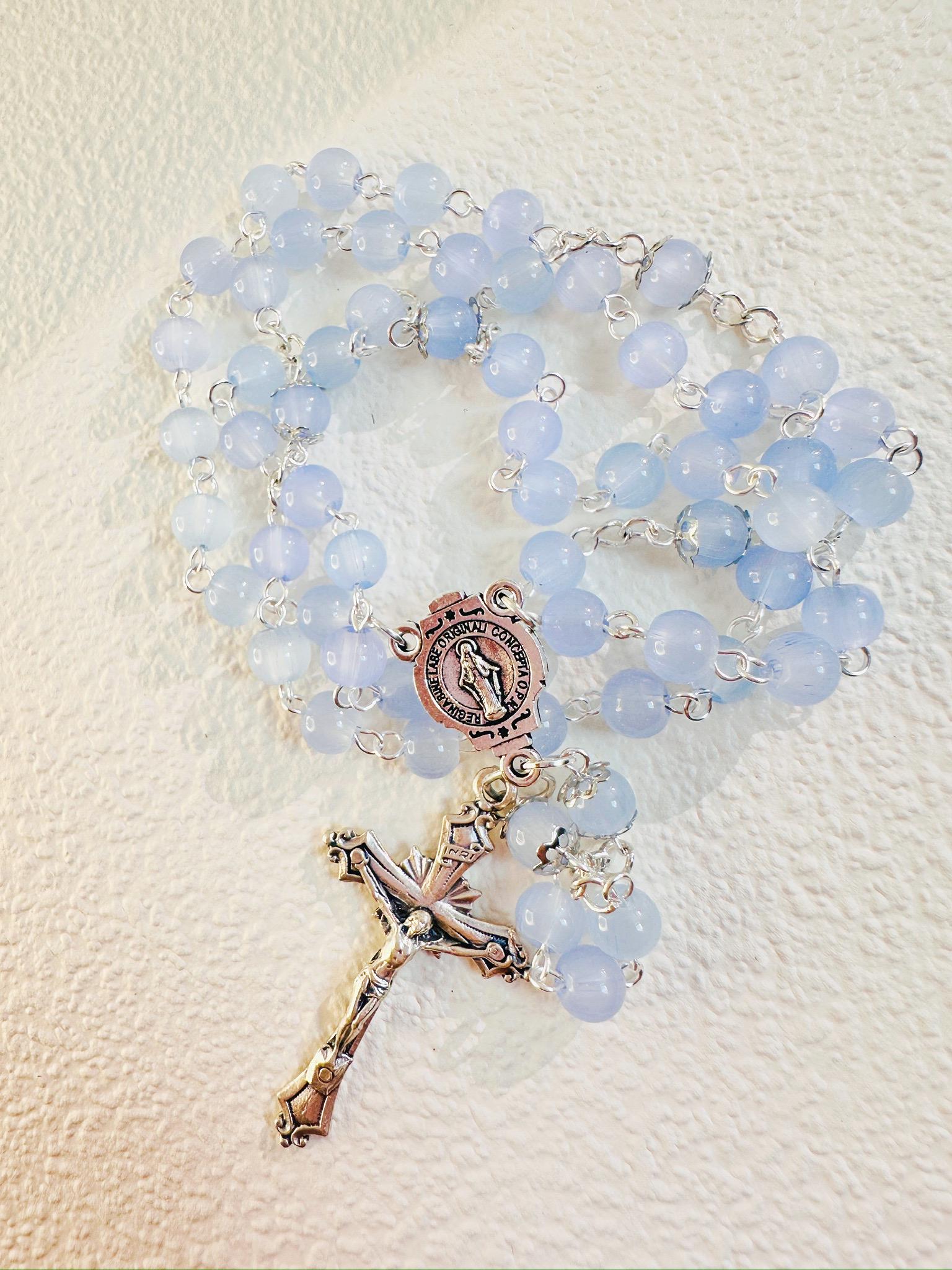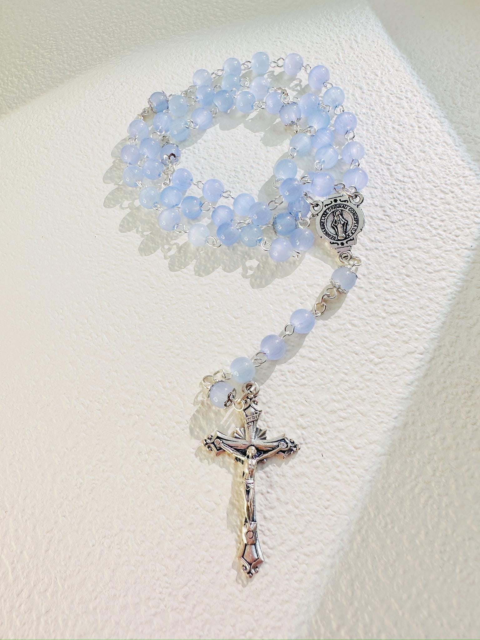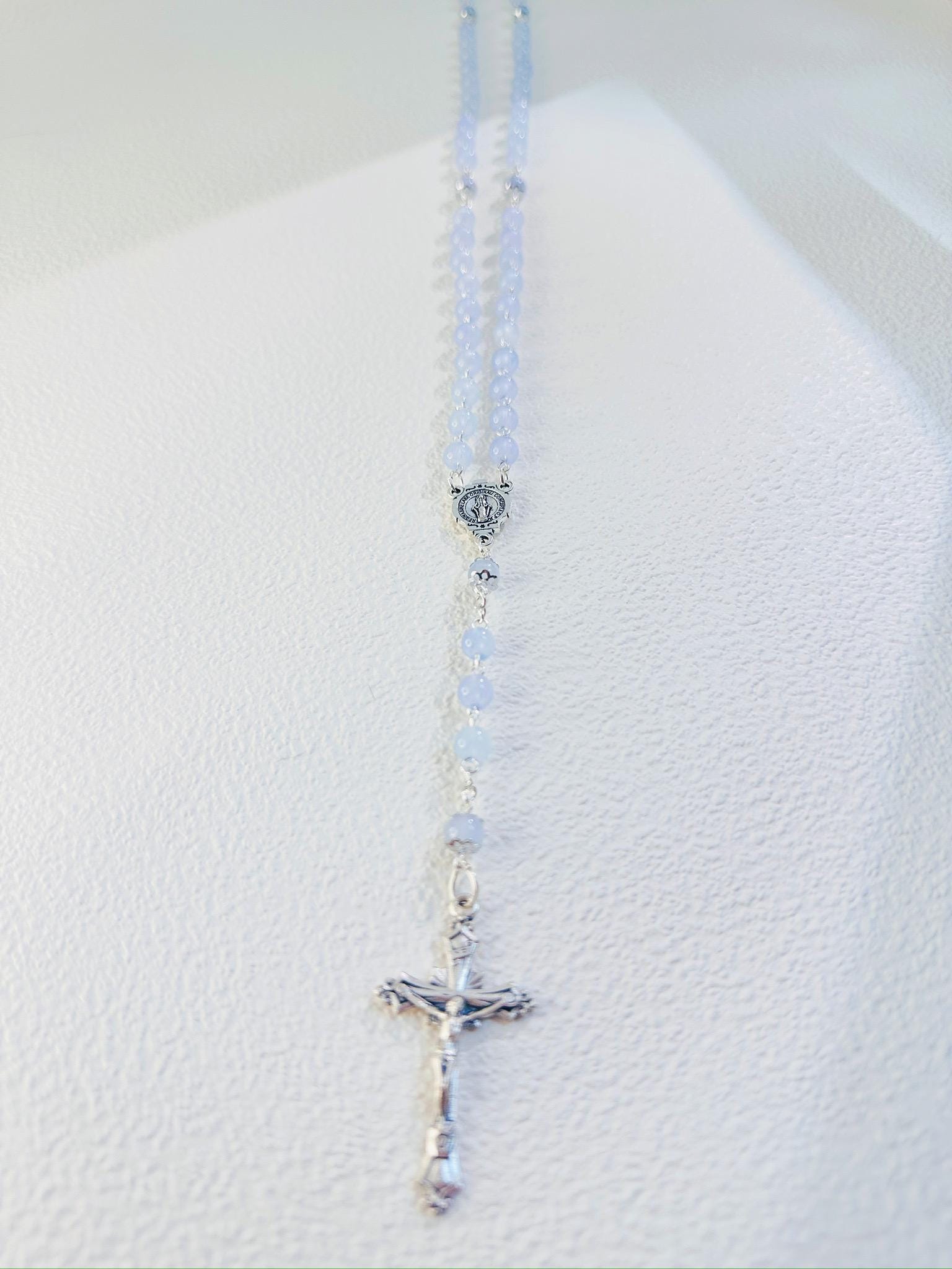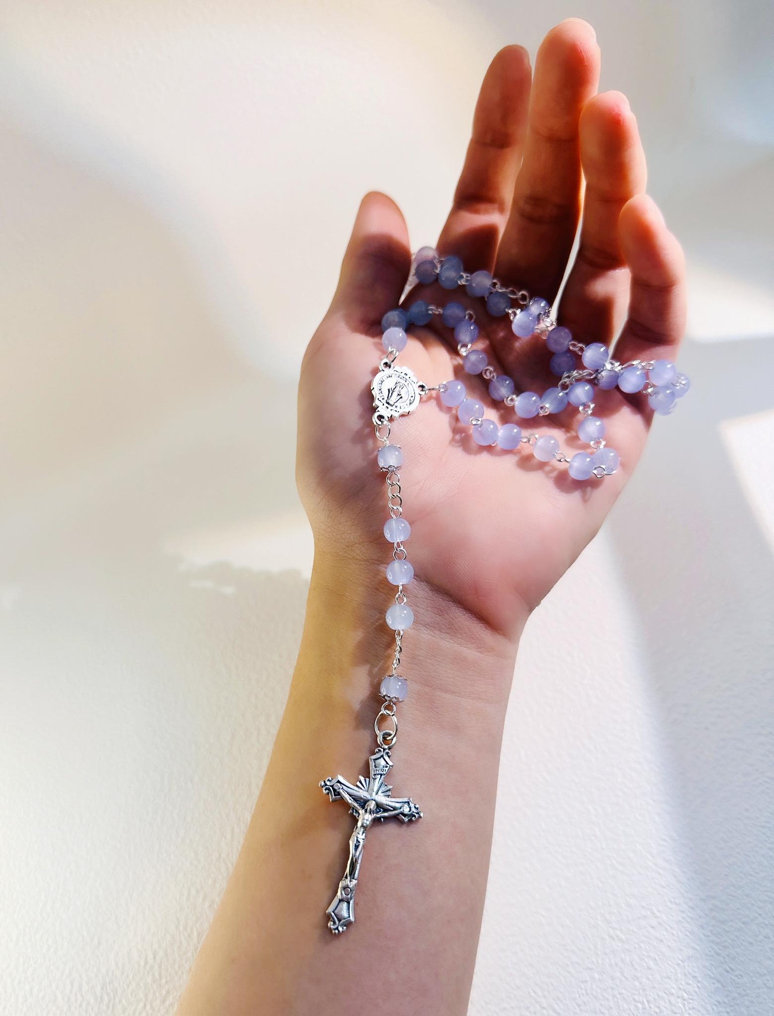 6 mm Light Blue Purple Crystal Rosary with Italian Crucifix, Christmas Catholic Gift (Add Pouch – see description)
