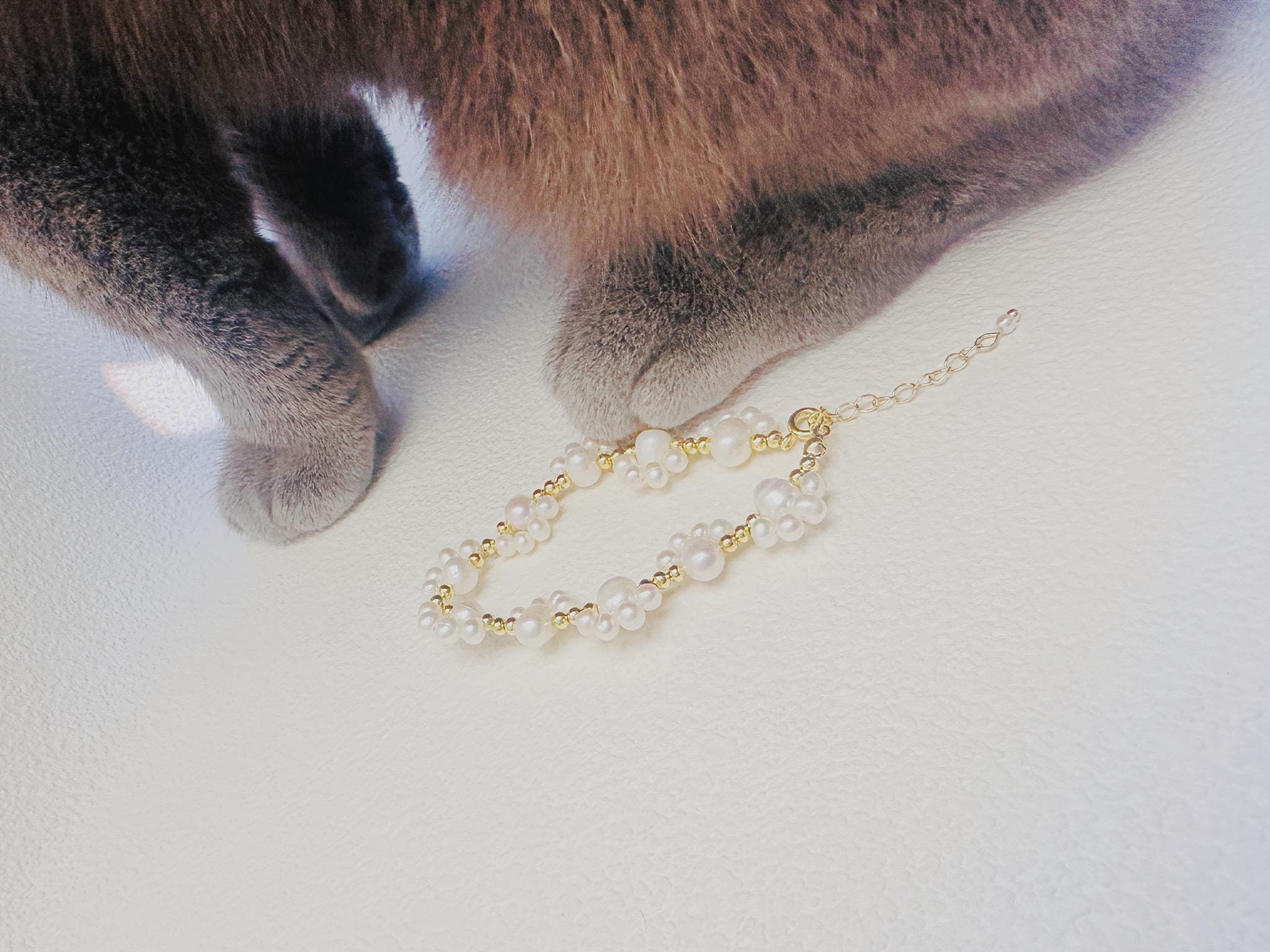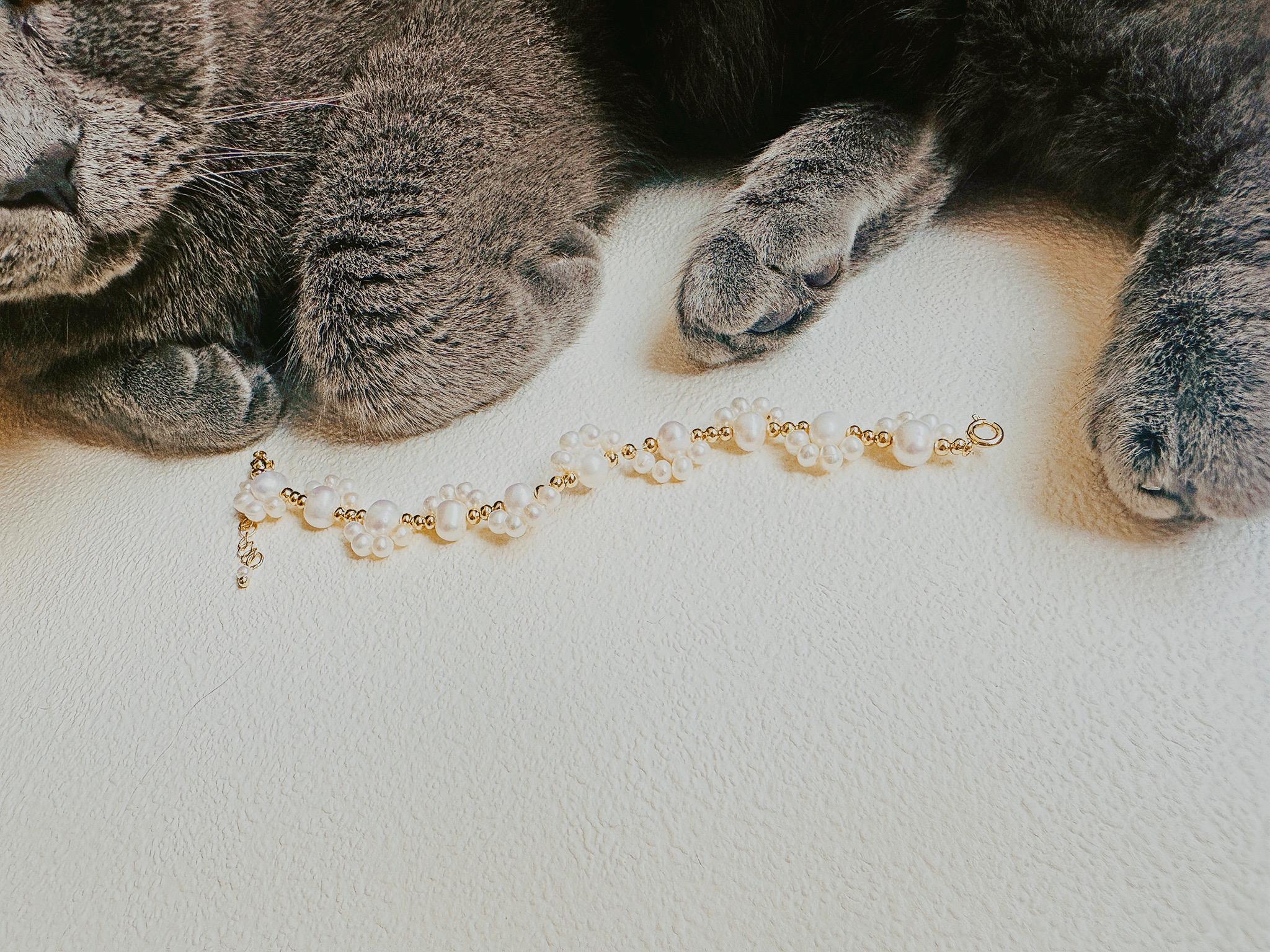 🐾 This little paw bracelet was made with pearls chosen on purpose, not perfectly round, so they look just like tiny paw pads.