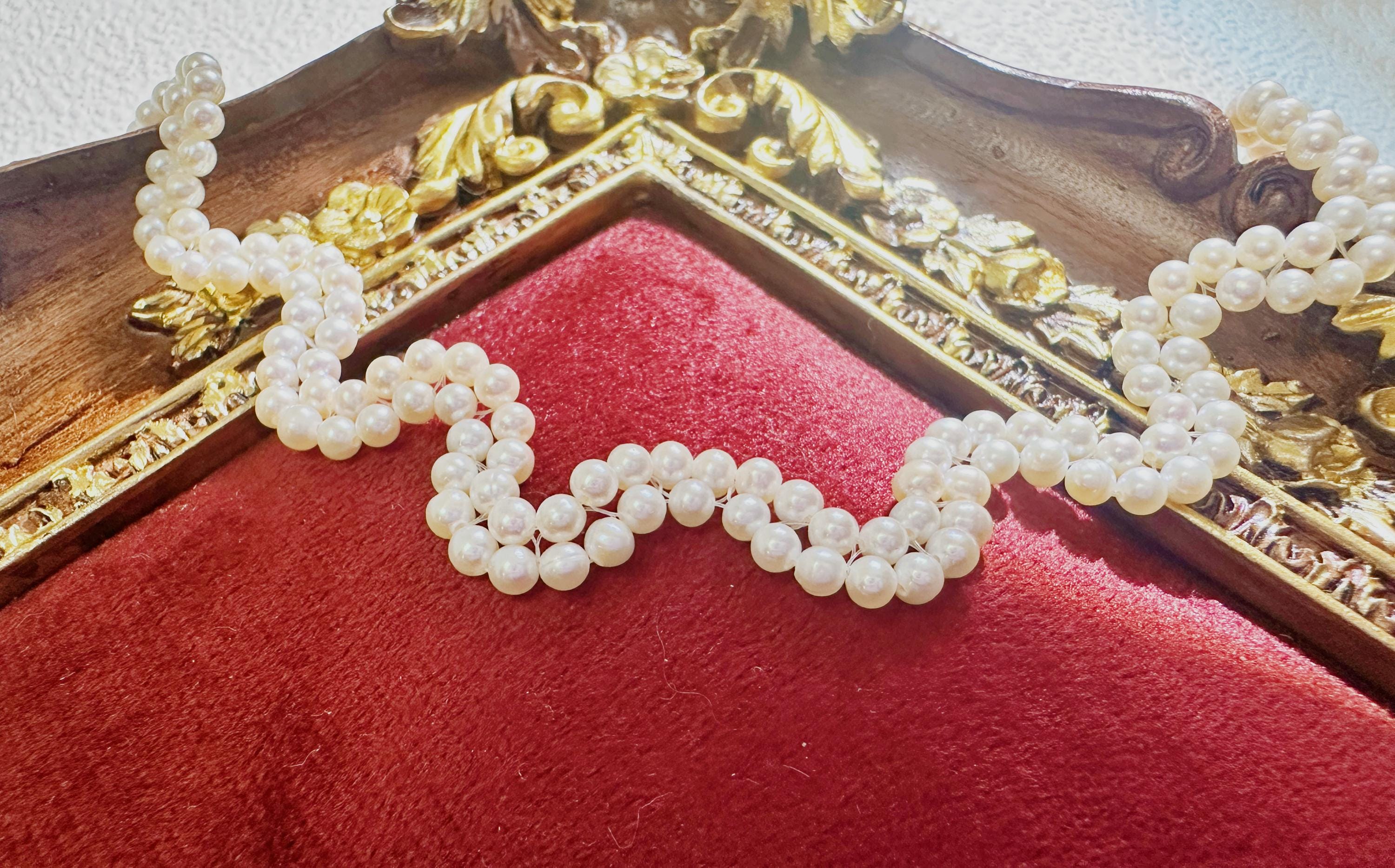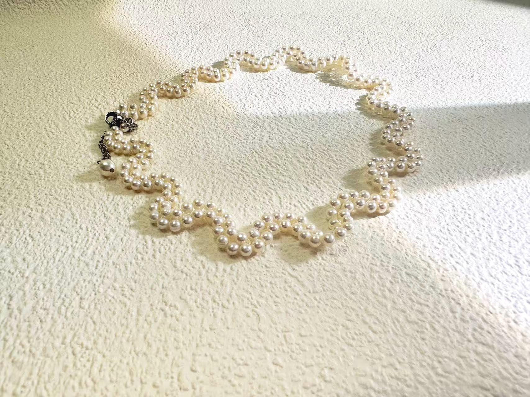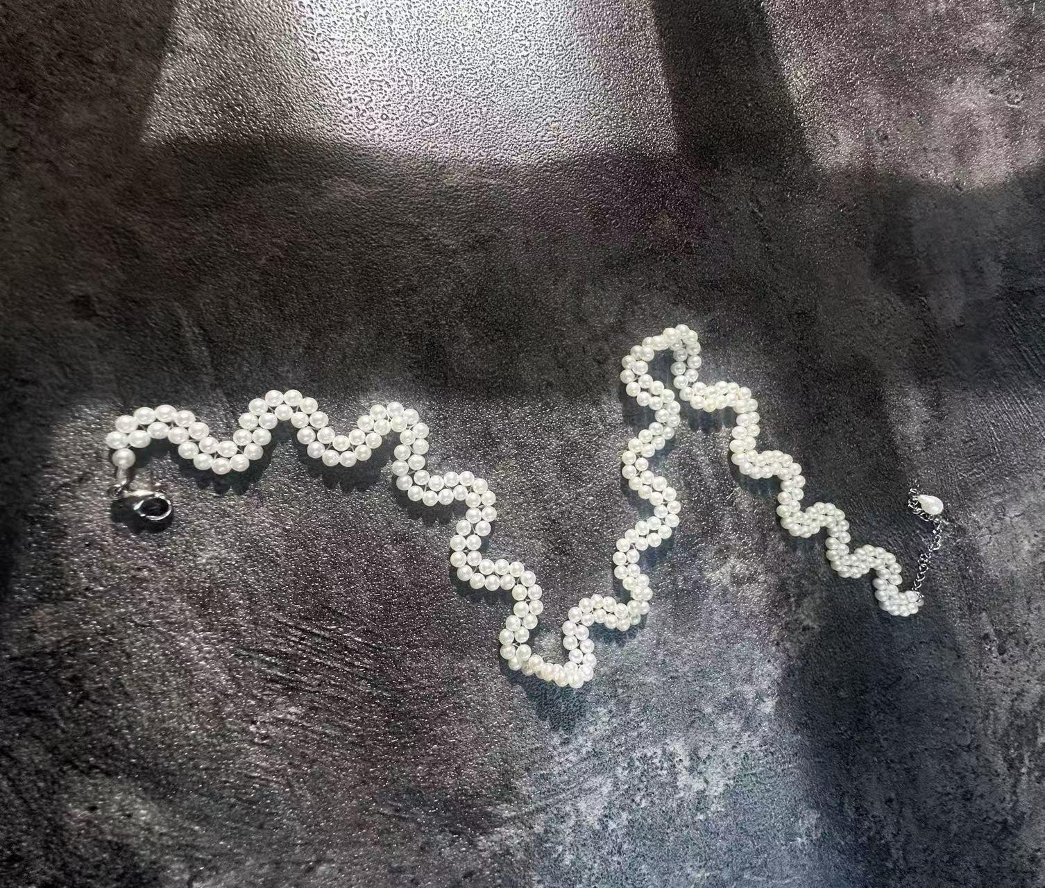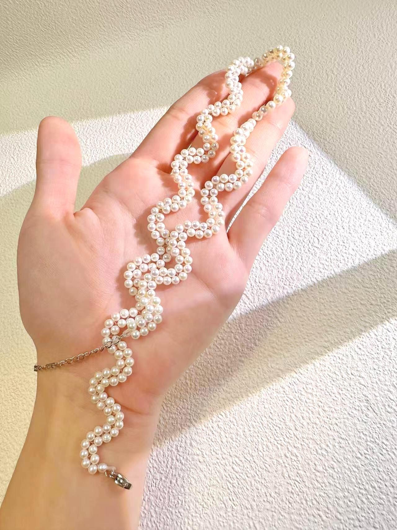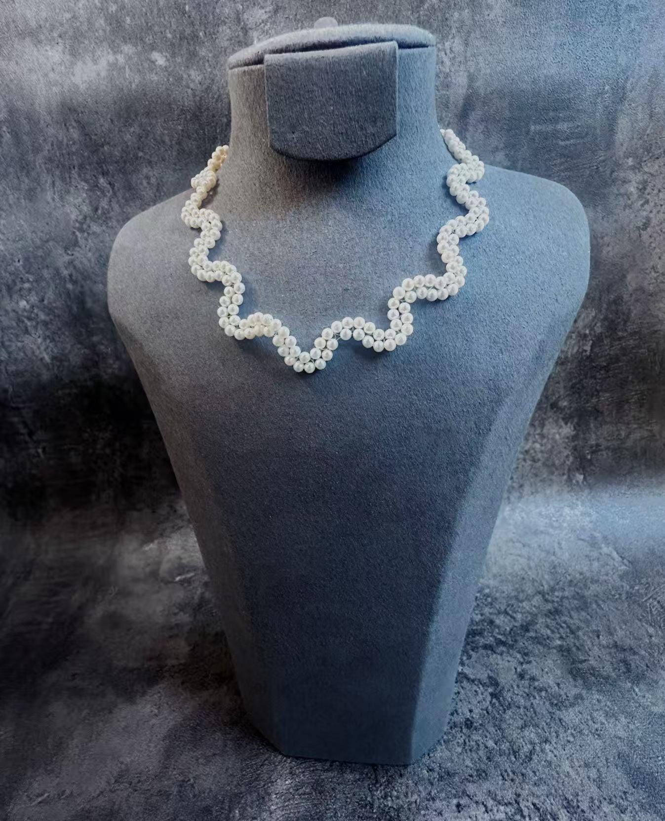 Hand-strung with lustrous 3–4mm freshwater pearls, this Pearl Wave Statement Choker blends vintage romance with whimsical fantasy. Each curve is patiently woven bead by bead on durable nylon cord — a delicate rhythm of pulling and releasing, where no two necklaces are ever exactly alike.