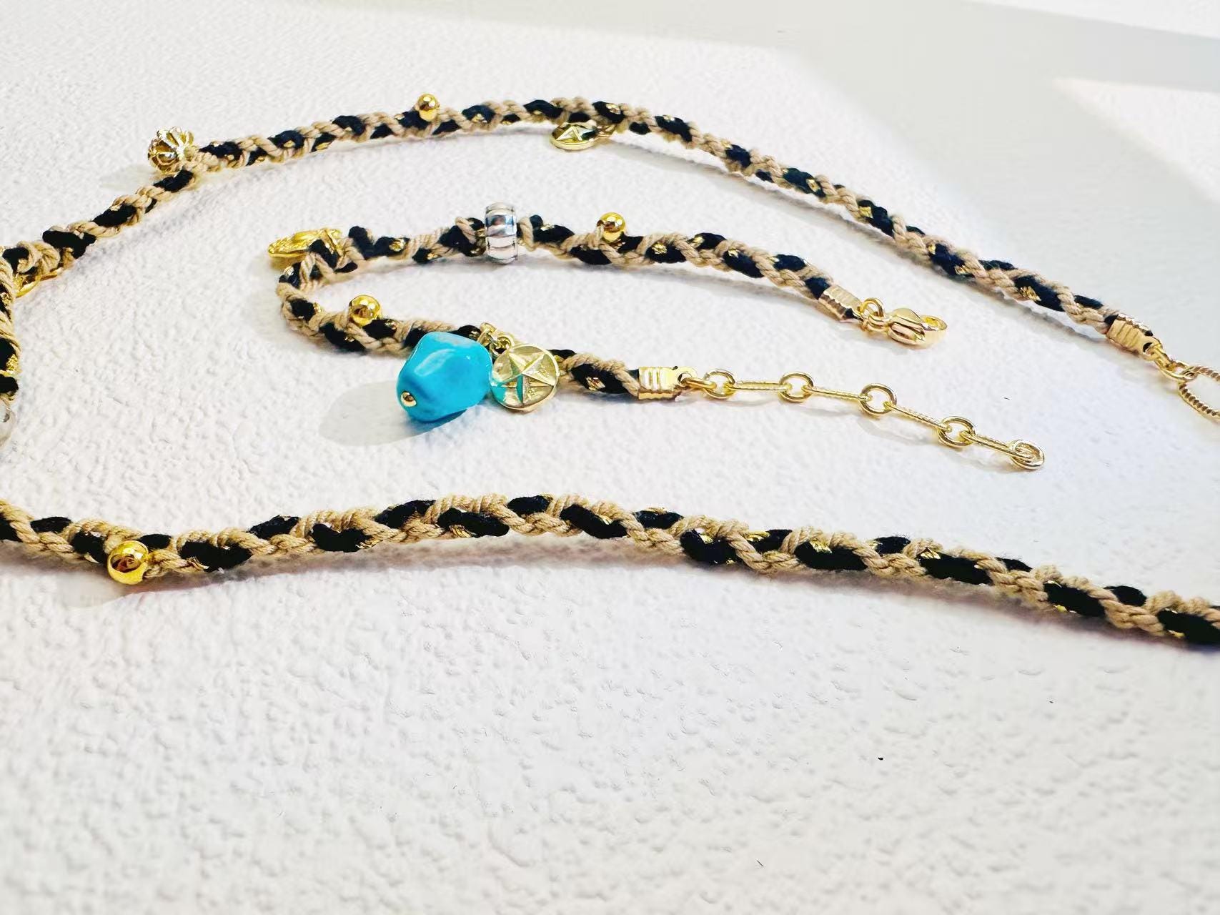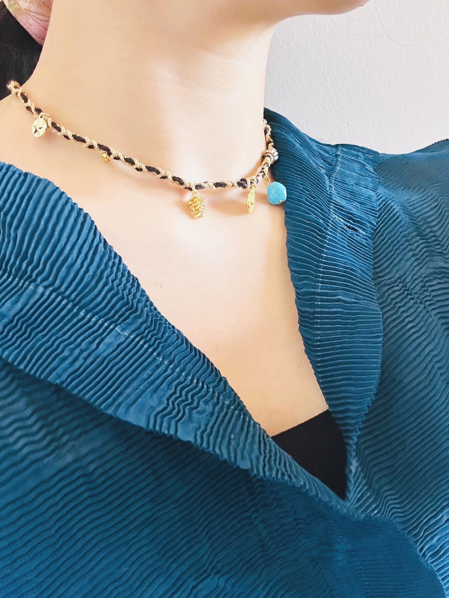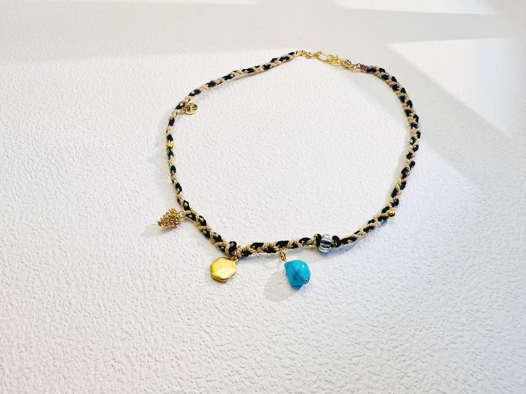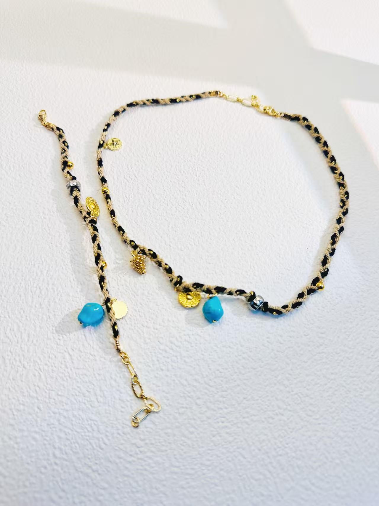 • Necklace: turquoise magnesite + enamel accents · 38.5+4cm · ~7g