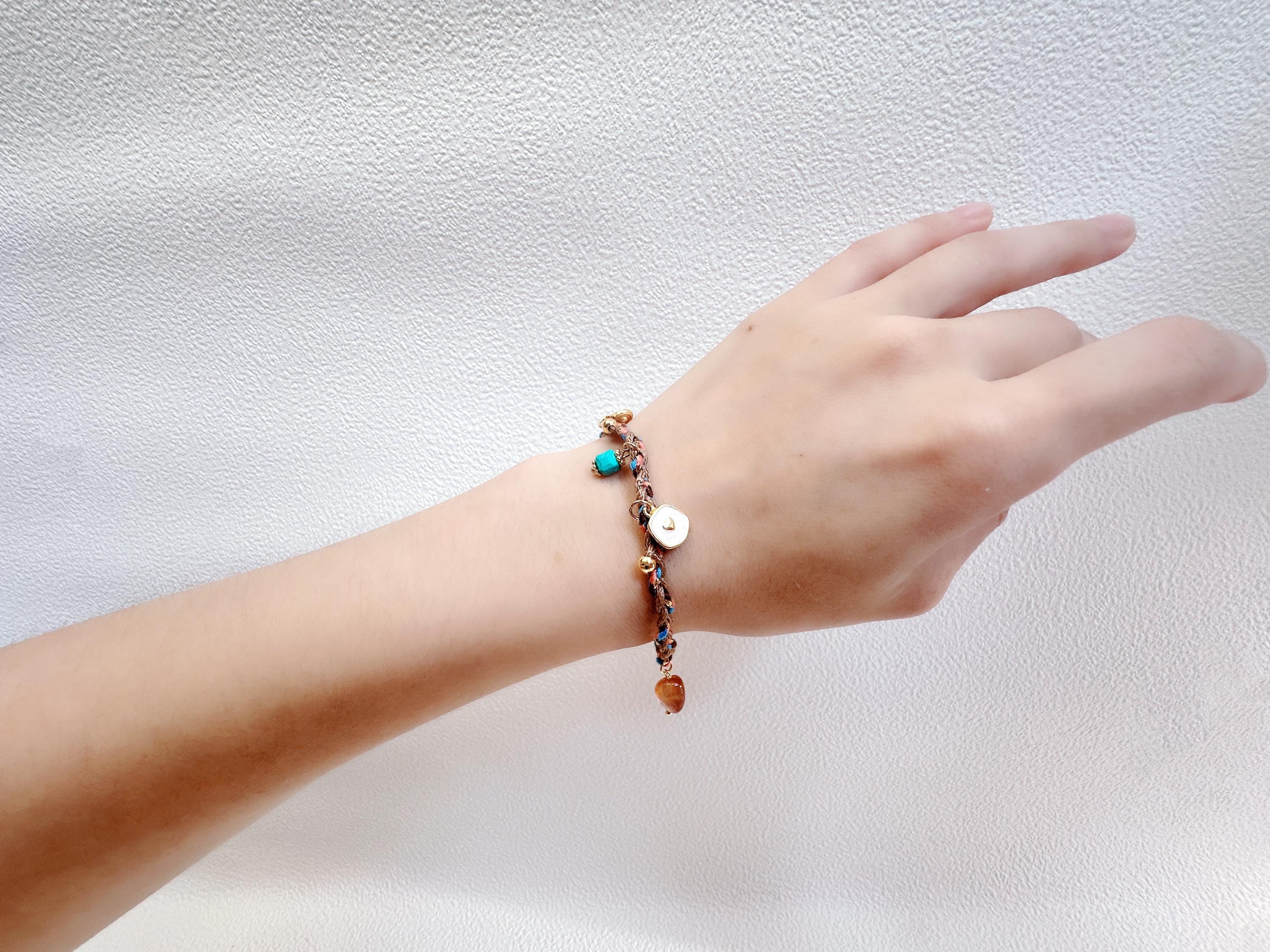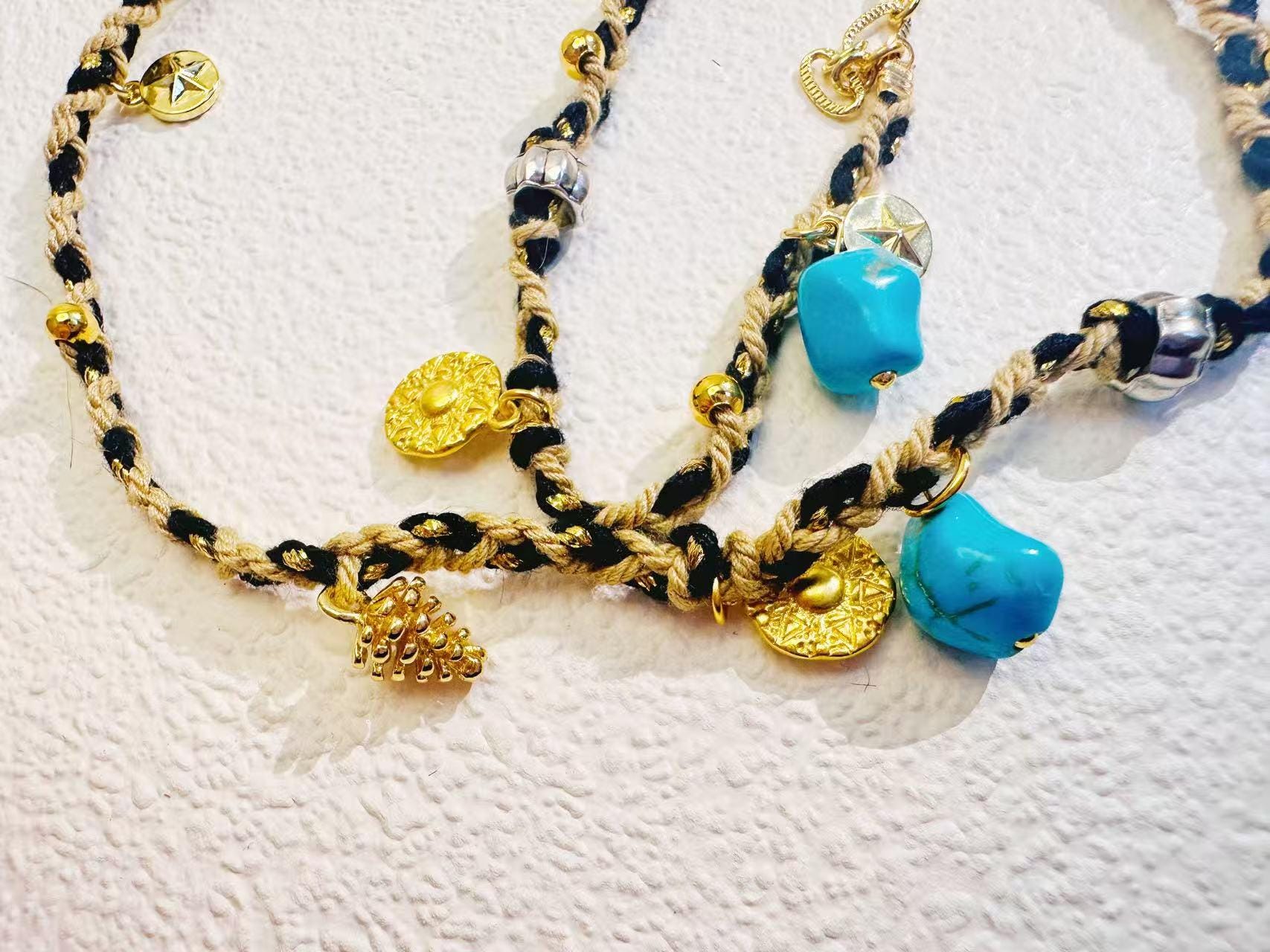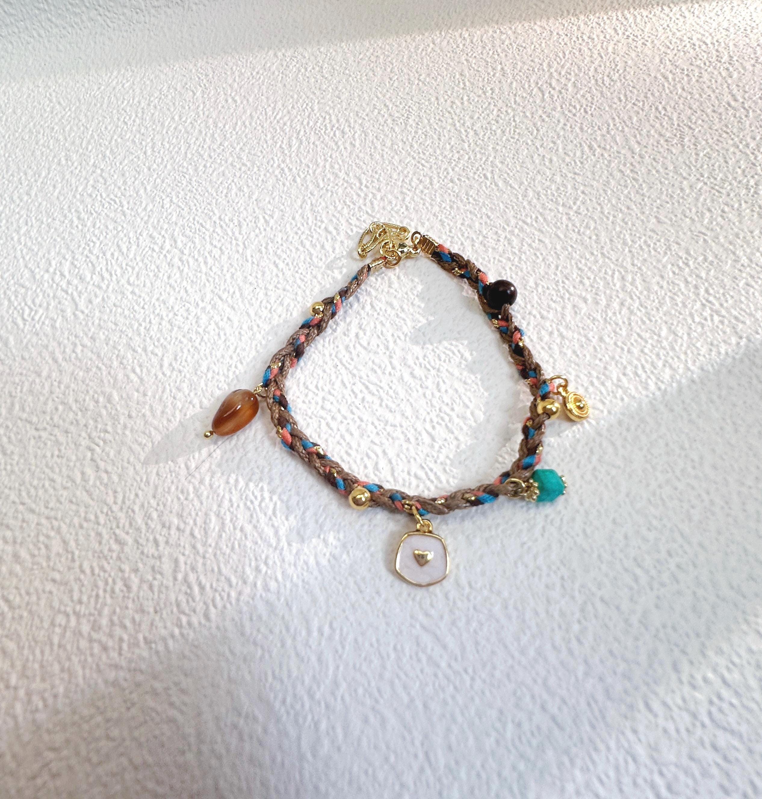 • Bracelet: 5mm turquoise beads + enamel/coconut · 17.5+4cm · ~4g