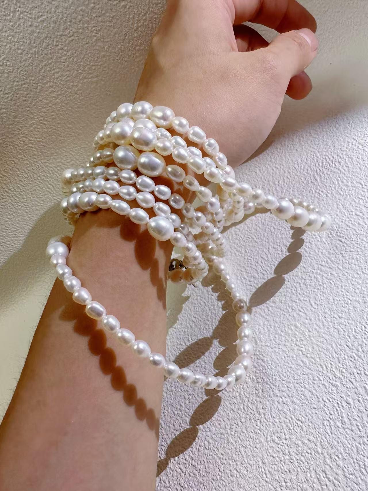 • Multi-wrap versatility: necklace, layered strand, or pearl scarf style