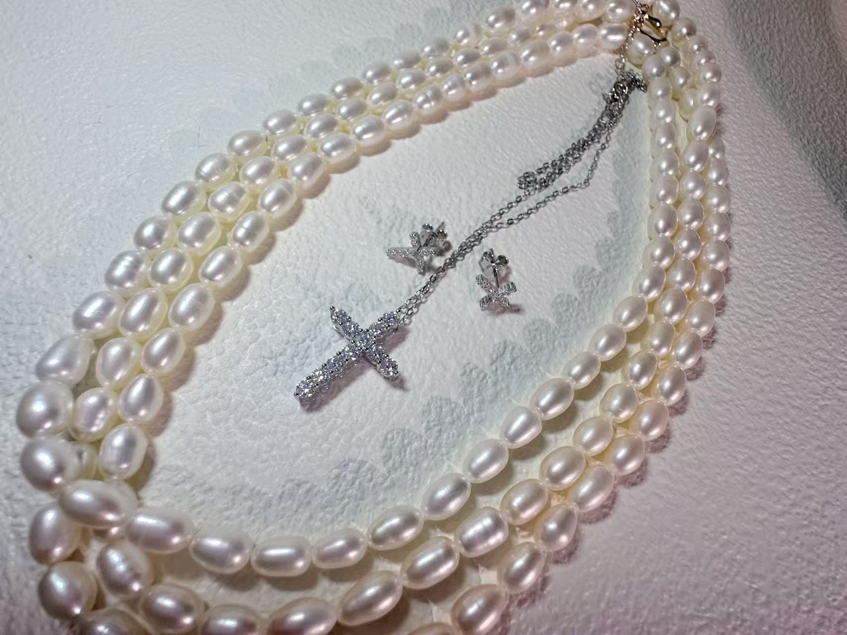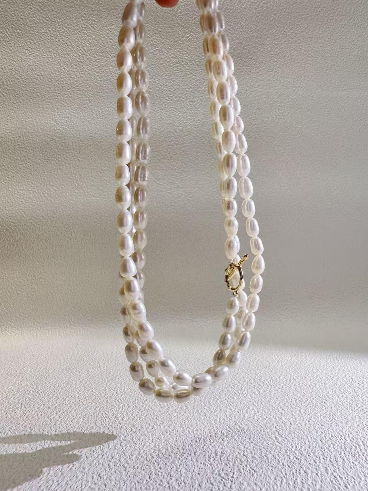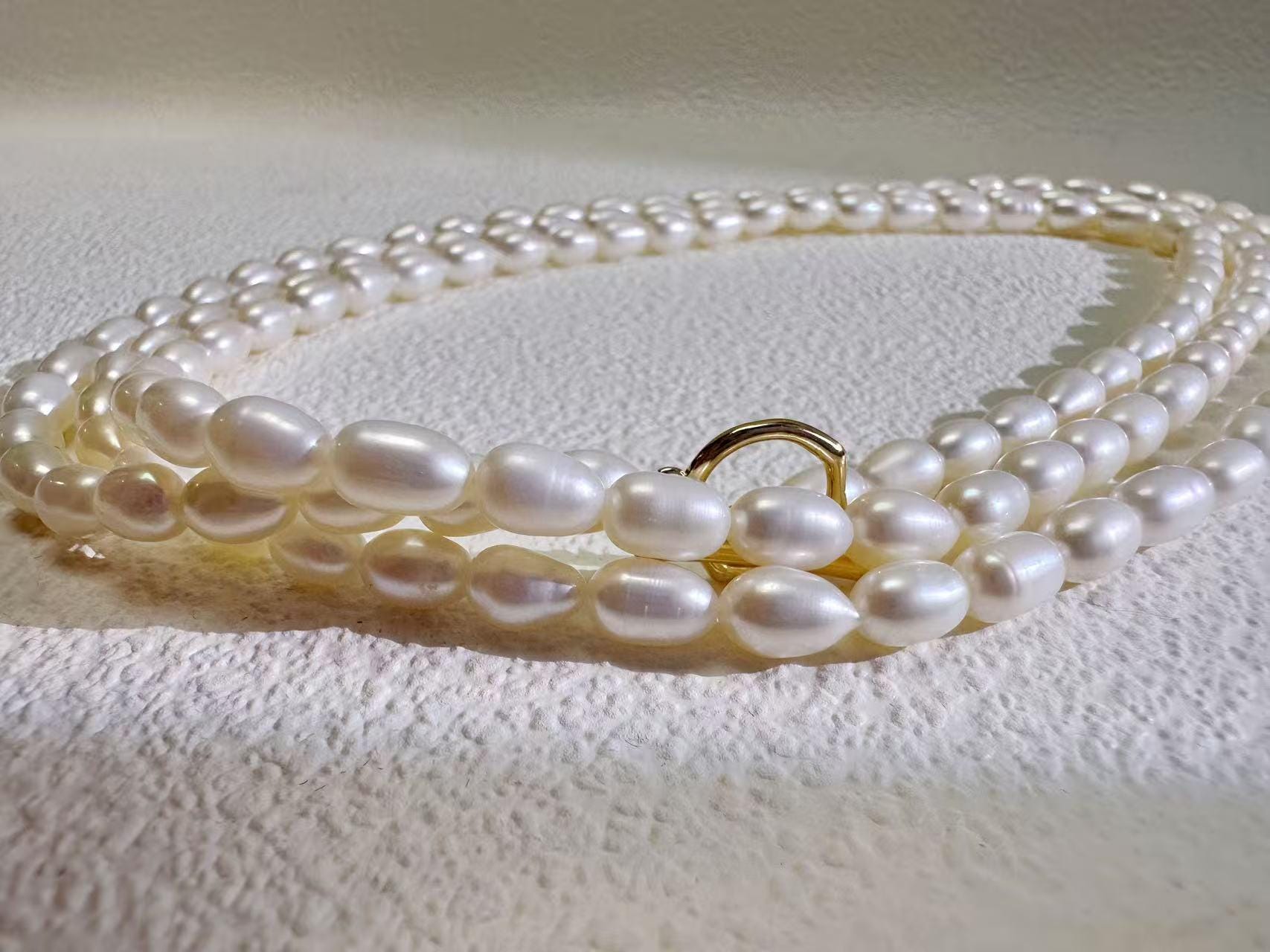 β¨ Elegant faith-inspired jewelry made with rare rice-shaped freshwater pearls. Smooth surface, gentle luster, almost flawless β refined and elegant, elongating the neckline. Unlike common round or baroque pearls, rice pearls in long strands are rarely seen, making this piece especially unique.