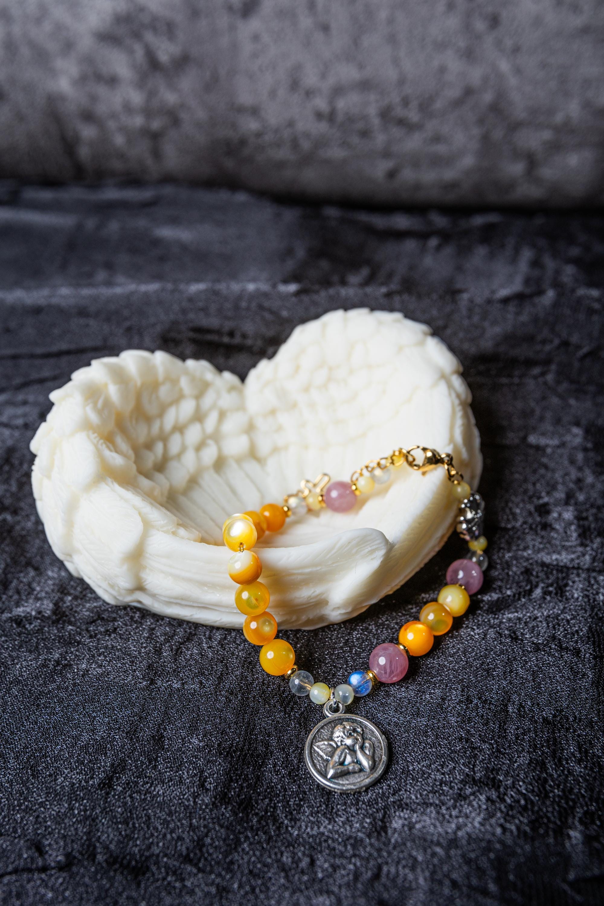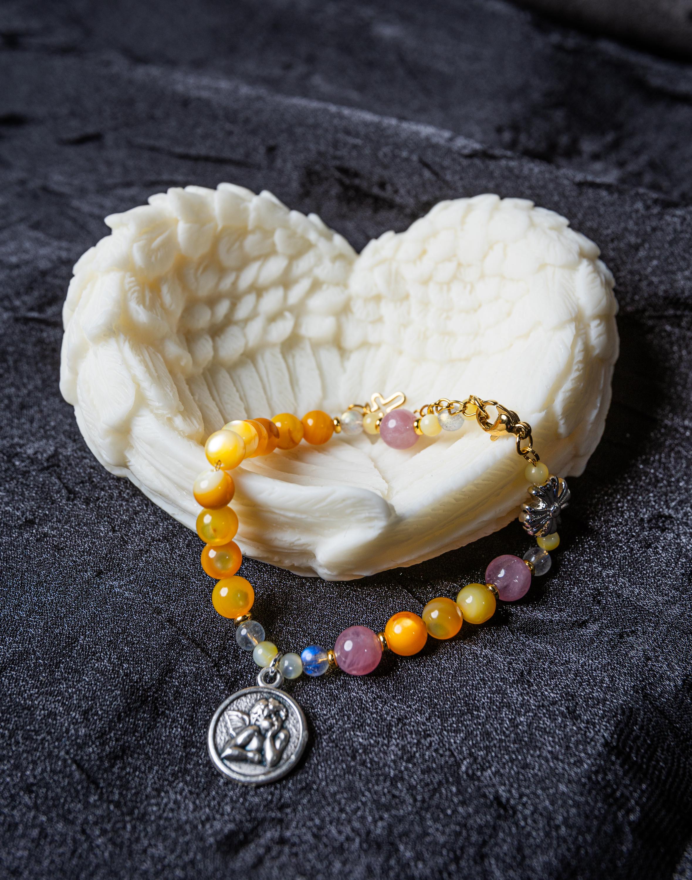 Soft, luminous, and full of light — a little piece of prayer you can wear.