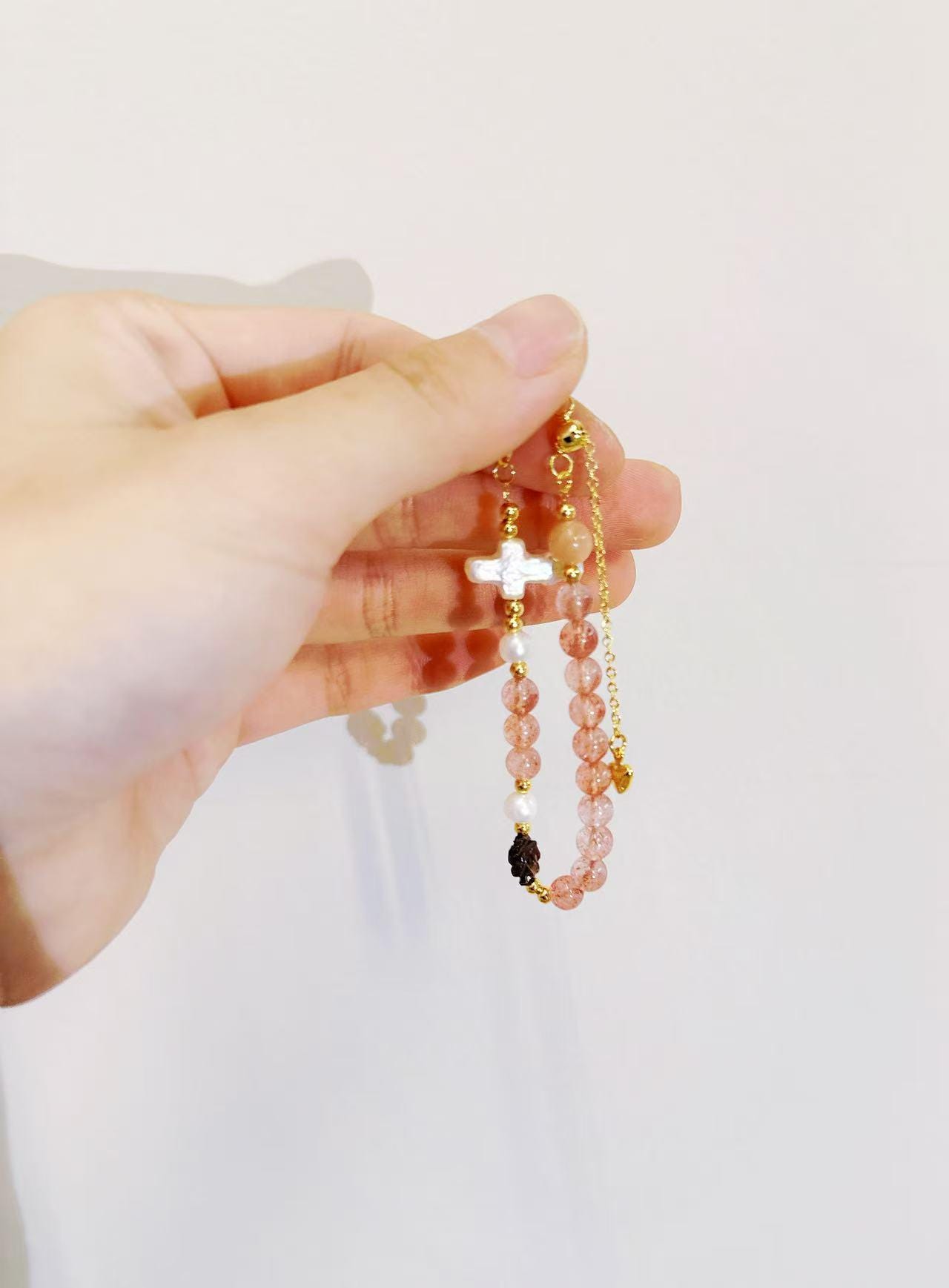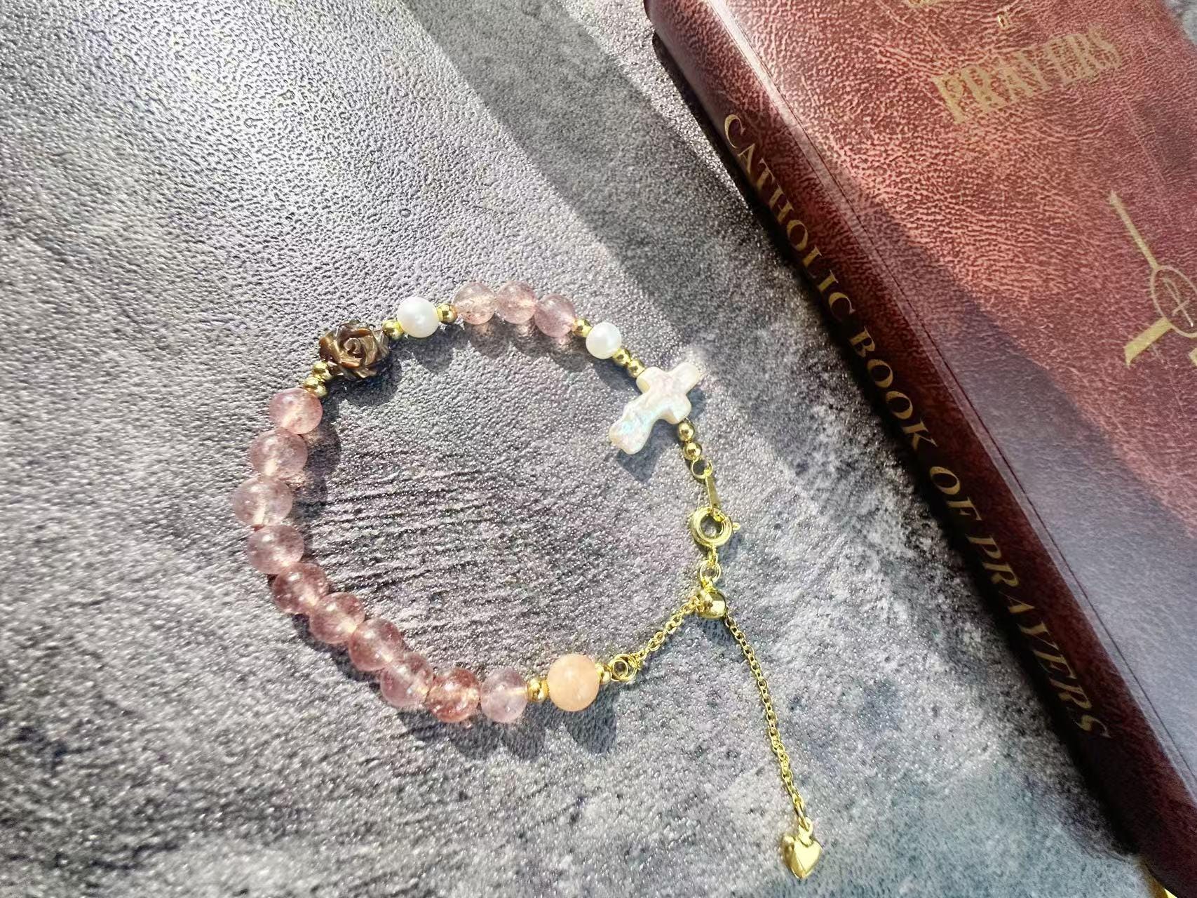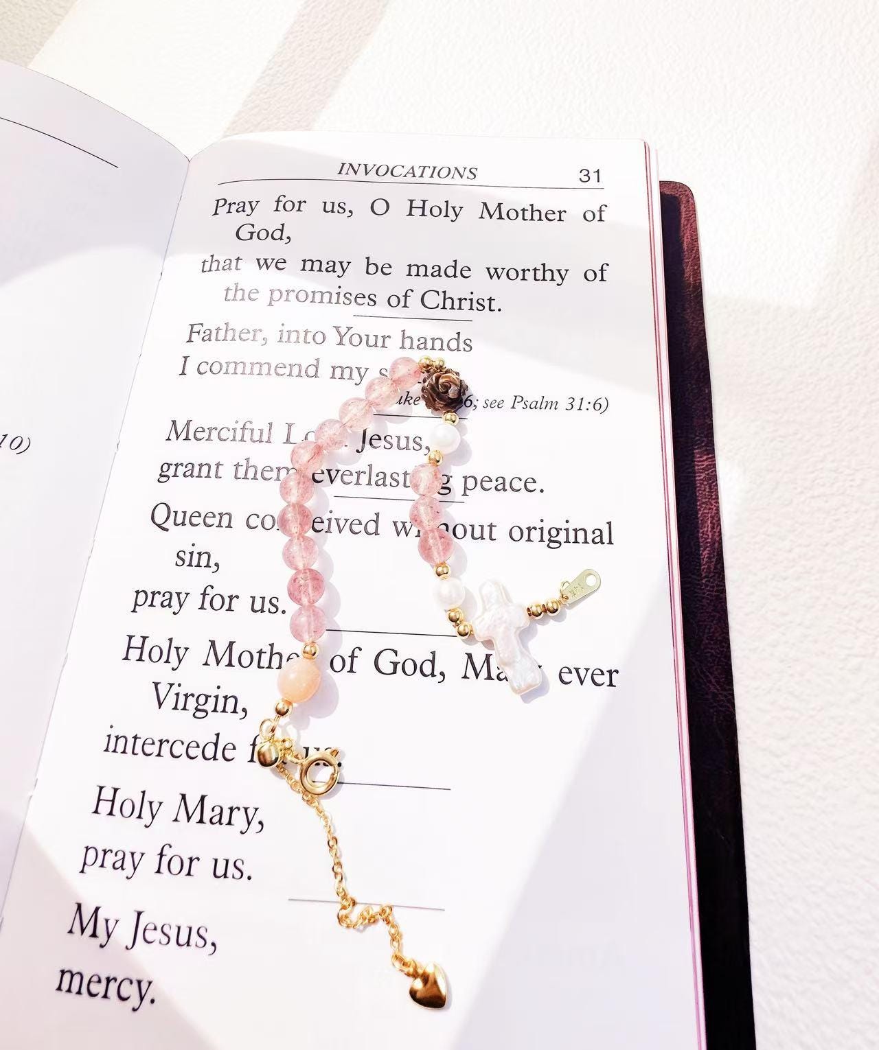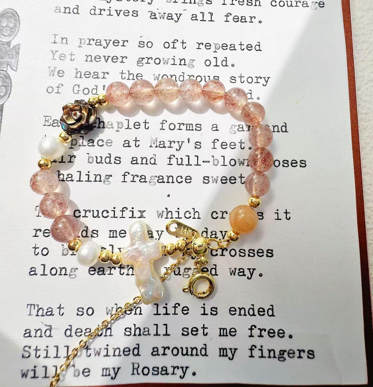 🍓The soft blush of strawberry quartz and the glow of pearls bring calm to your prayer — a quiet blessing you can wear every day.