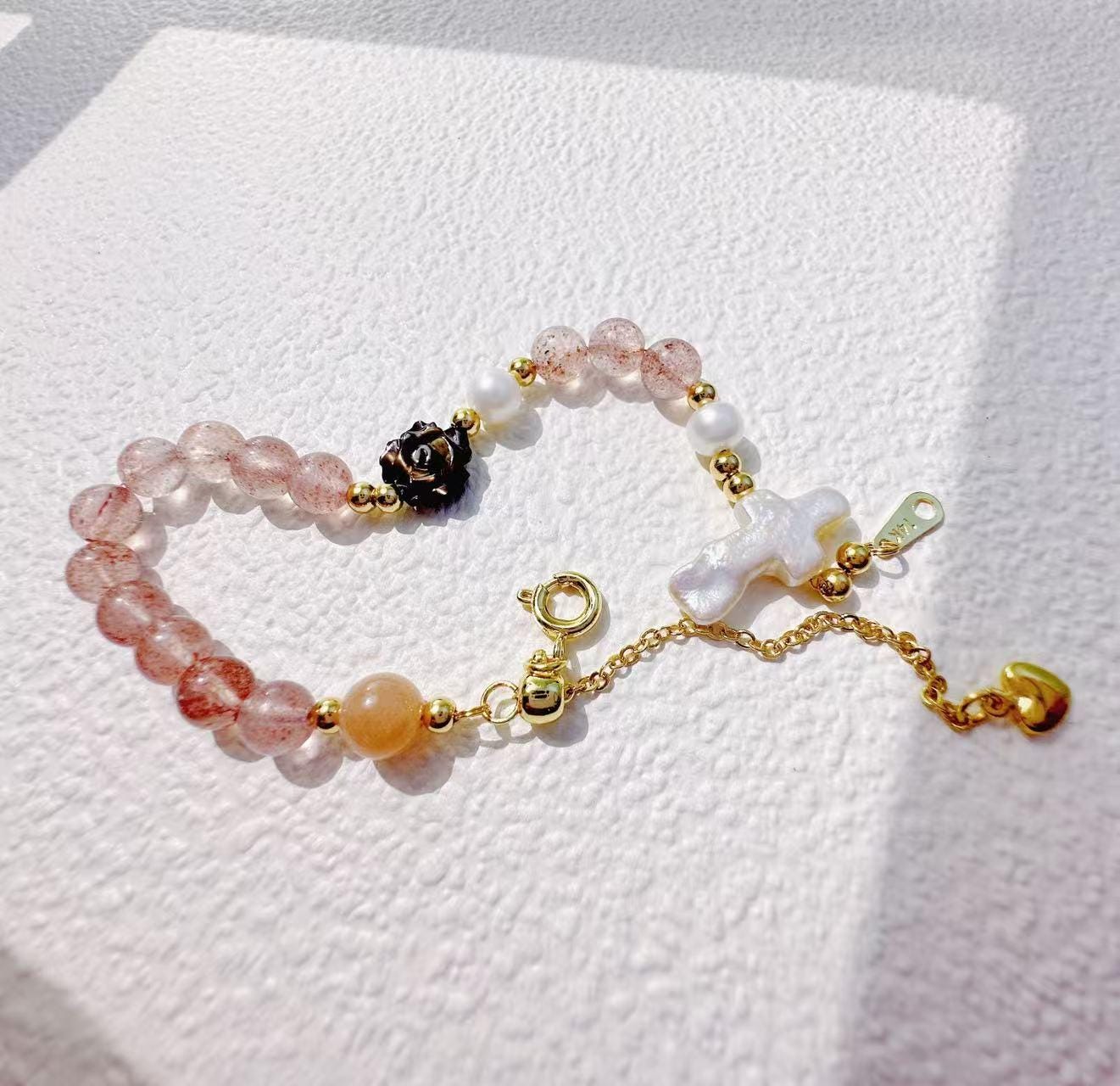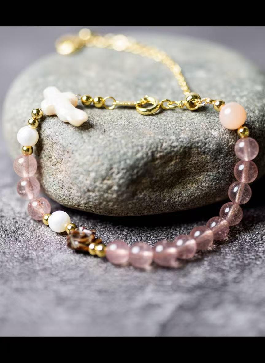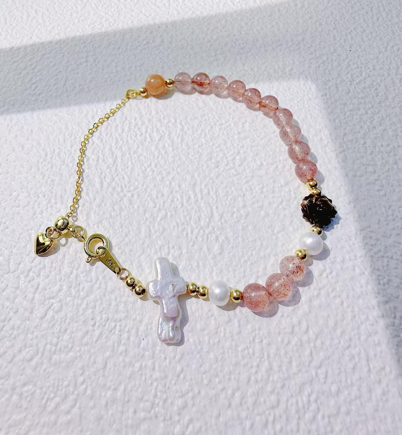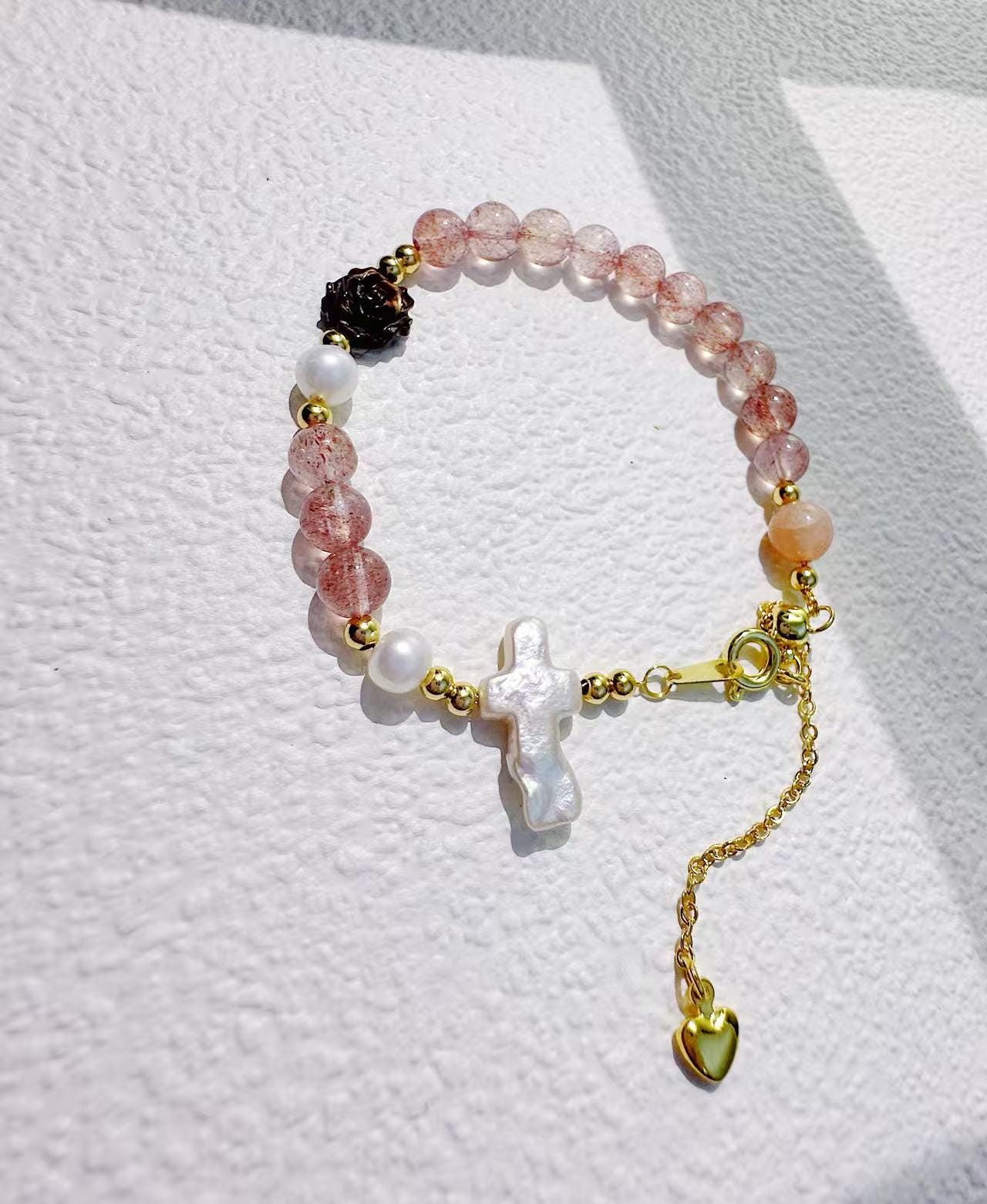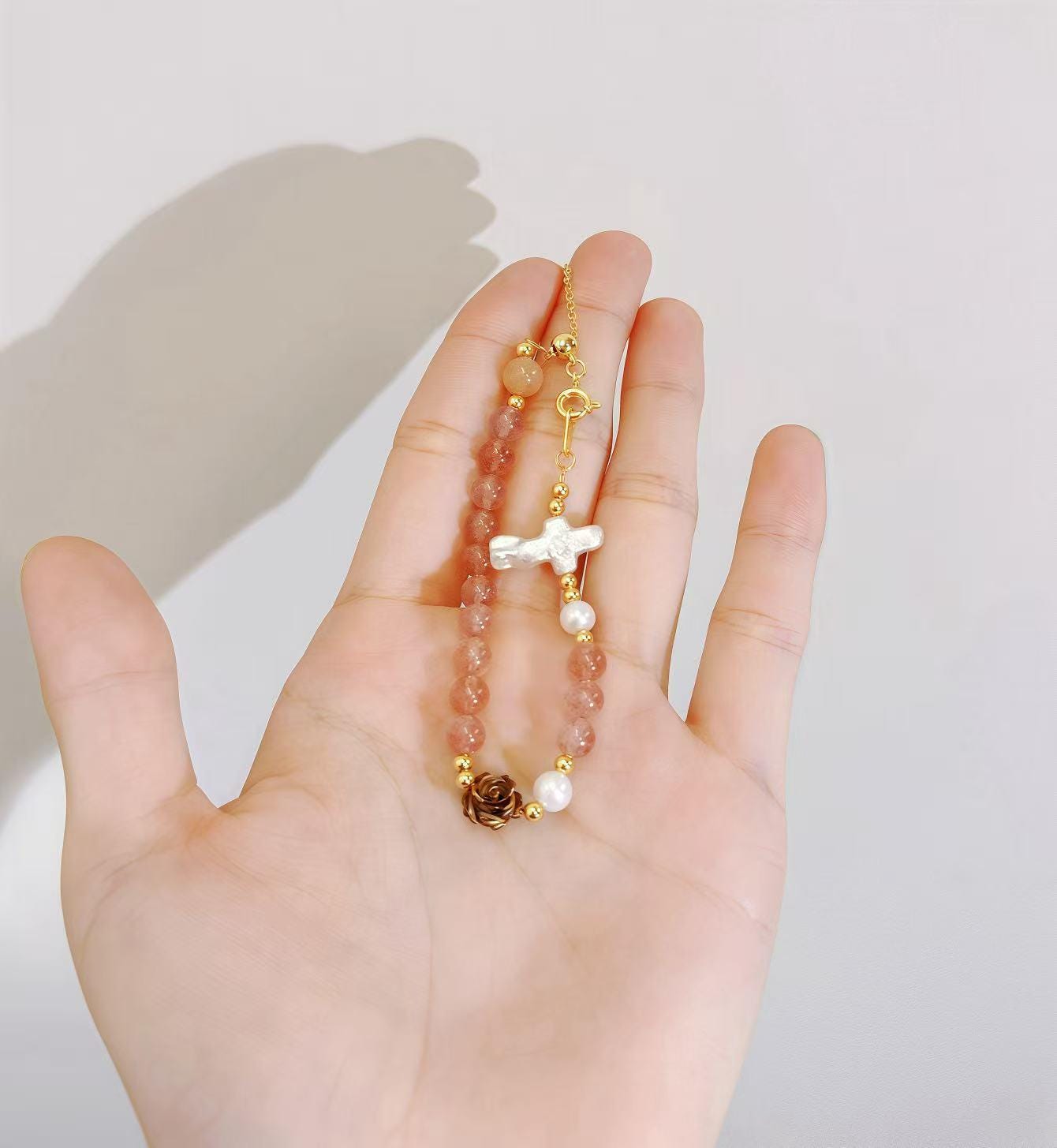 🍓The soft blush of strawberry quartz and the glow of pearls bring calm to your prayer — a quiet blessing you can wear every day.