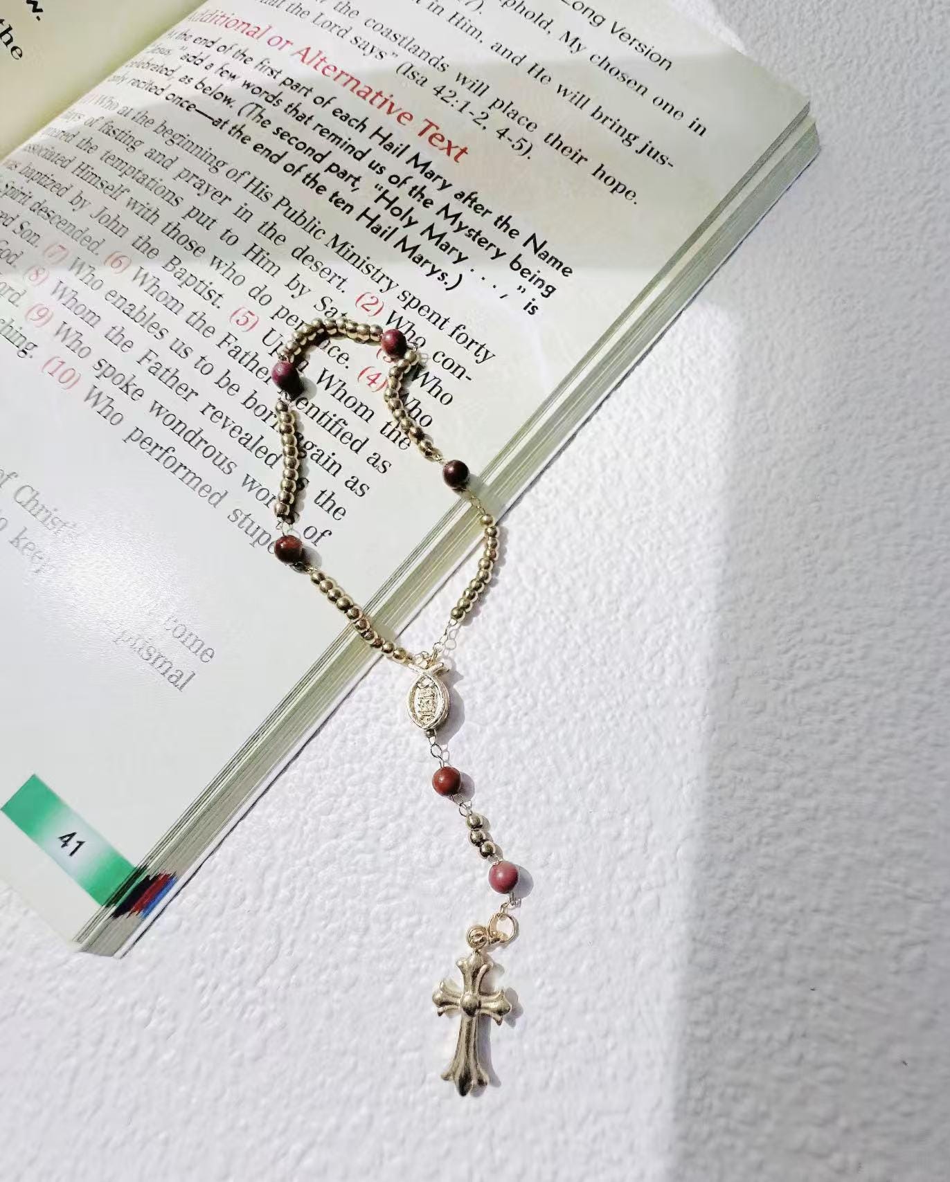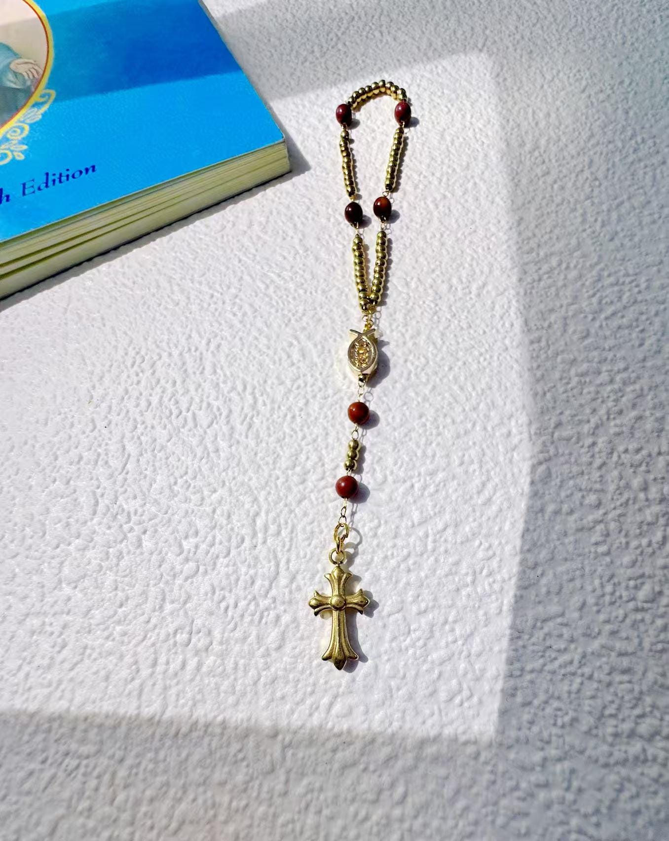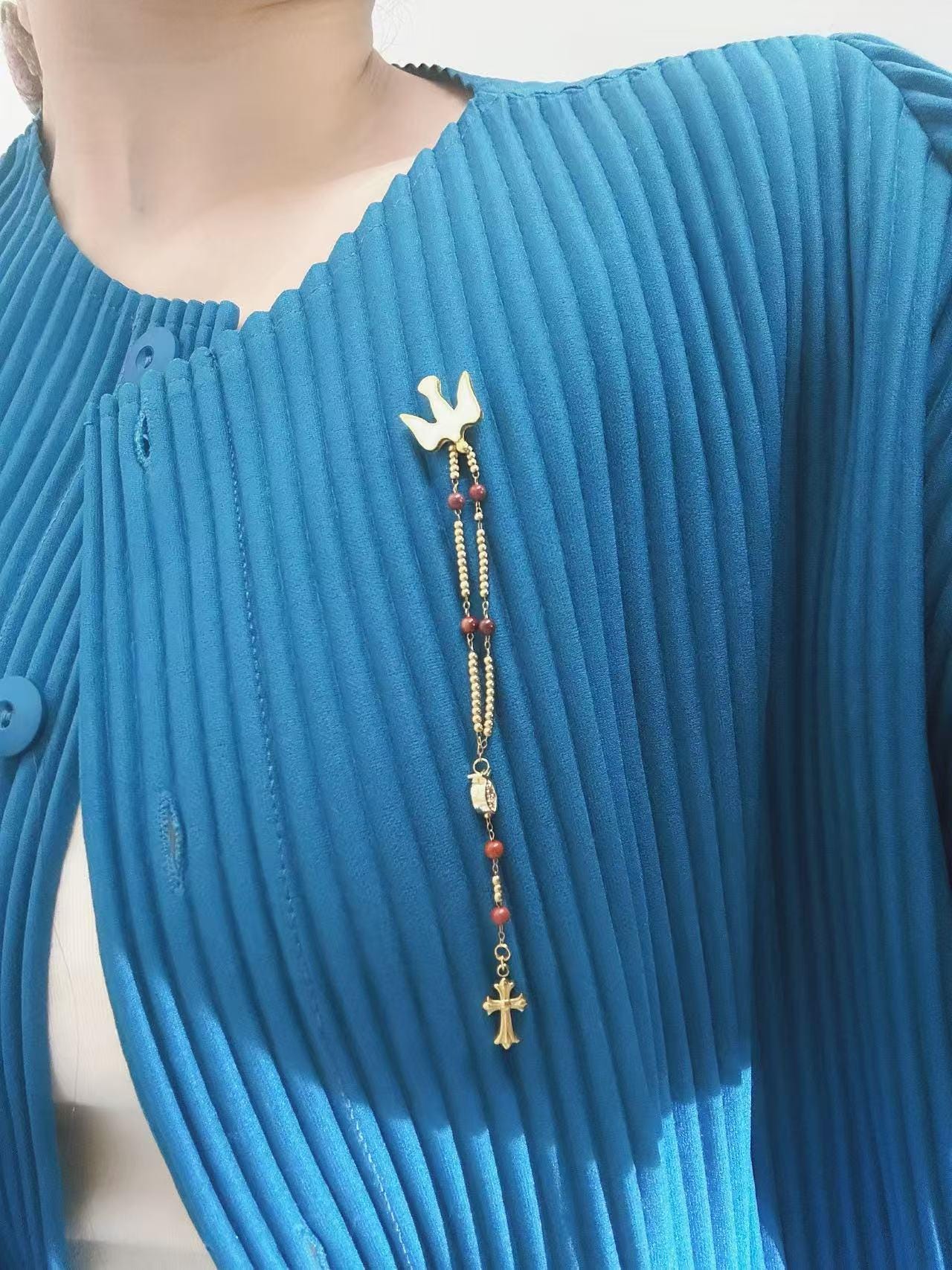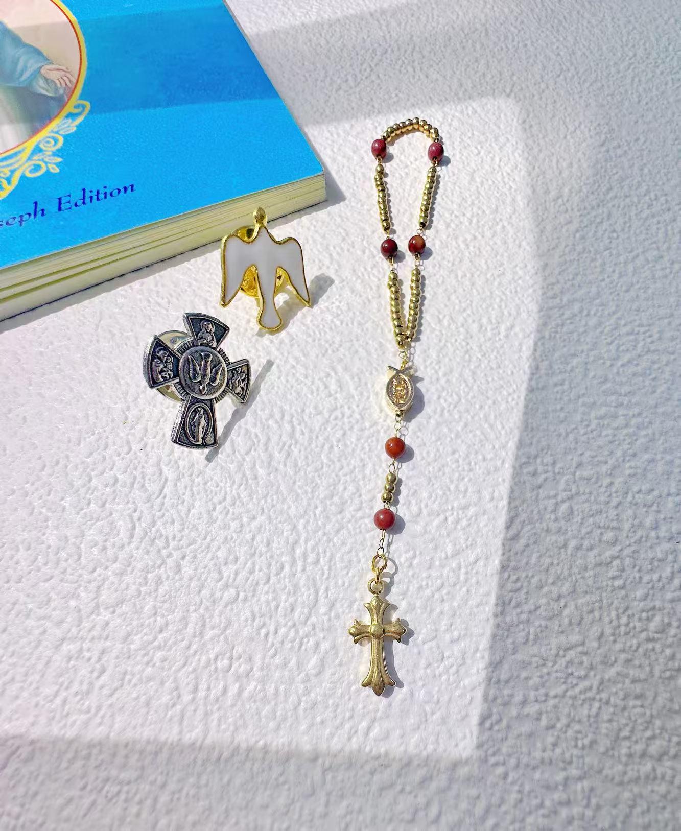 •Pin it to your jacket, scarf, or church outfit — or hang it from your car mirror as a mini car rosary charm.