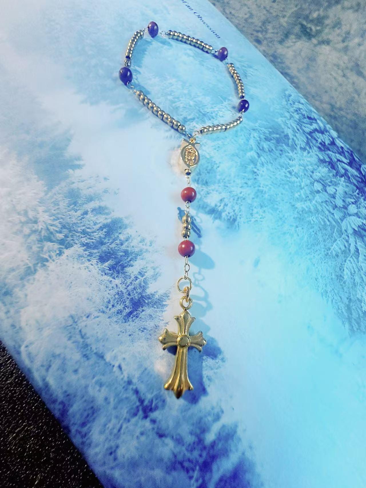 •This ultra-mini rosary is made with titanium-steel chain — it won’t snap unless you try really hard!