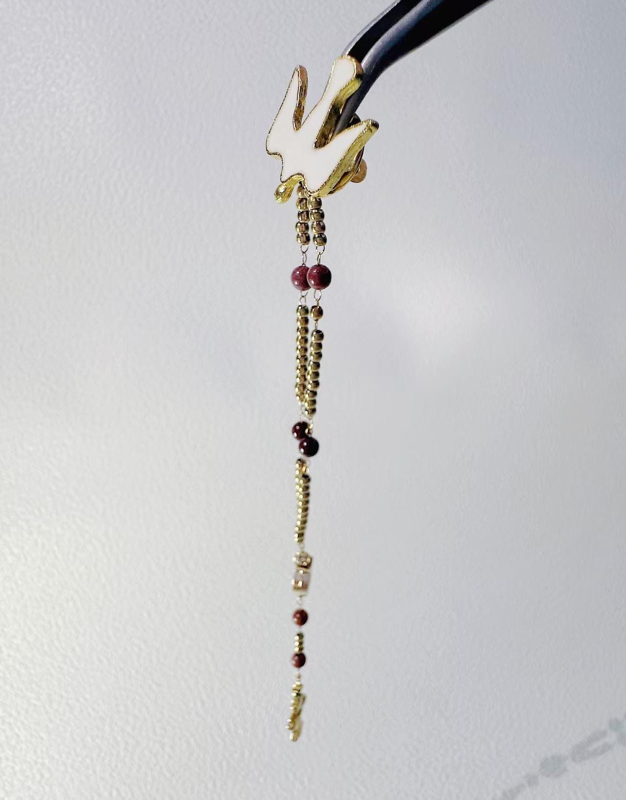 • Beads: Natural red stones (3.3–3.5 mm)