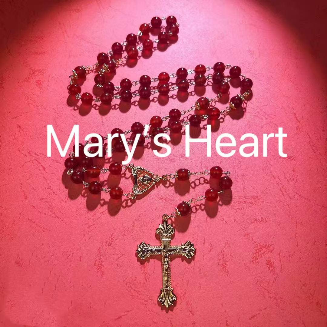 > A rosary that carries Mary’s quiet mercy and light.