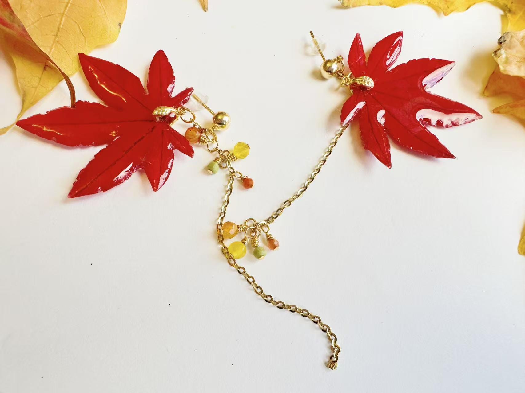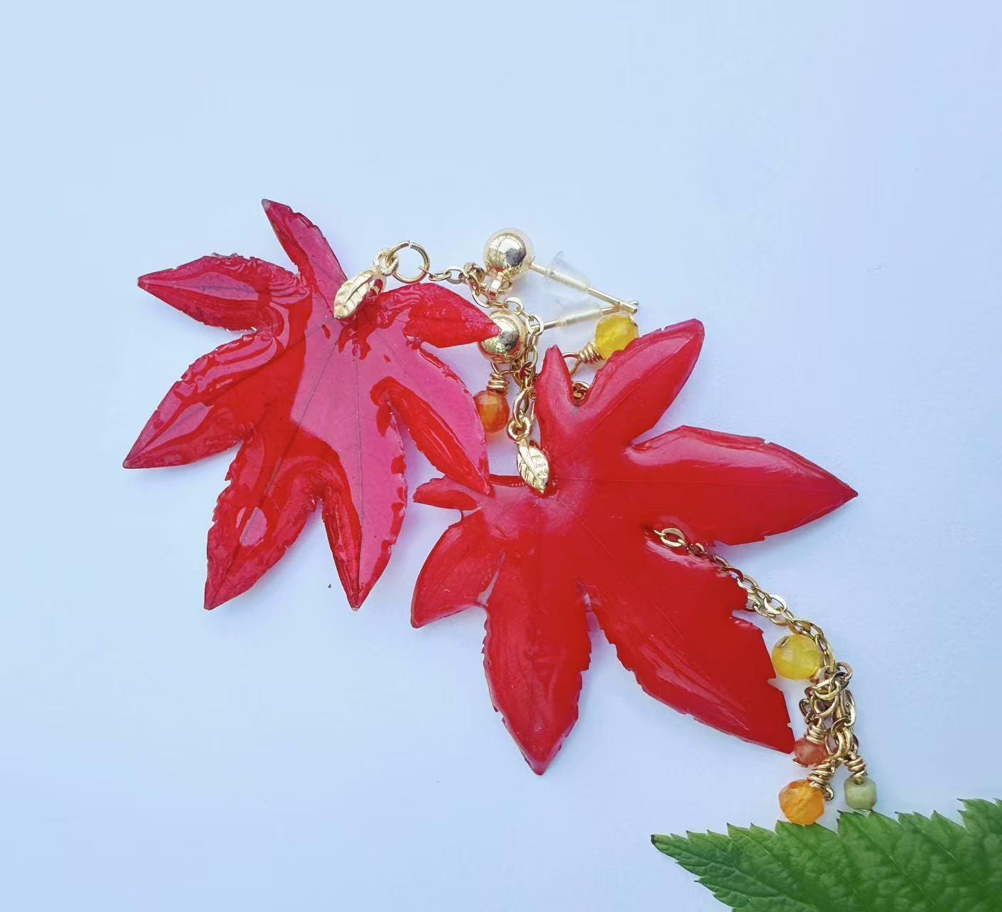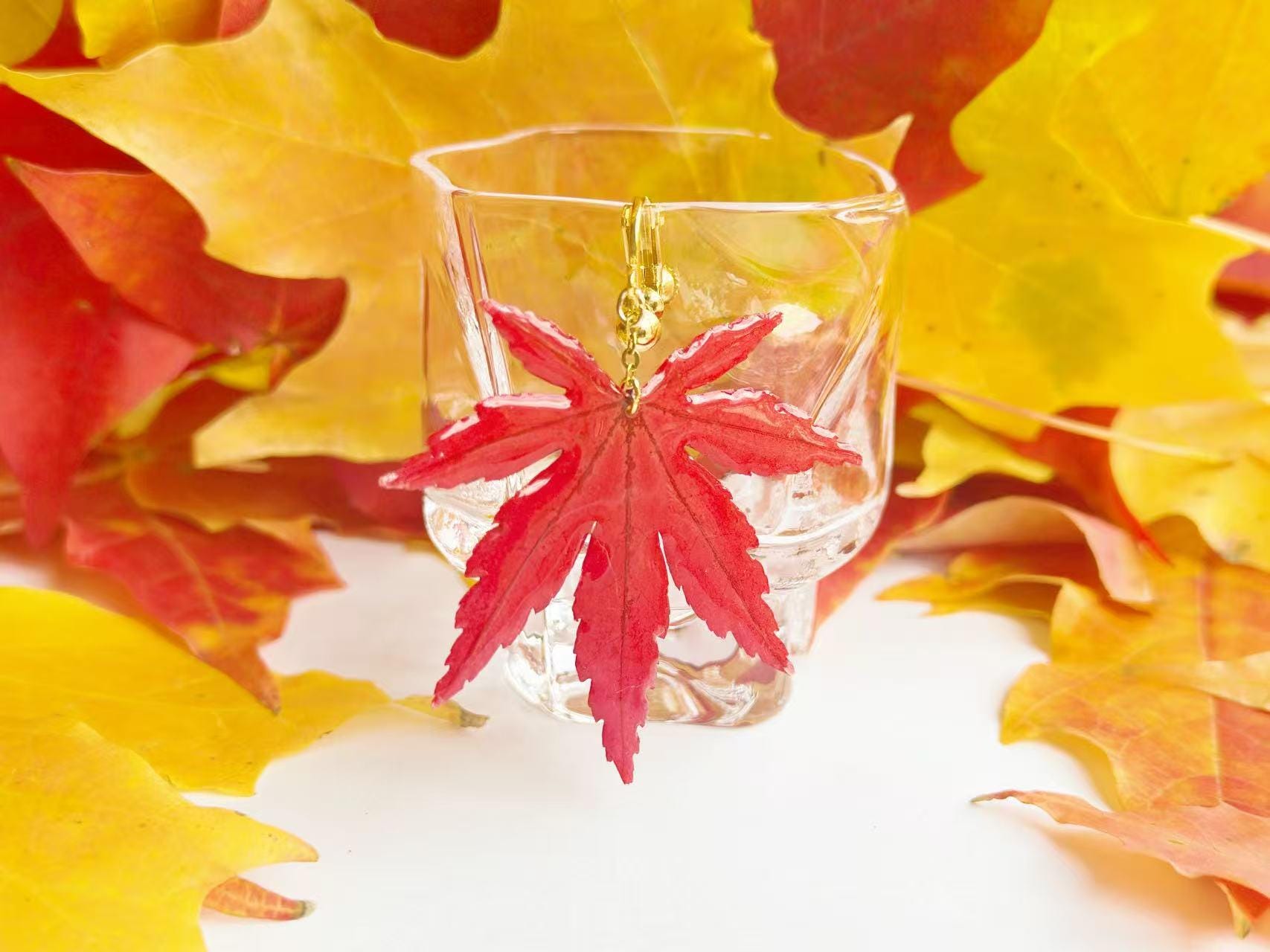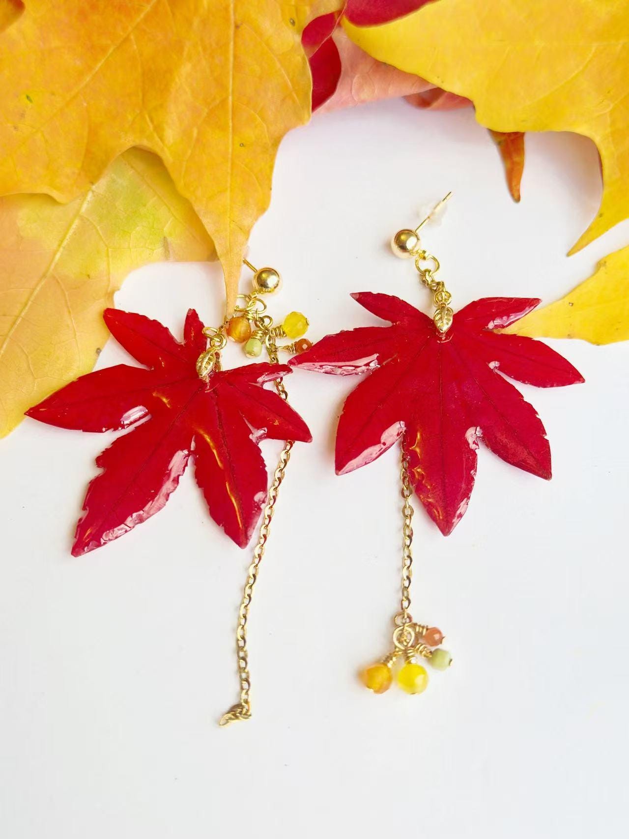 A celebration of color and texture – real maple leaves paired with multi-color agate beads. Each leaf is resin-sealed and durable, yet preserves the organic veins of nature. A thoughtful holiday gift from Canada for nature lovers, signed “Made in Canada”.