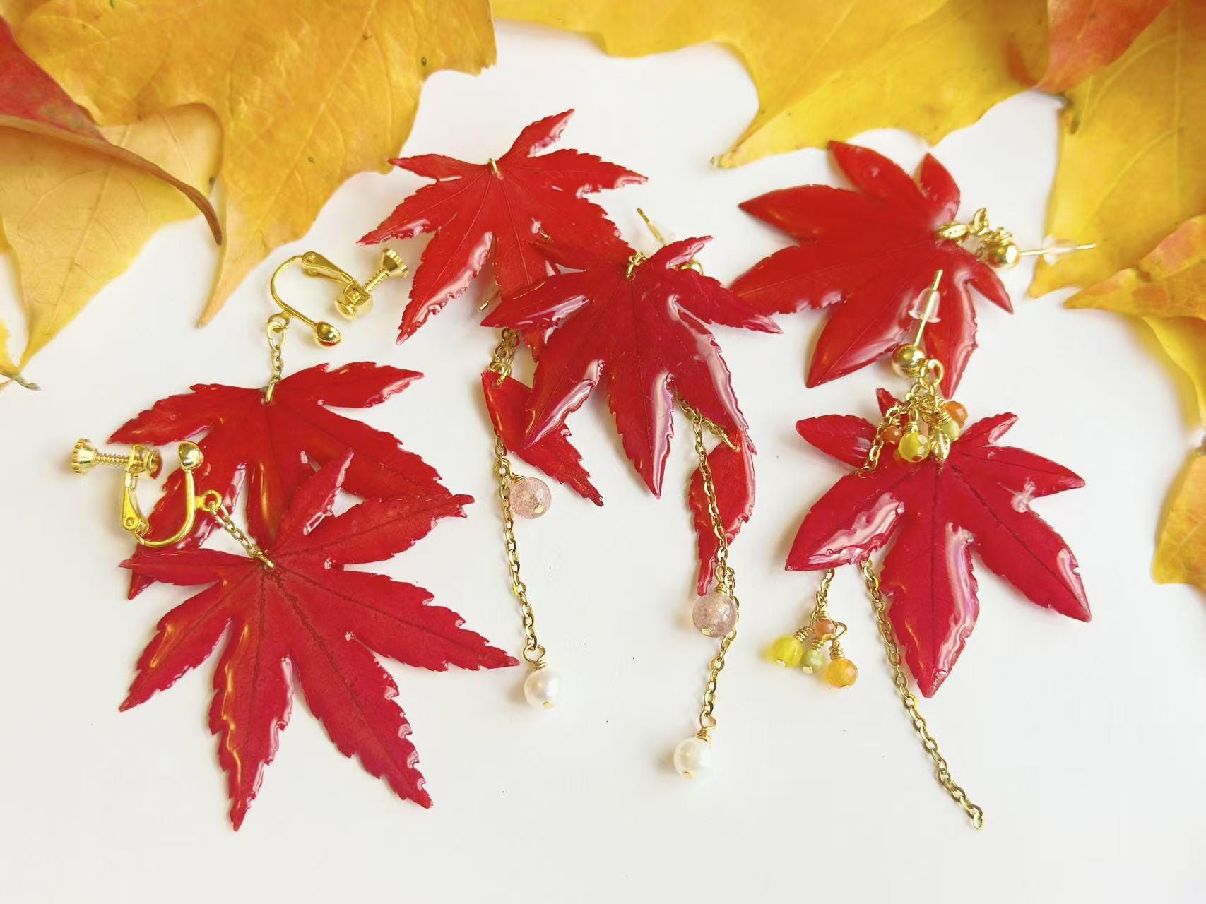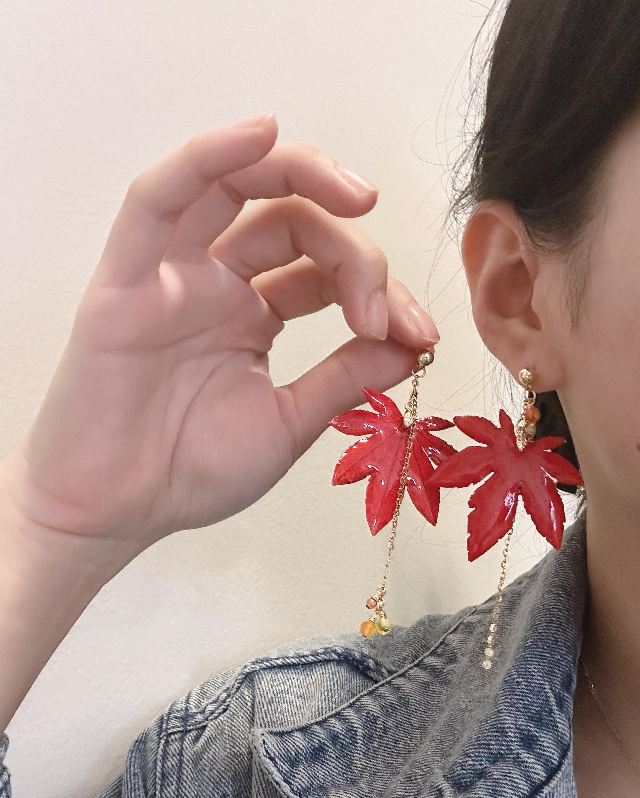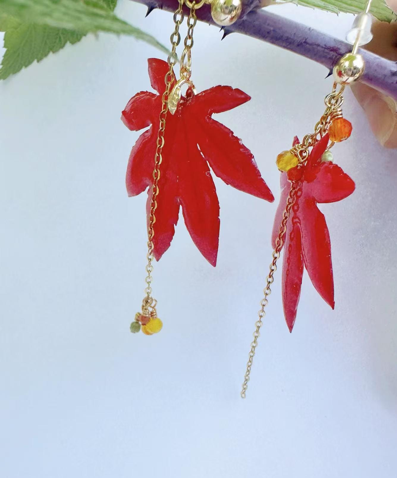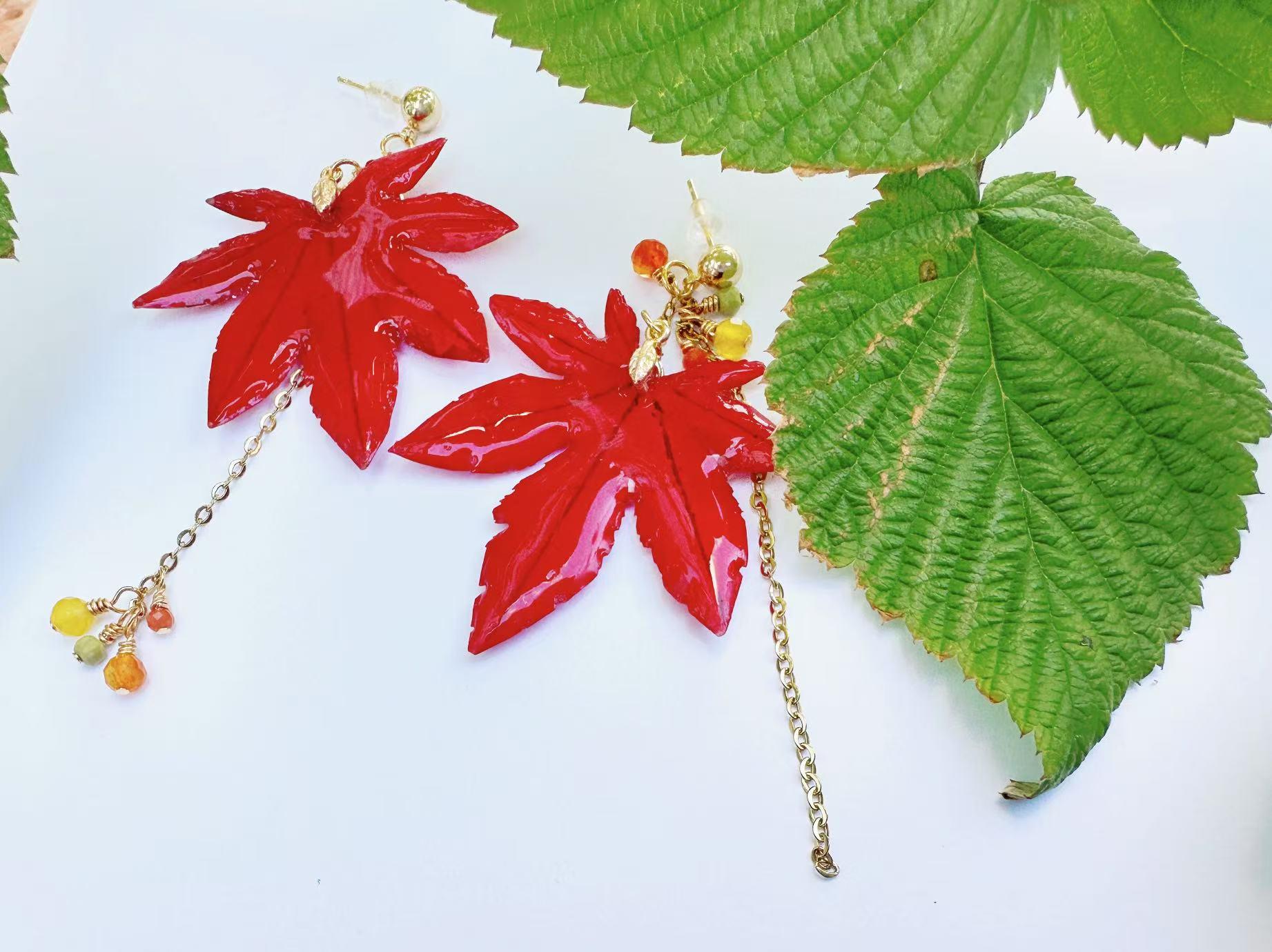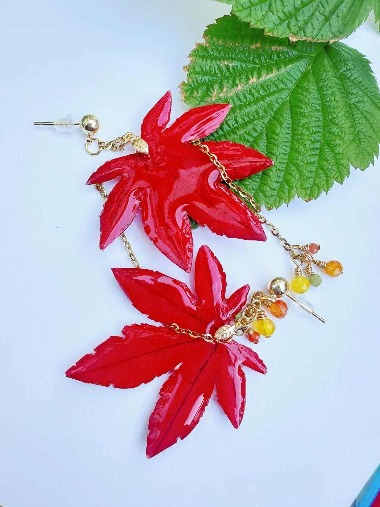 A celebration of color and texture – real maple leaves paired with multi-color agate beads. Each leaf is resin-sealed and durable, yet preserves the organic veins of nature. A thoughtful holiday gift from Canada for nature lovers, signed “Made in Canada”.