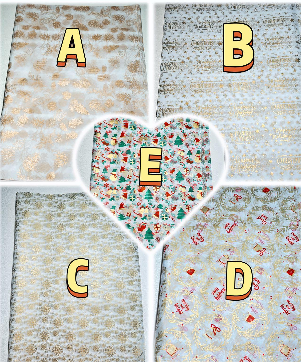 Free Christmas tissue (5 patterns) and complimentary wax seals — Praying Hands, Sacred Heart, Christmas Blessings, or Reindeer — in red, gold, or blue.