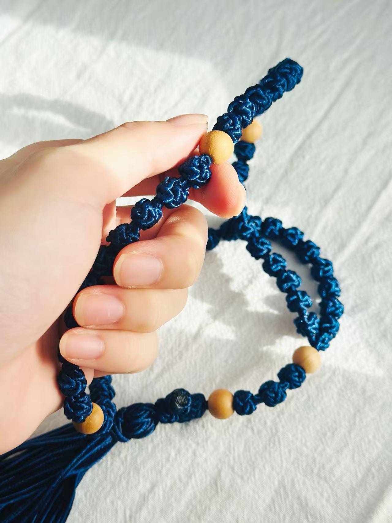 Each knot represents a prayer, each bead a moment of grace.