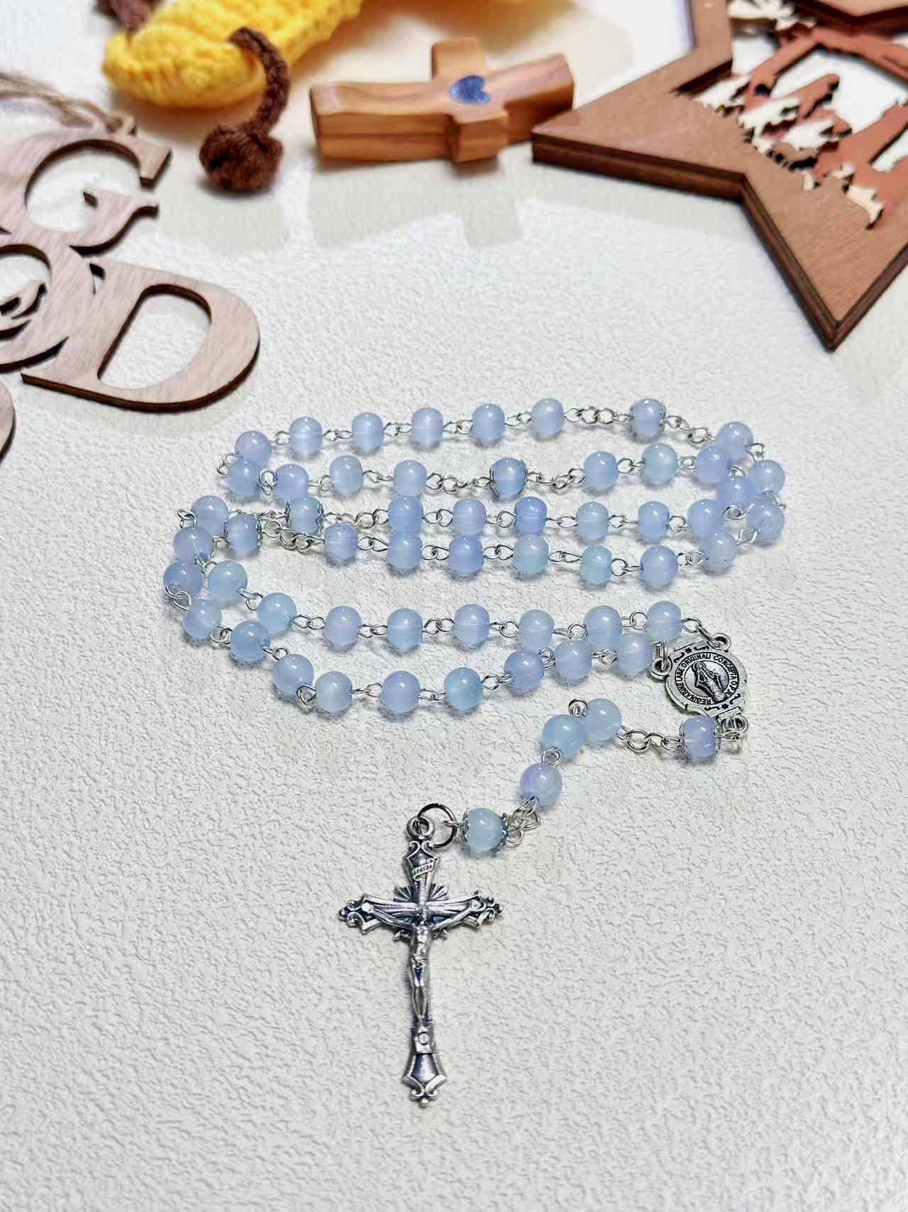 • Natural agate • 8 mm beads • 62 cm length • Crucifix 4×6.5 cm • ~51 g