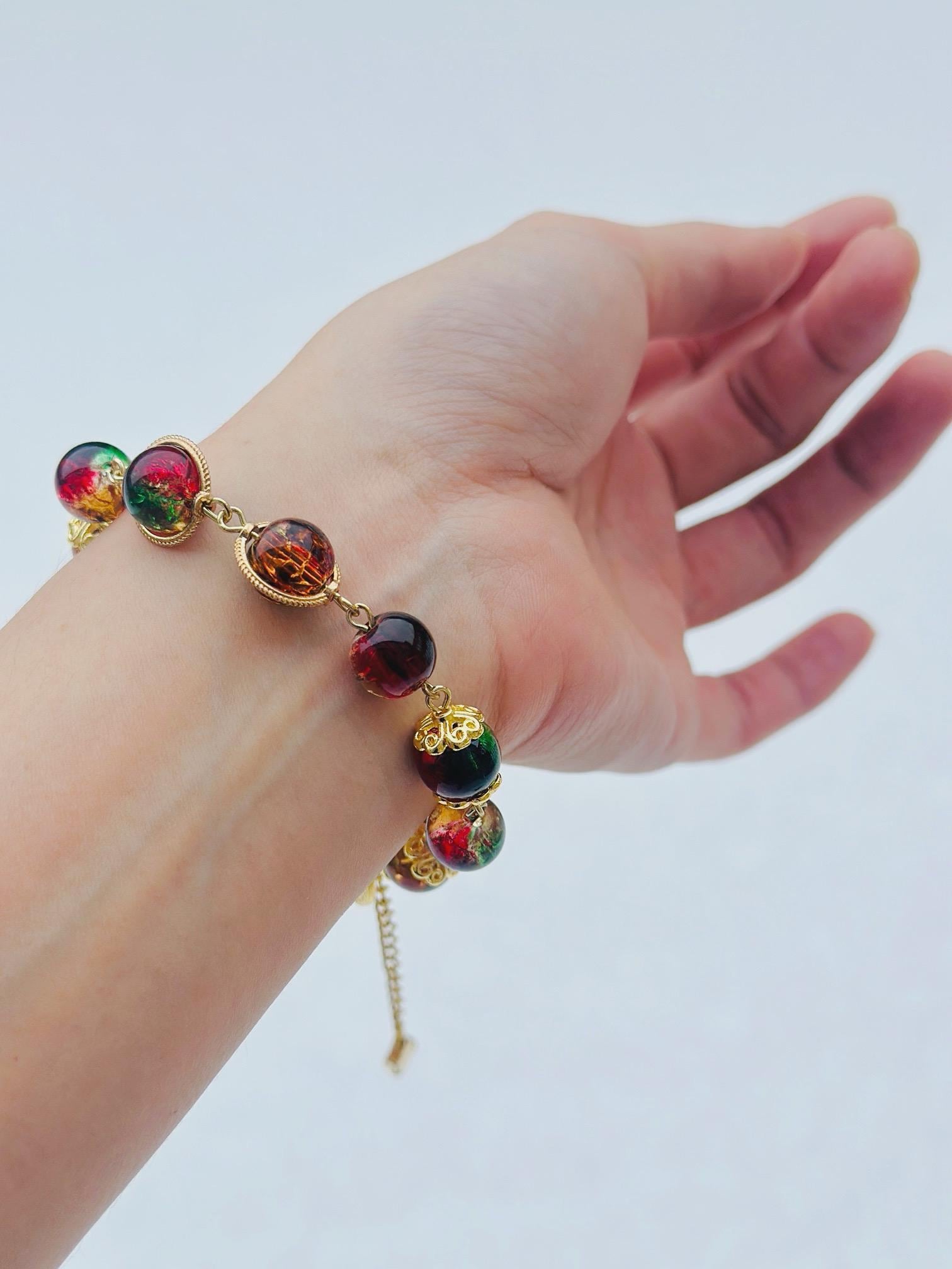 • Floral glass beads 10 mm • Adjustable bracelet 17+4 cm • ~54 g