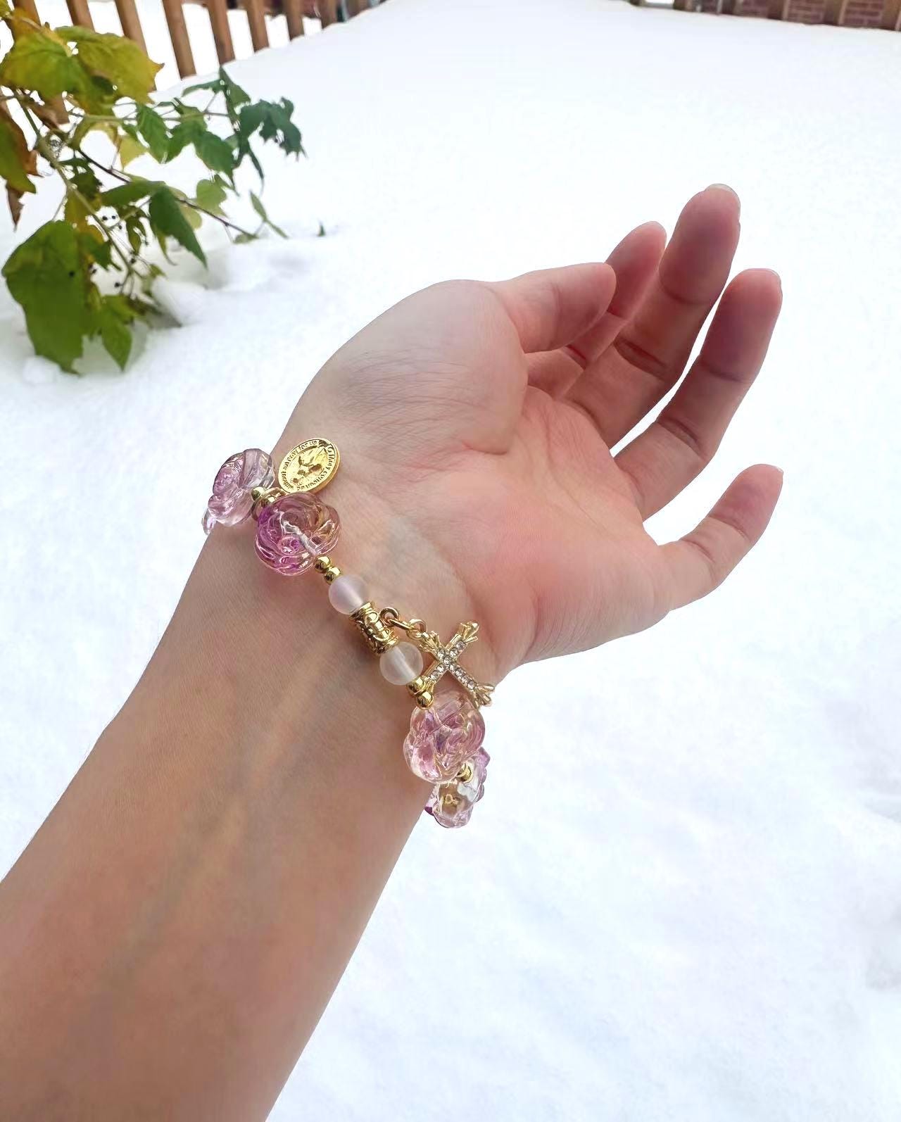 • 13.8 mm rose beads + CZ stones • Adjustable bracelet • ~18 g
