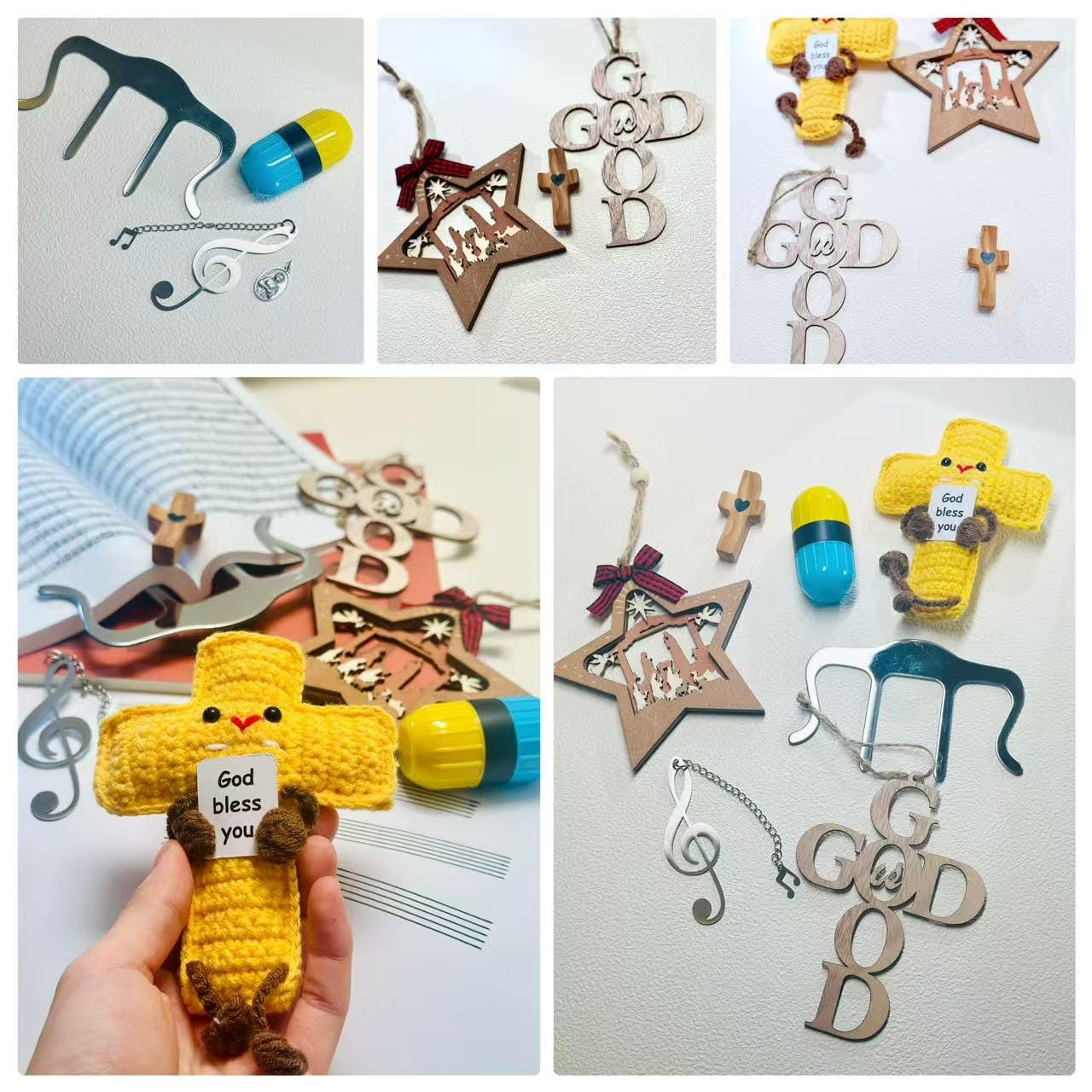 1)Yellow crochet cross----12 × 9 × 2.5 cm, 17.5 g
