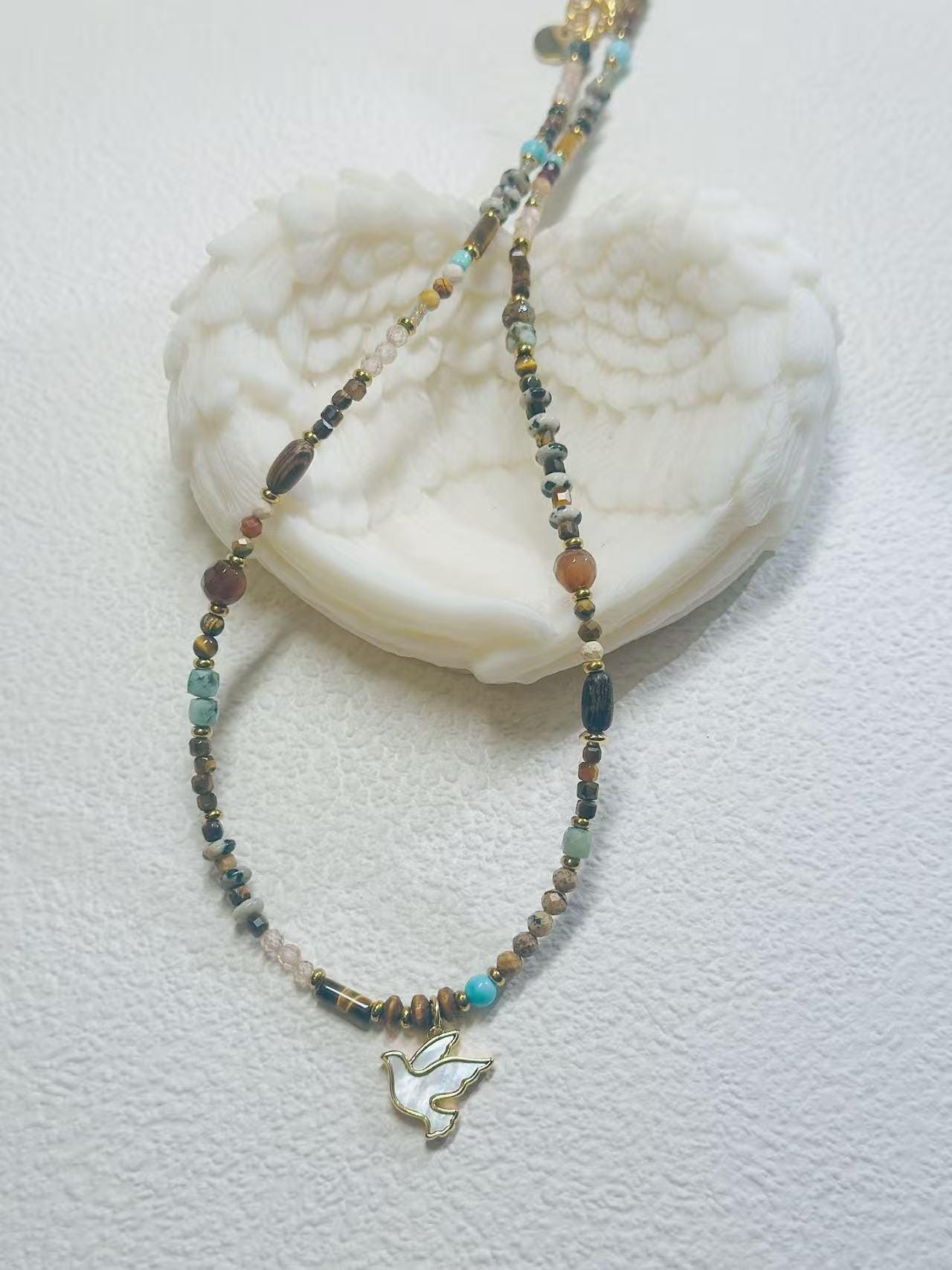 • Silver-plated necklace with natural agate + glass crystal + faux pearl (39+5 cm, 7.5 g)