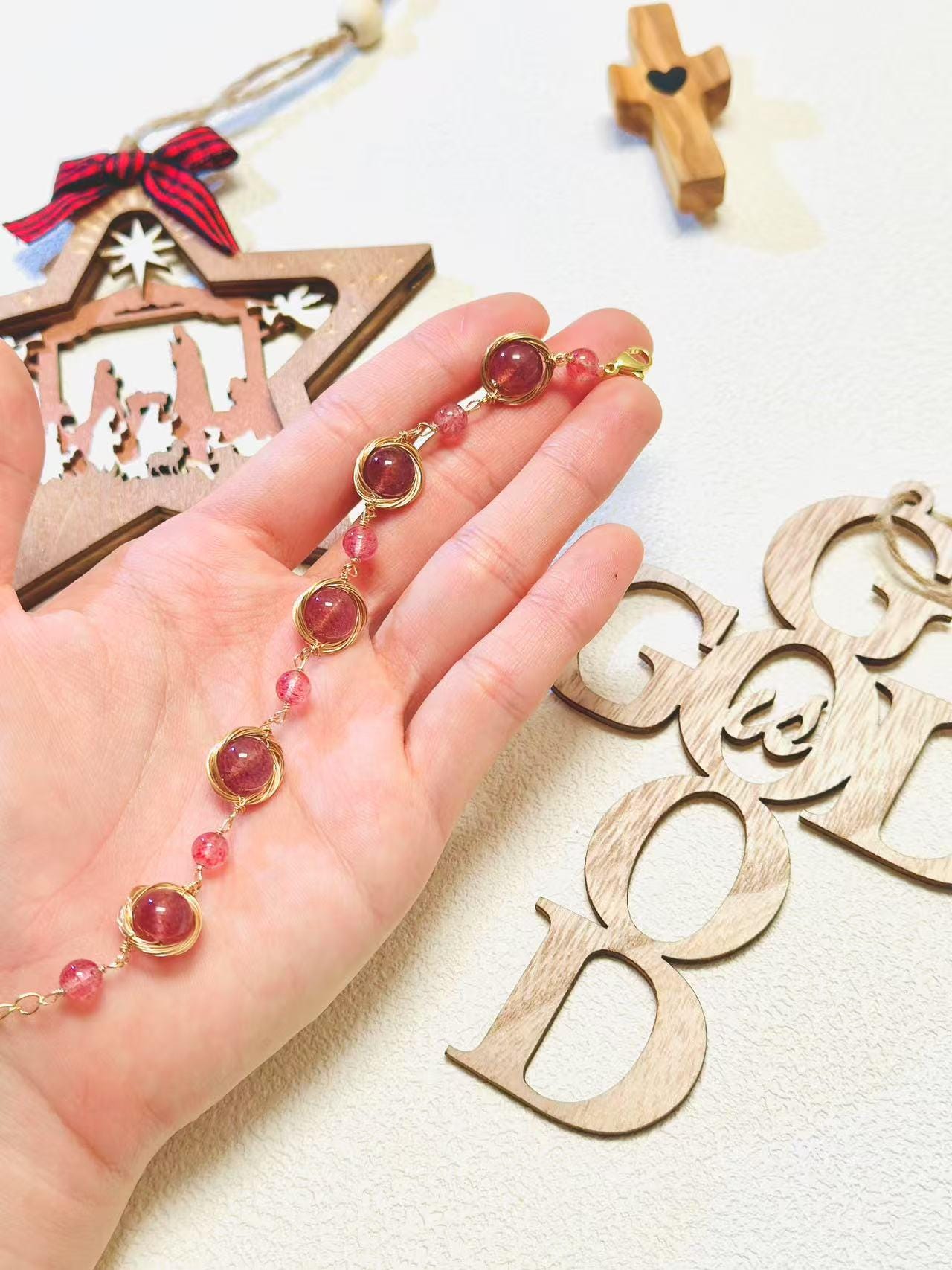 • Strawberry quartz 8.5 mm + 6 mm, adjustable 12–20 cm(9 g)