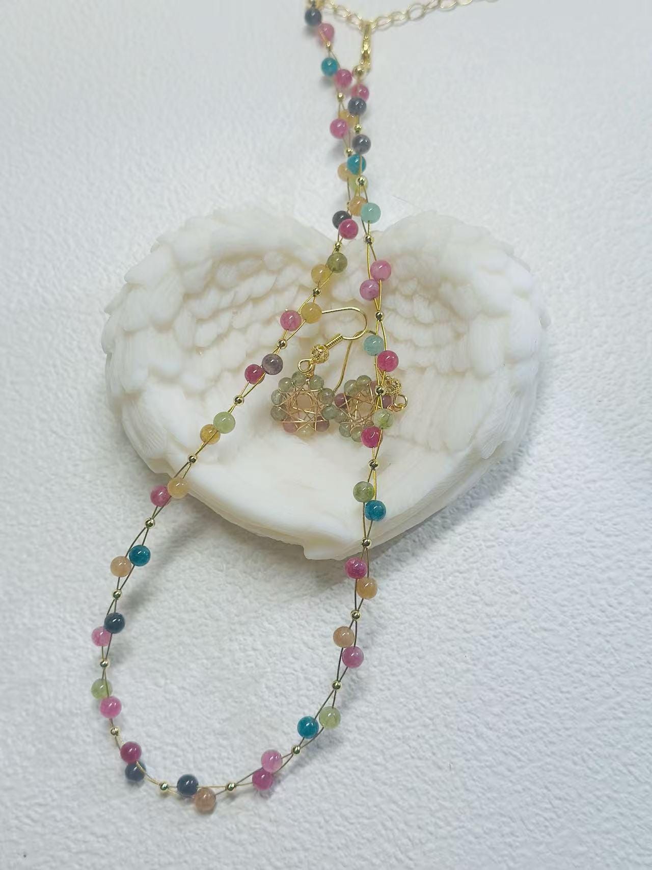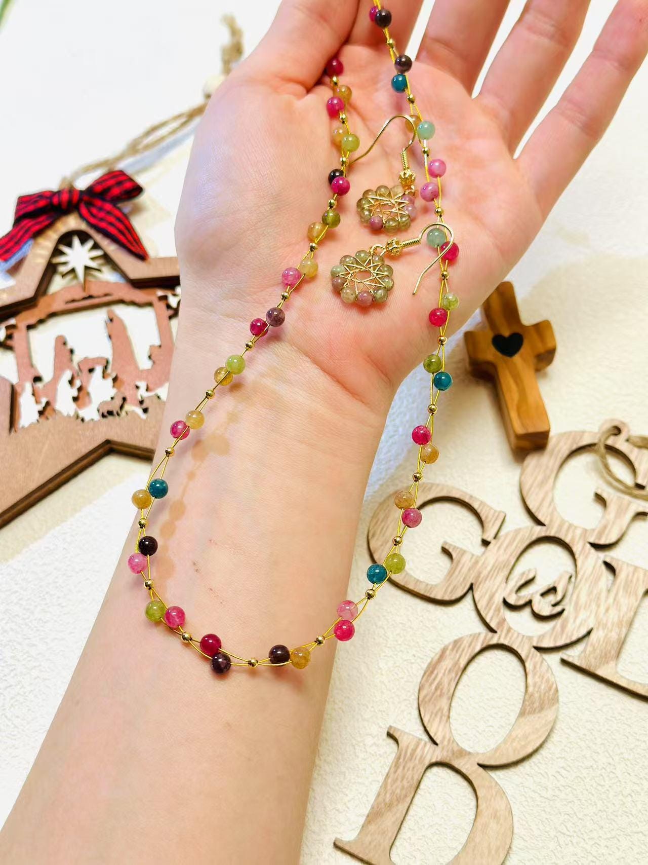 • Tourmaline wreath earrings(Ø 15 mm, bead 3.5 mm, 2.5 g)
