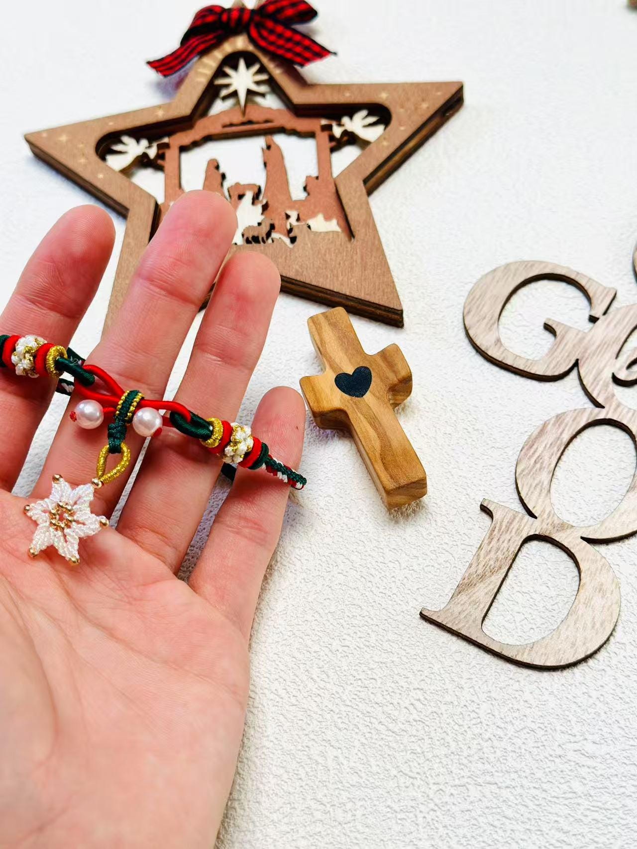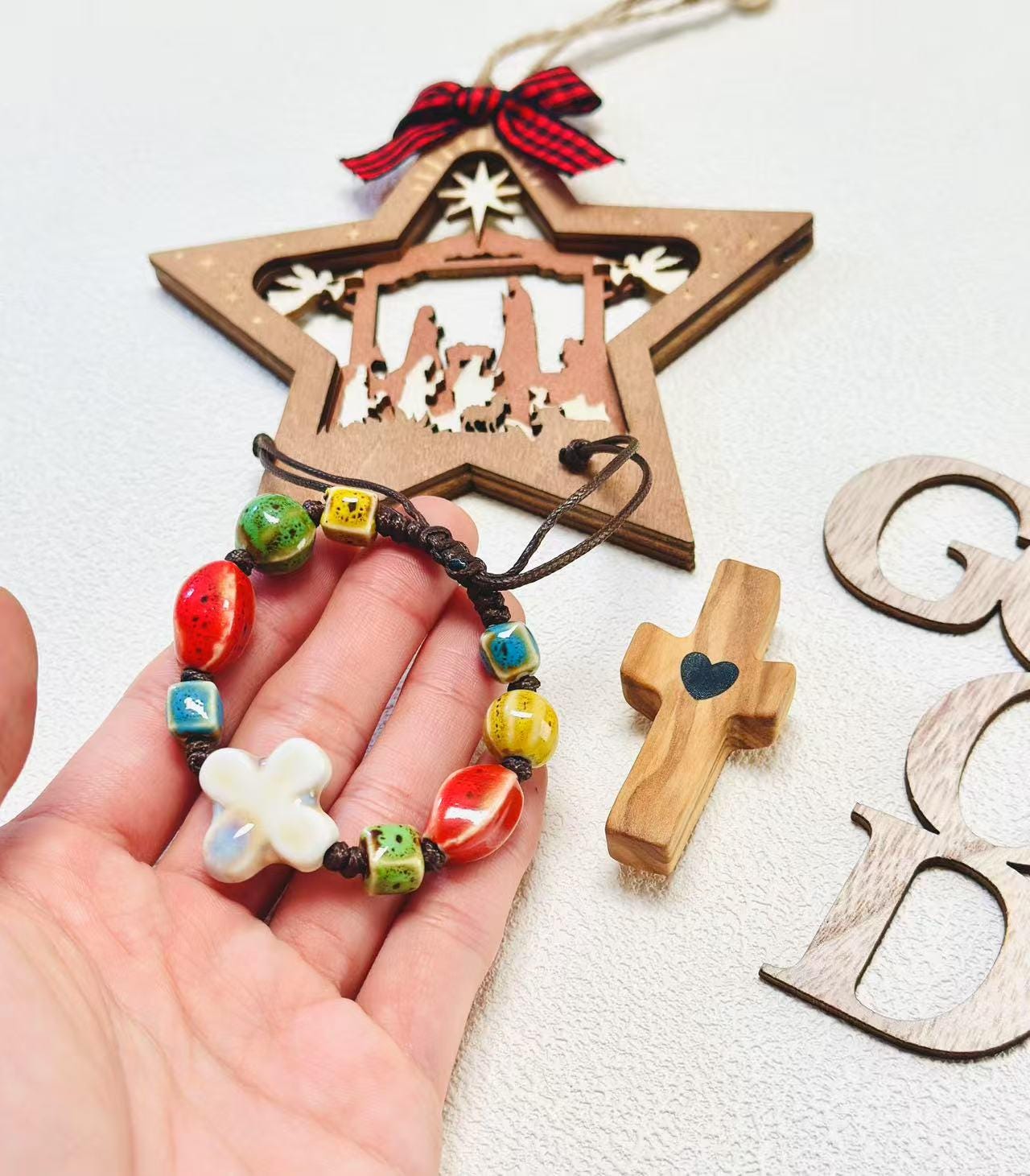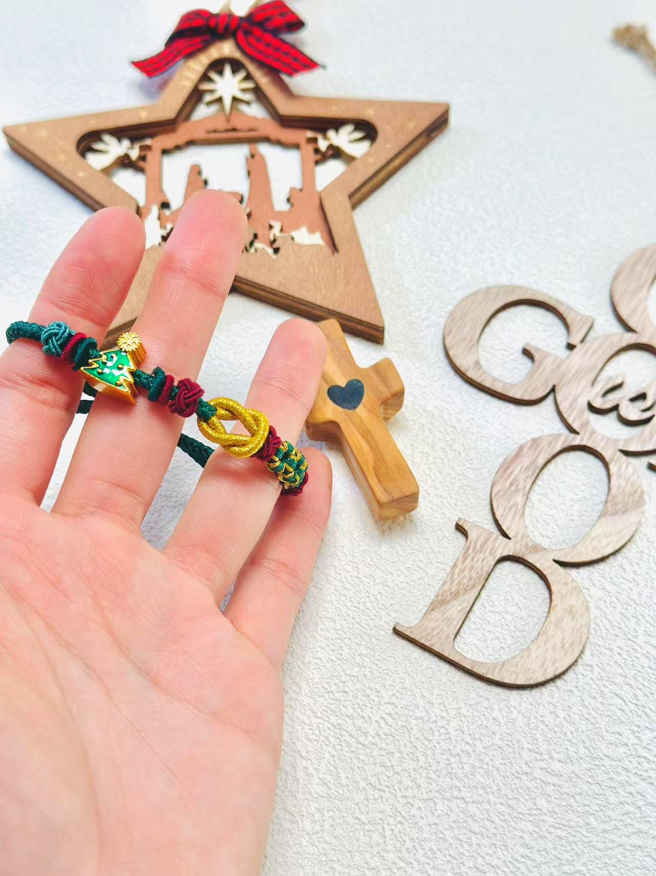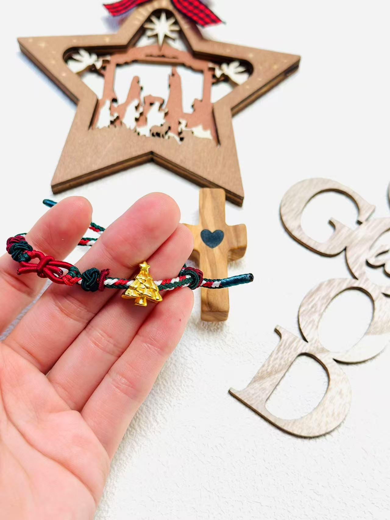 Christian Christmas Bracelet or Key Chain Gift Box • Handmade Woven Cord & Religious Ornaments
