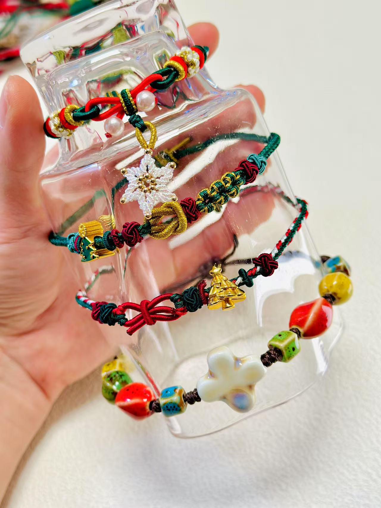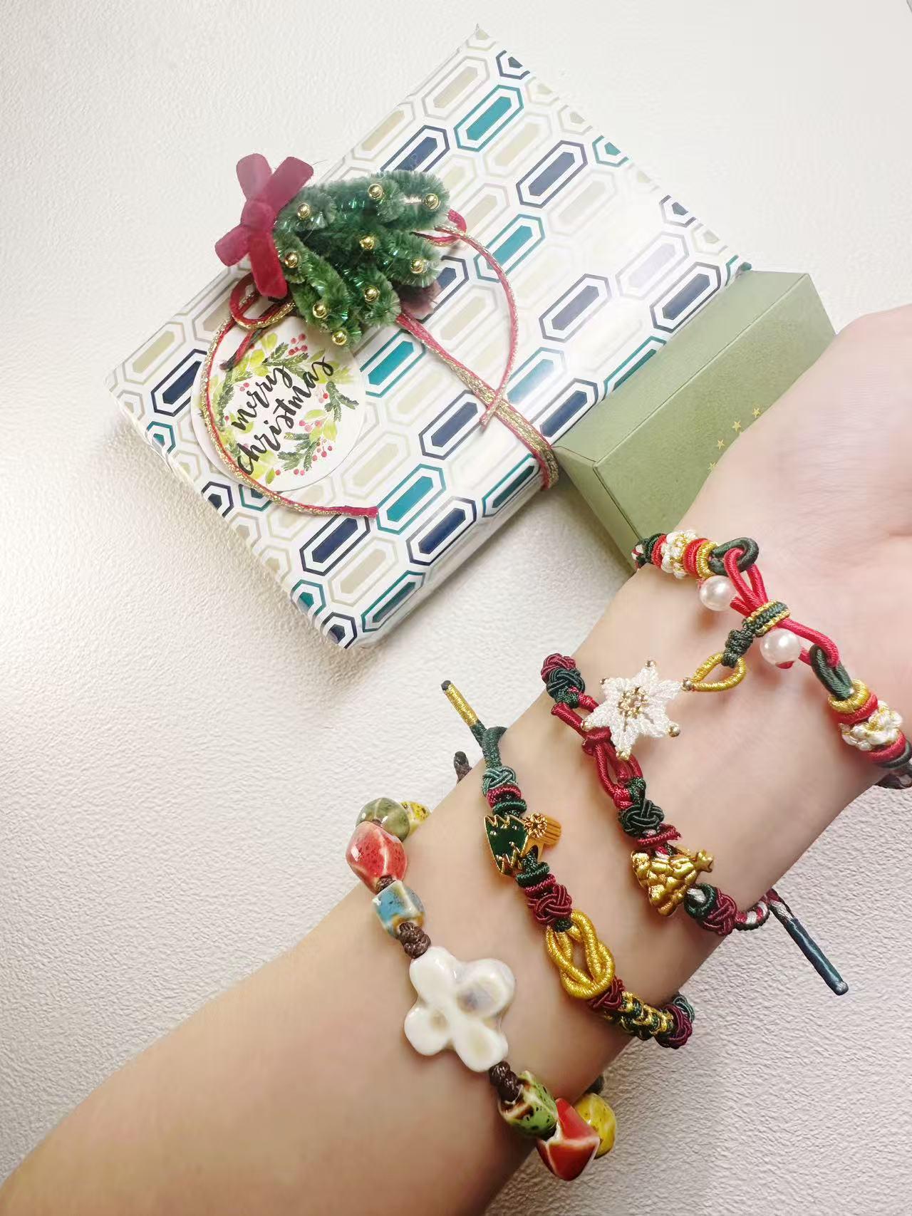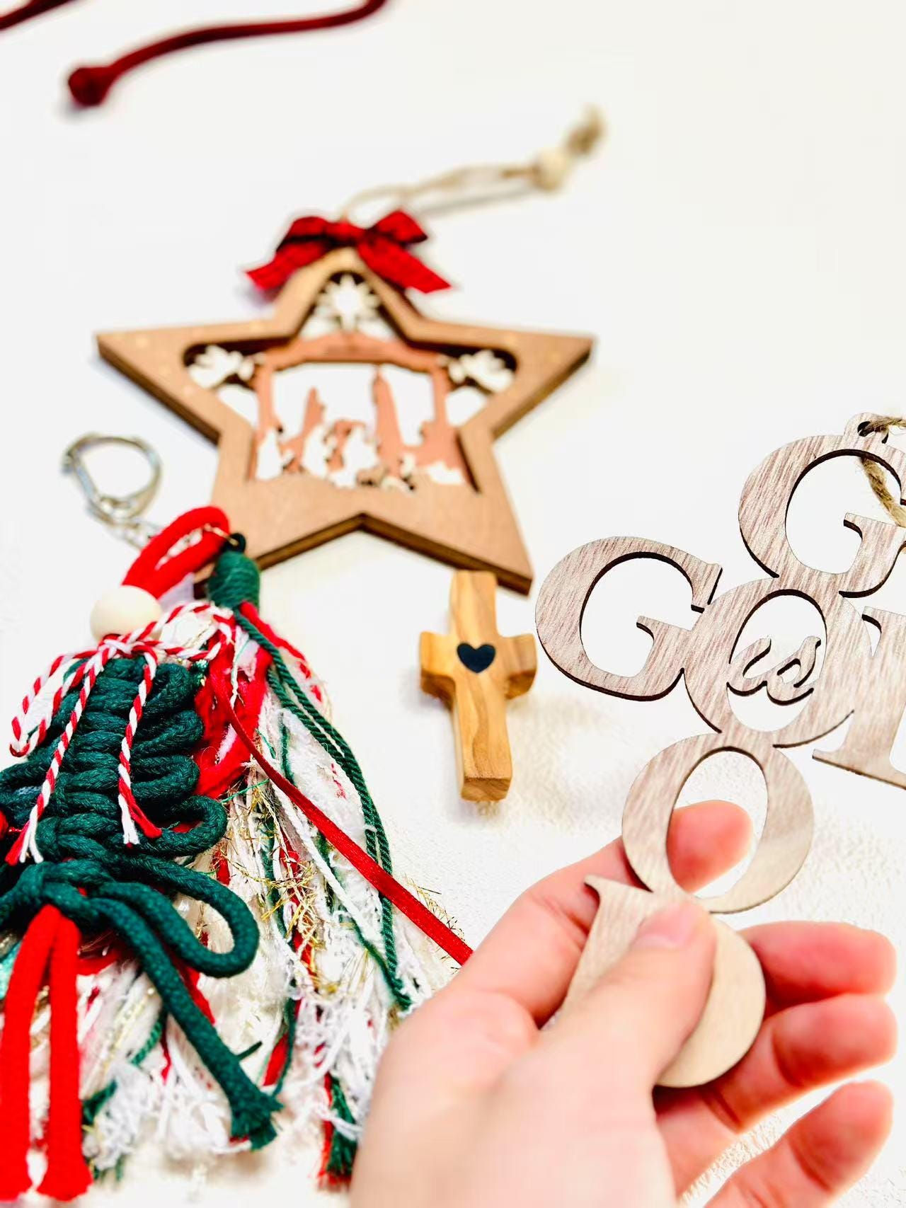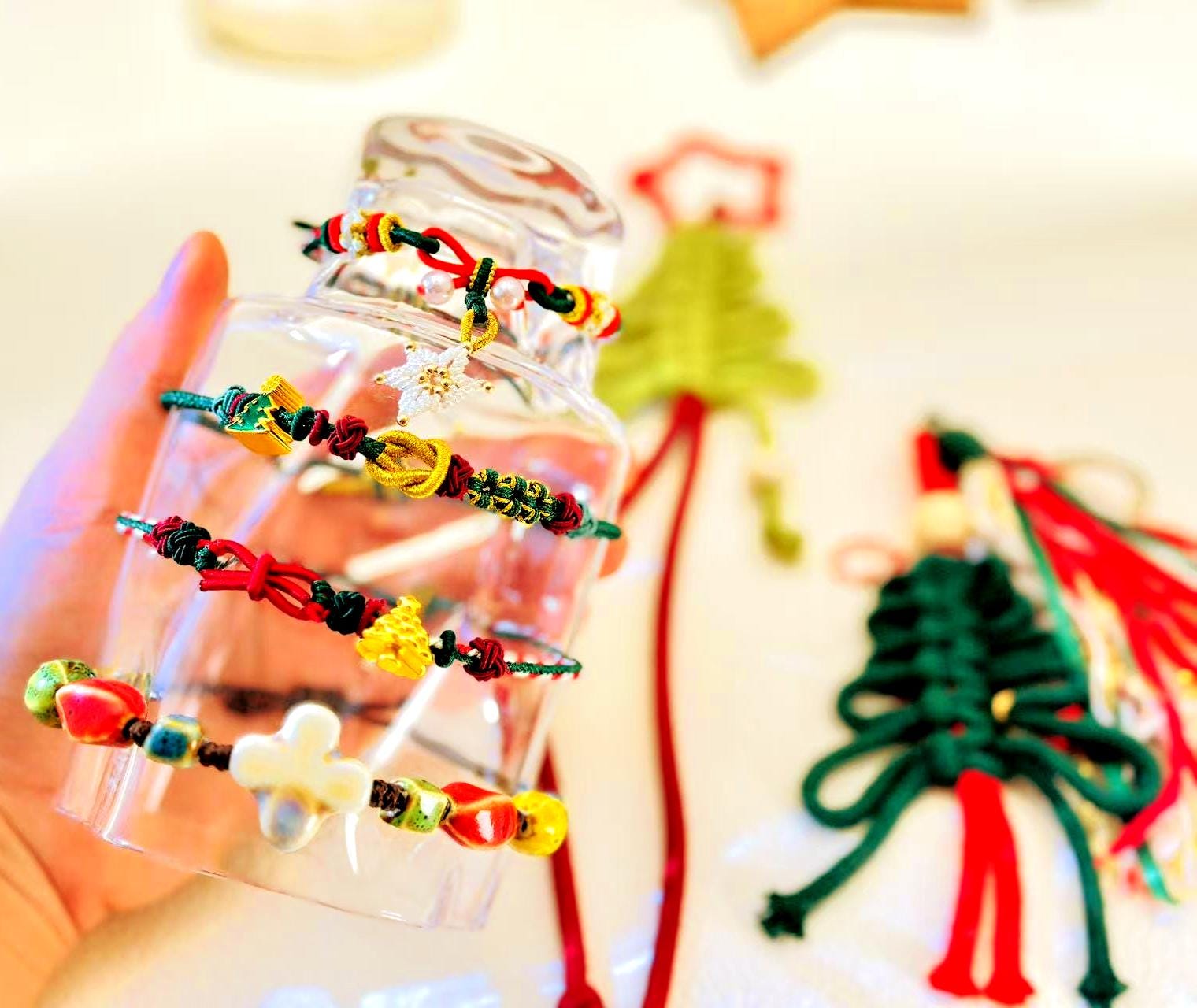 Christian Christmas Bracelet or Key Chain Gift Box • Handmade Woven Cord & Religious Ornaments