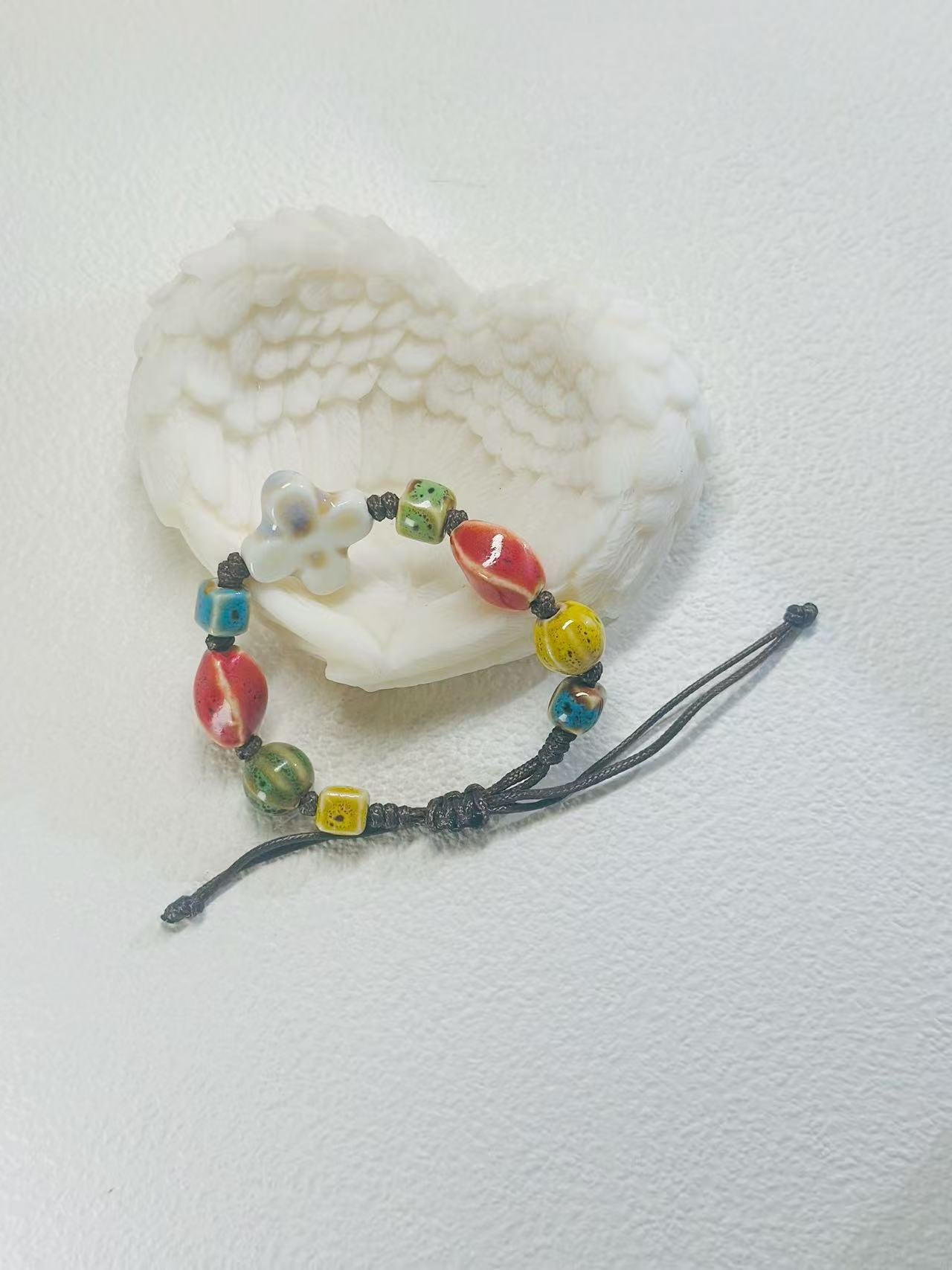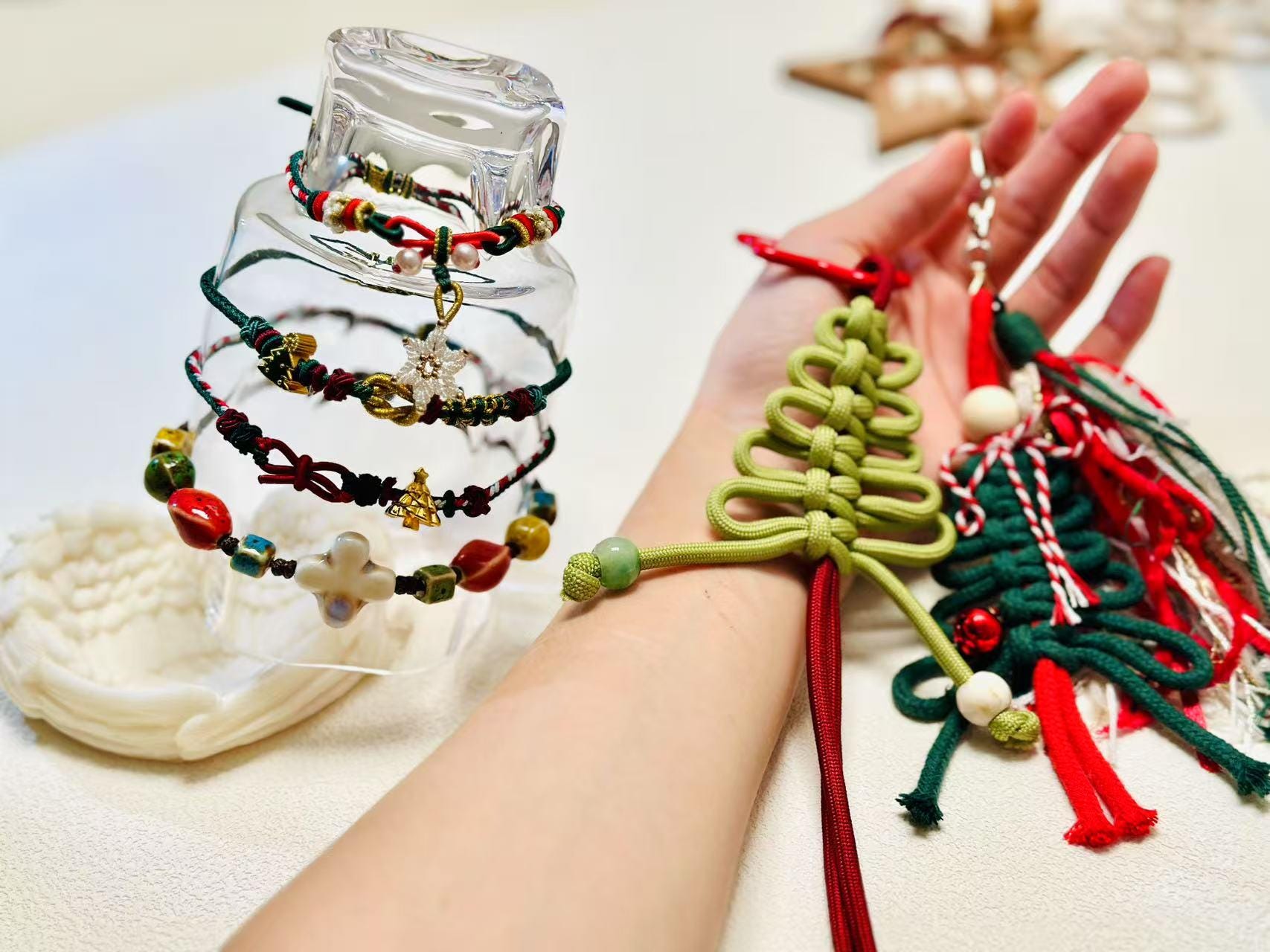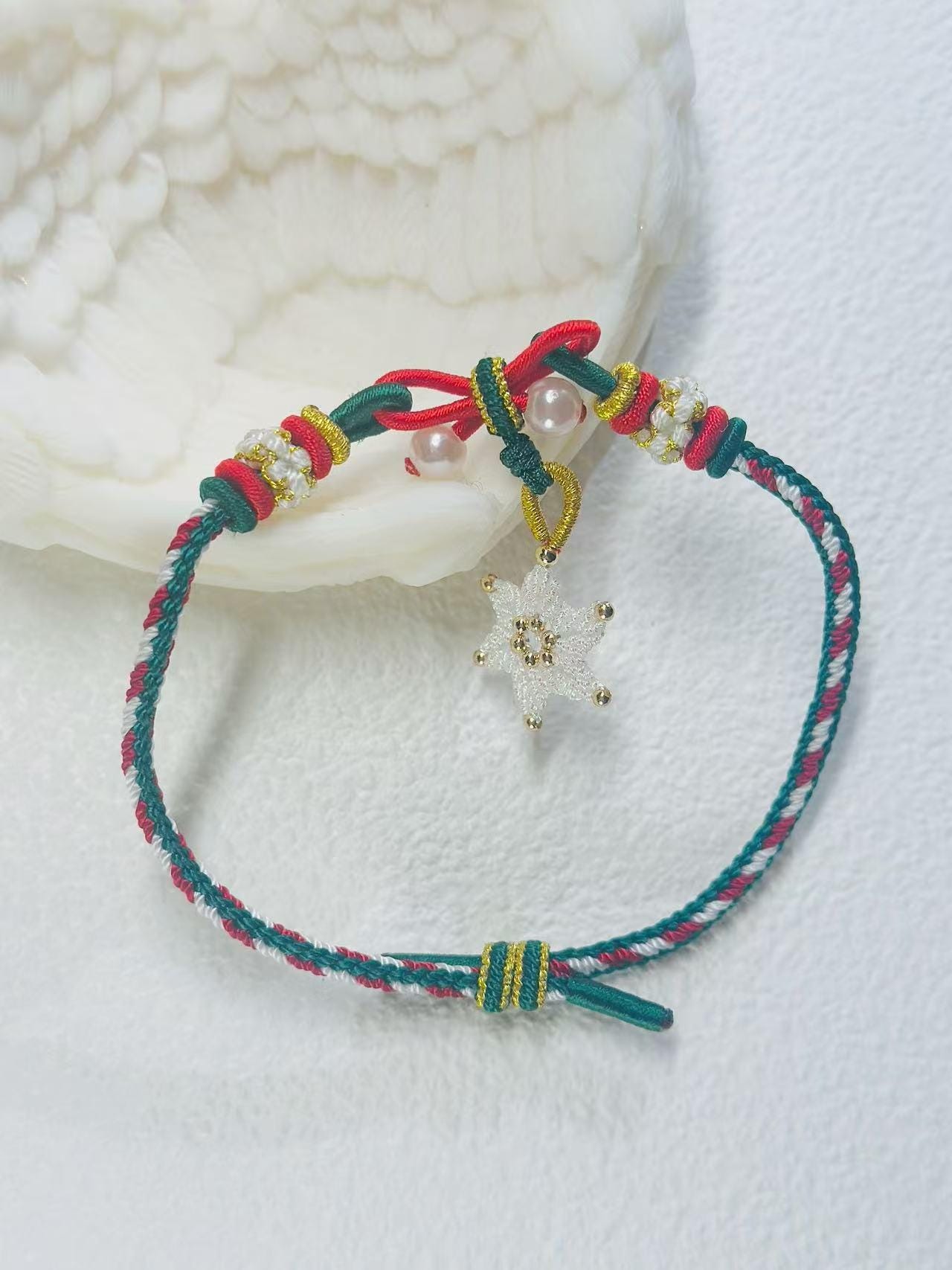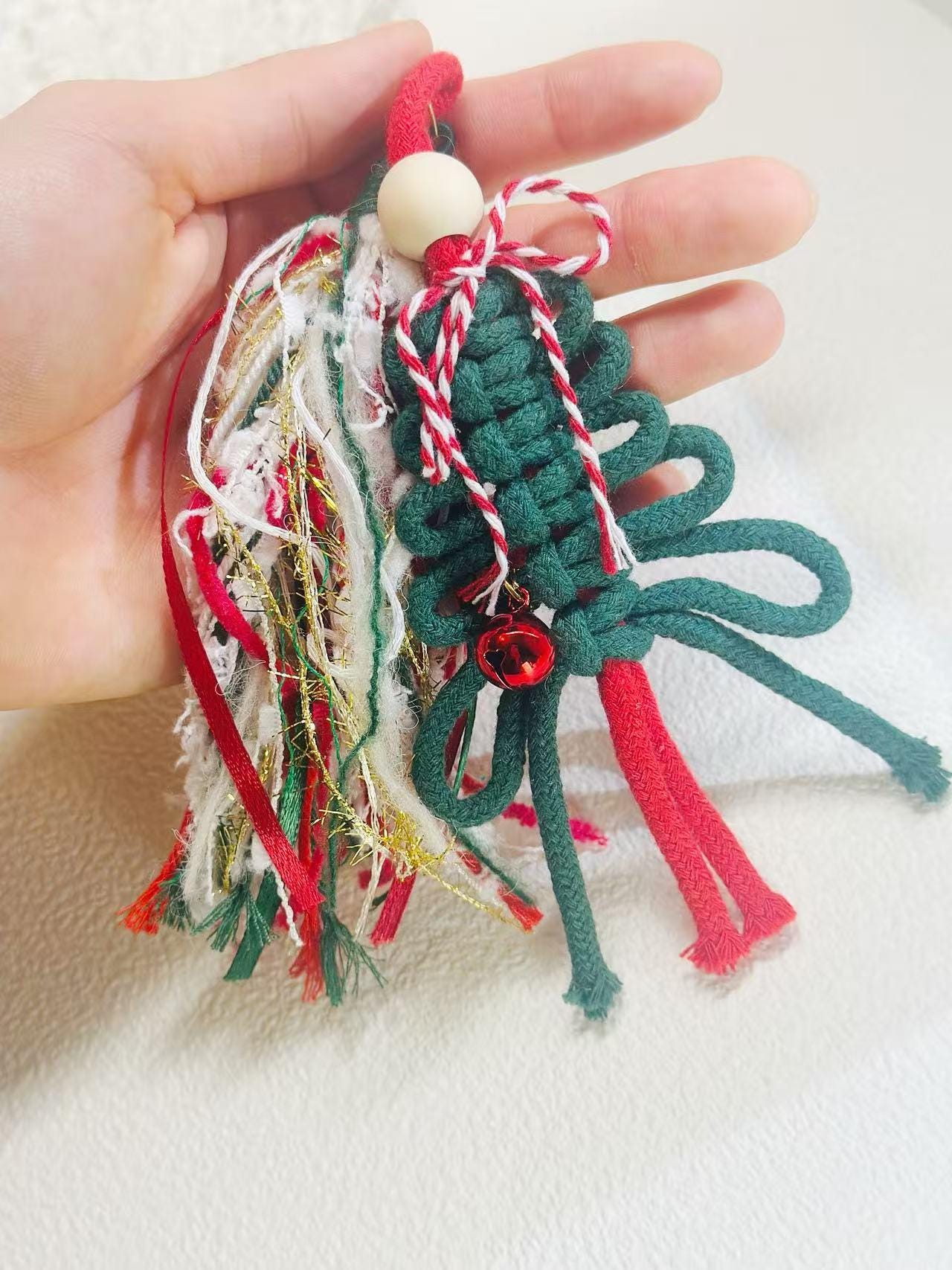 Christian Christmas Bracelet or Key Chain Gift Box • Handmade Woven Cord & Religious Ornaments