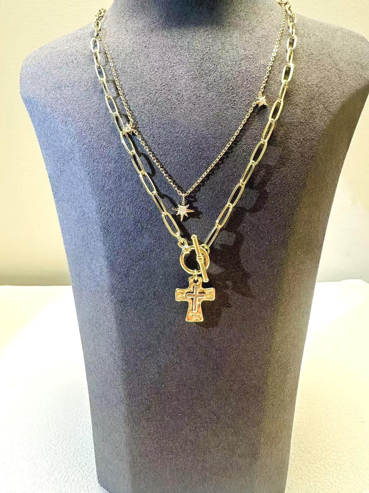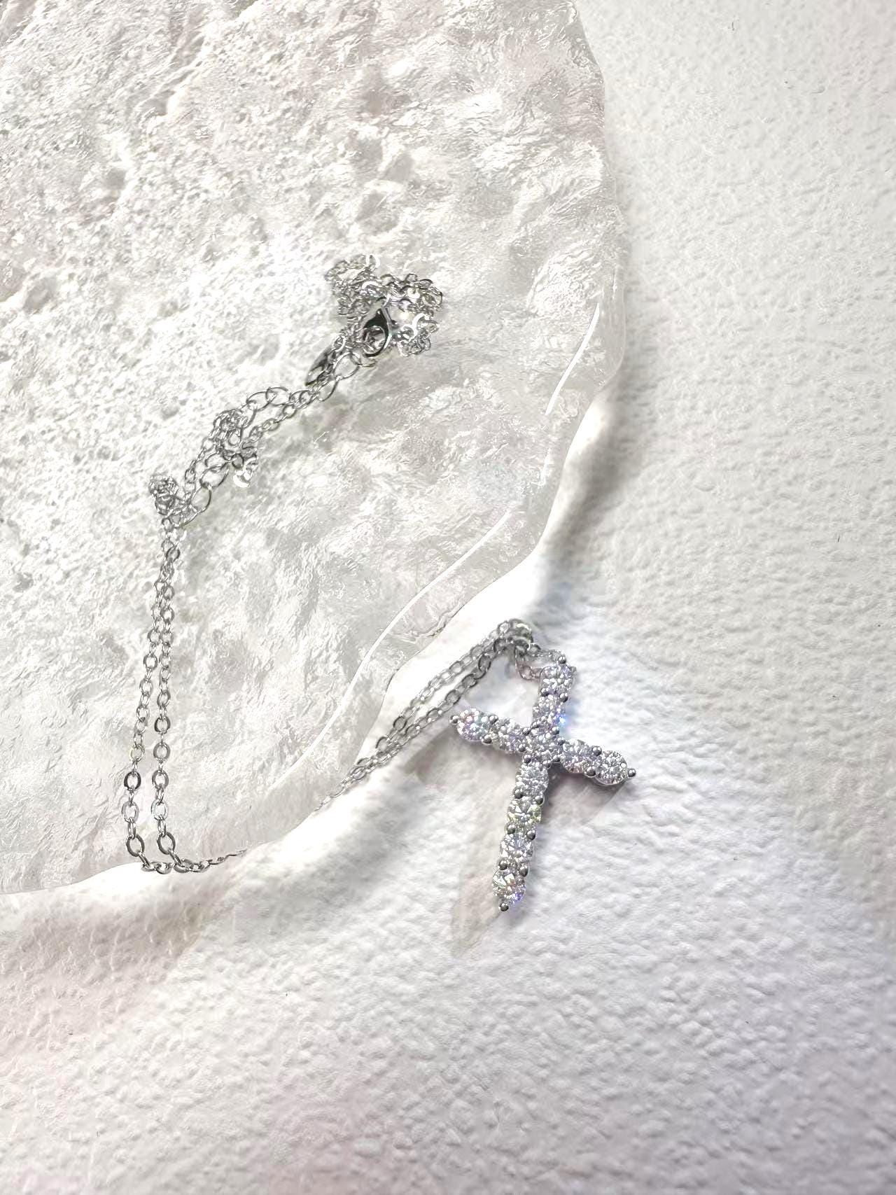 • GO with a free OT Cross Necklace for easy daily wear match----Titanium steel + cubic zirconia, 45 cm, cross 16×19 mm(10 g)